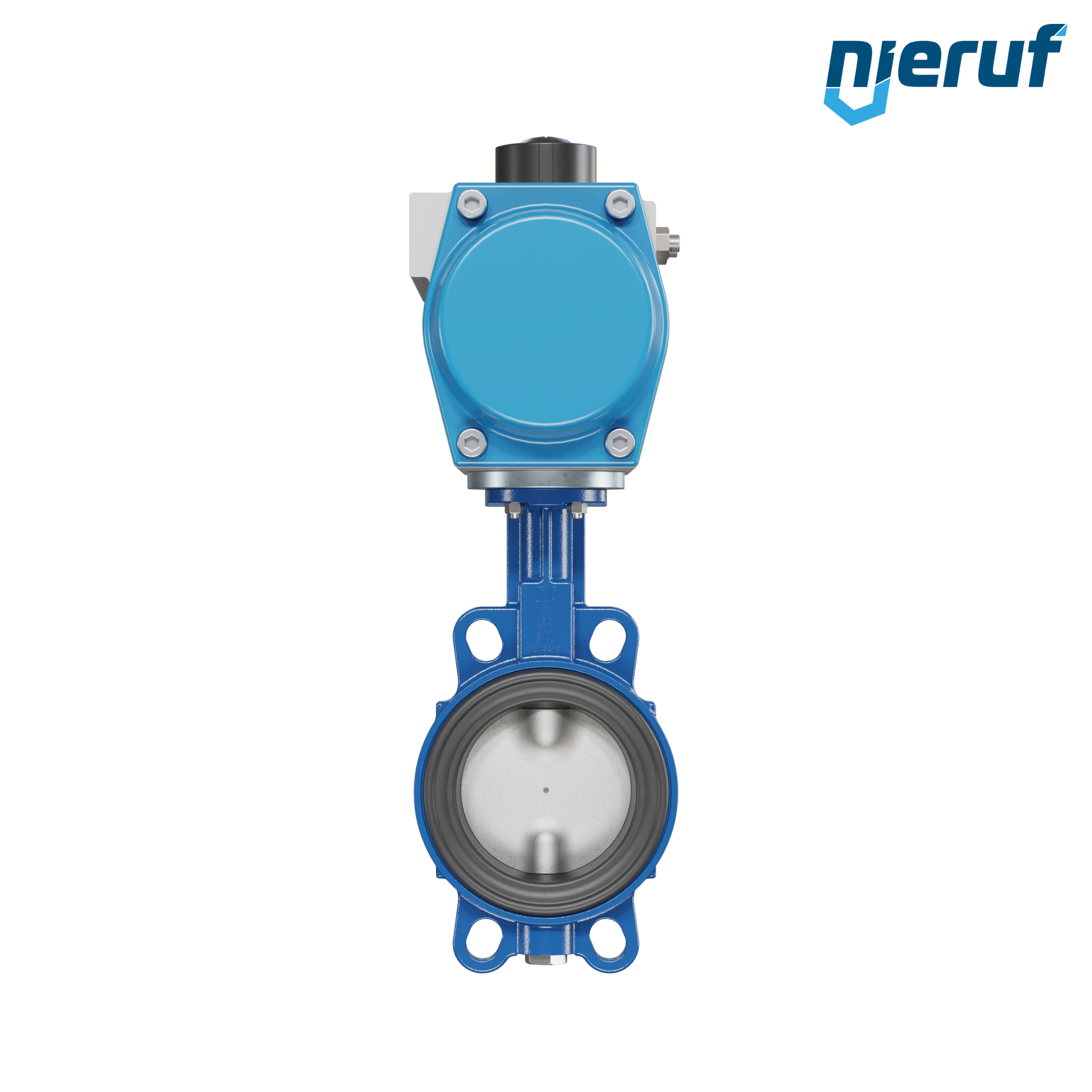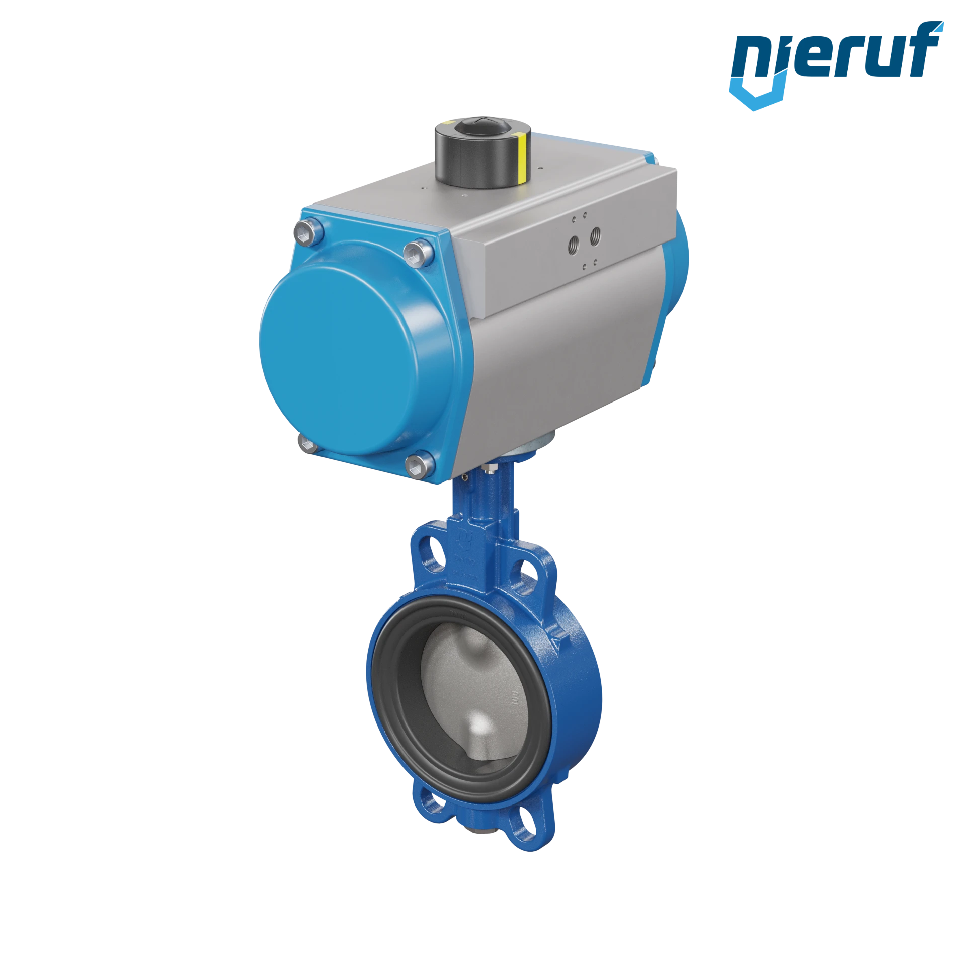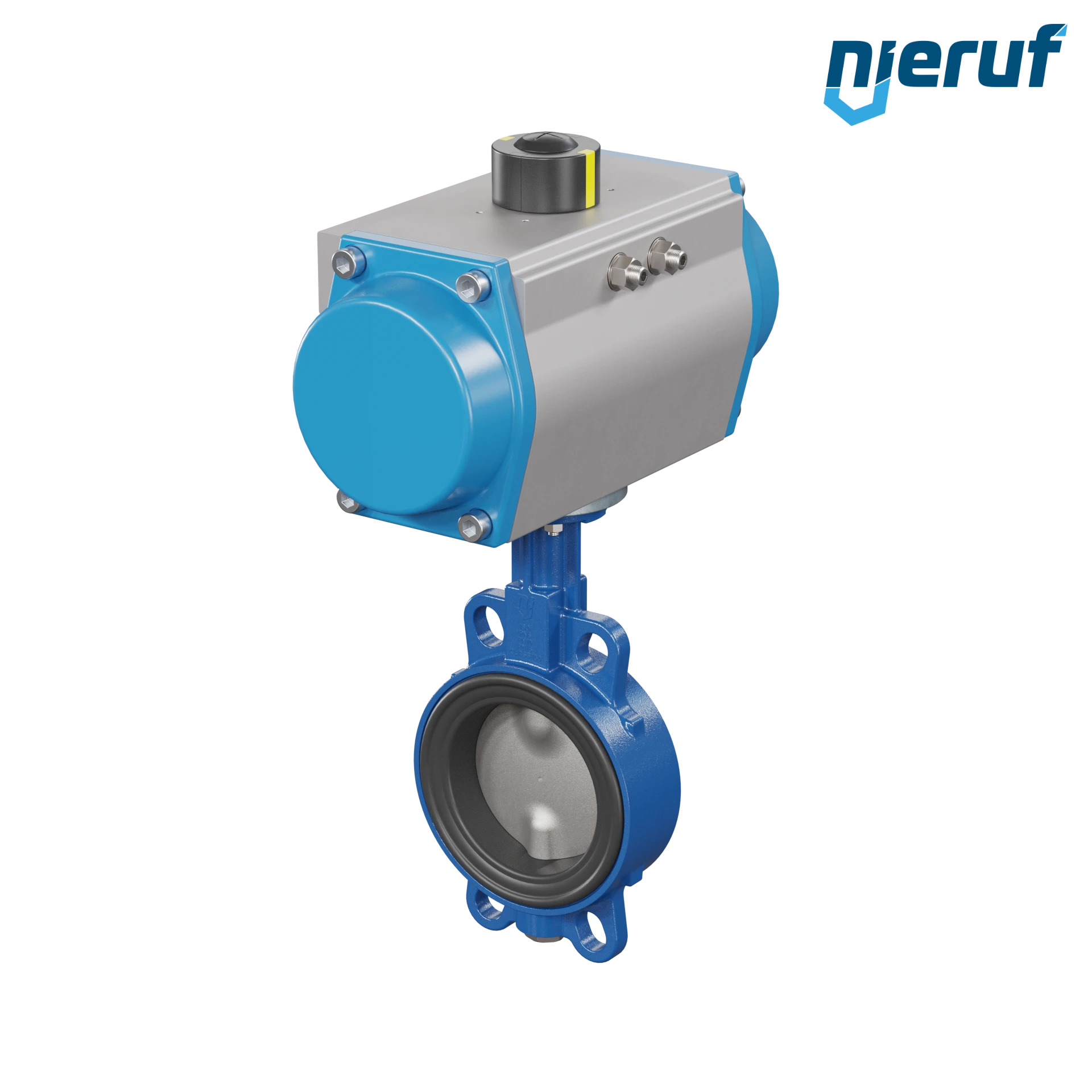 Absperrklappe DN 100 mit Zentrieraugen Gehäuse aus Sphäroguss mit pneumatischer Schwenkantrieb einfachwirkend federschließend Manschette aus EPDM DVGW Trinkwasser, WRAS, ACS, W270
