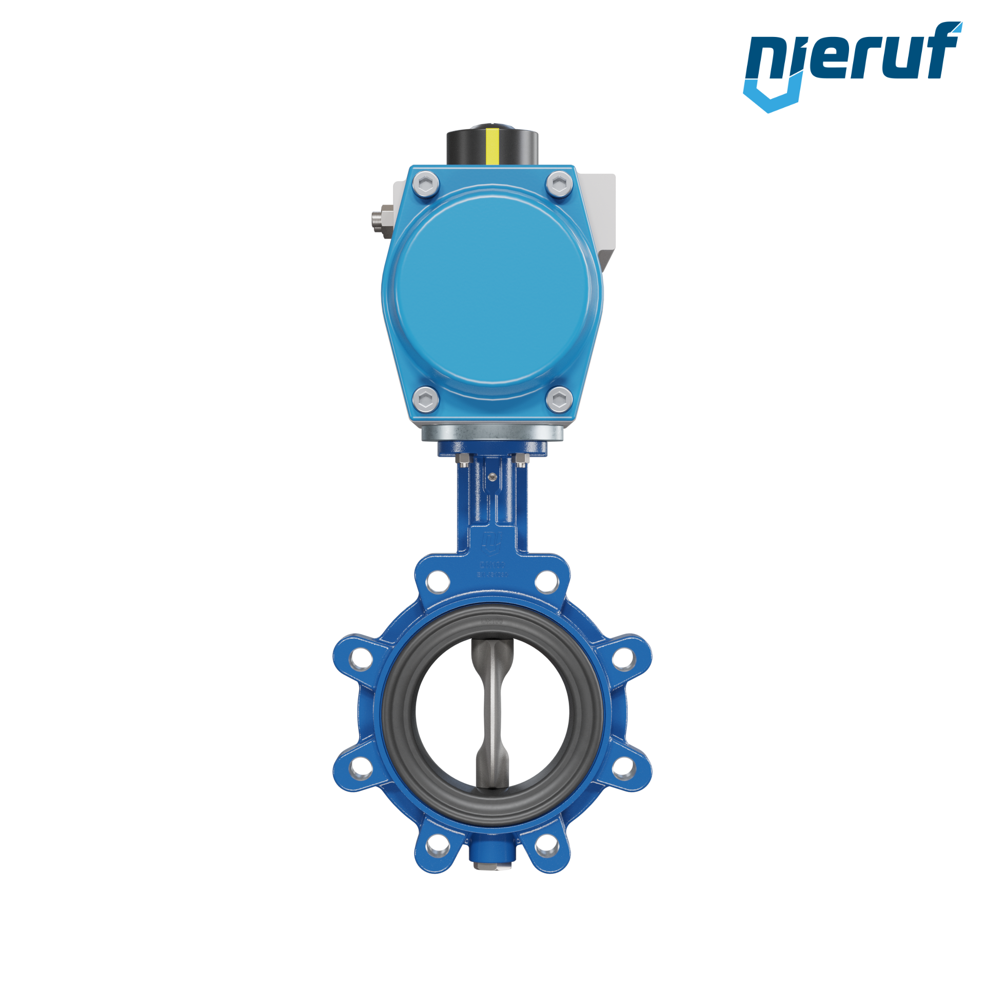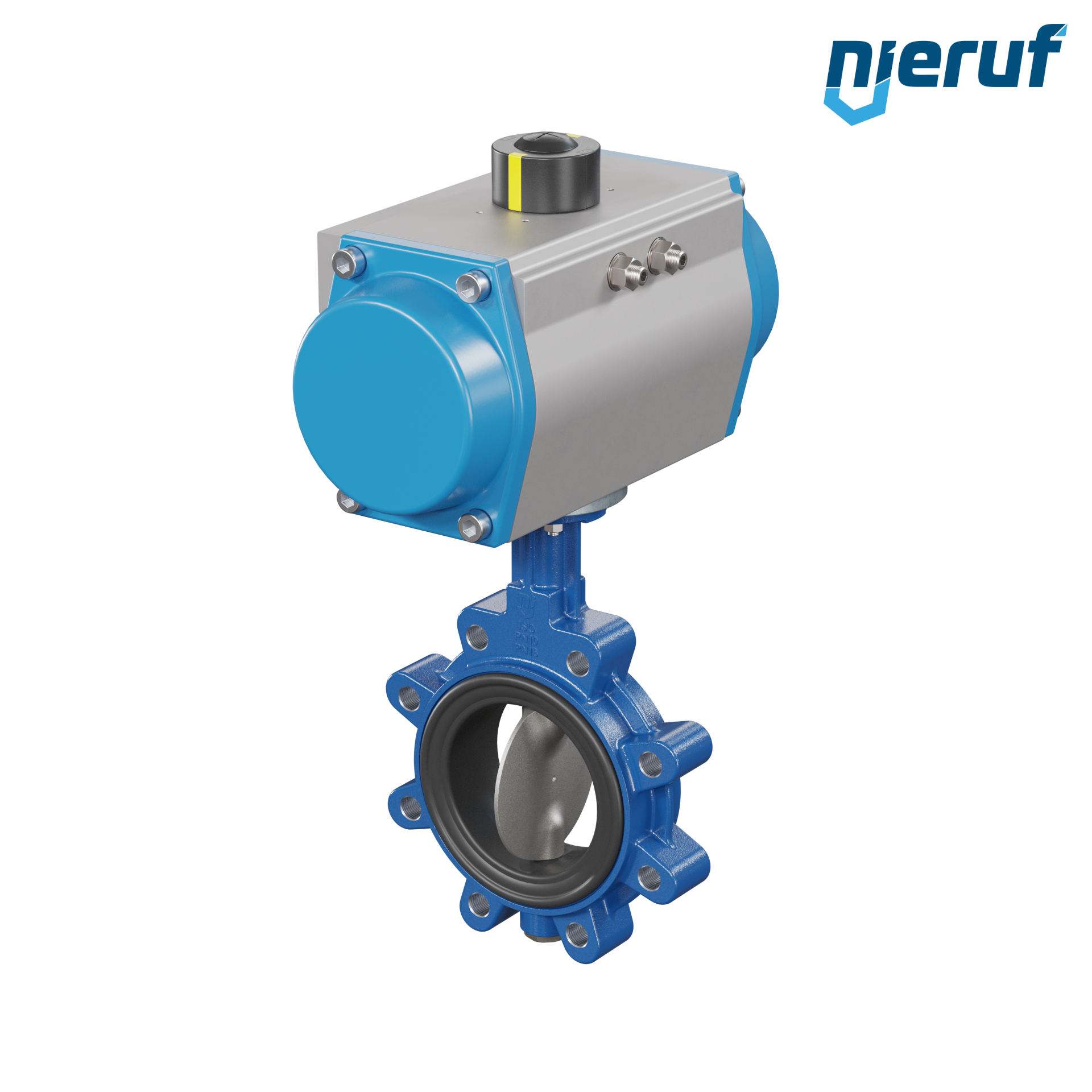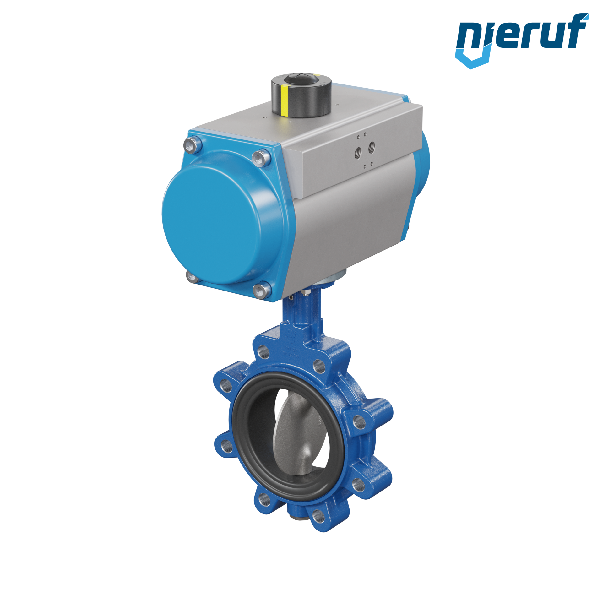 Absperrklappe DN 100 mit Gewindeaugen Gehäuse aus Sphäroguss mit pneumatischer Schwenkantrieb einfachwirkend federöffnend Manschette aus FPM