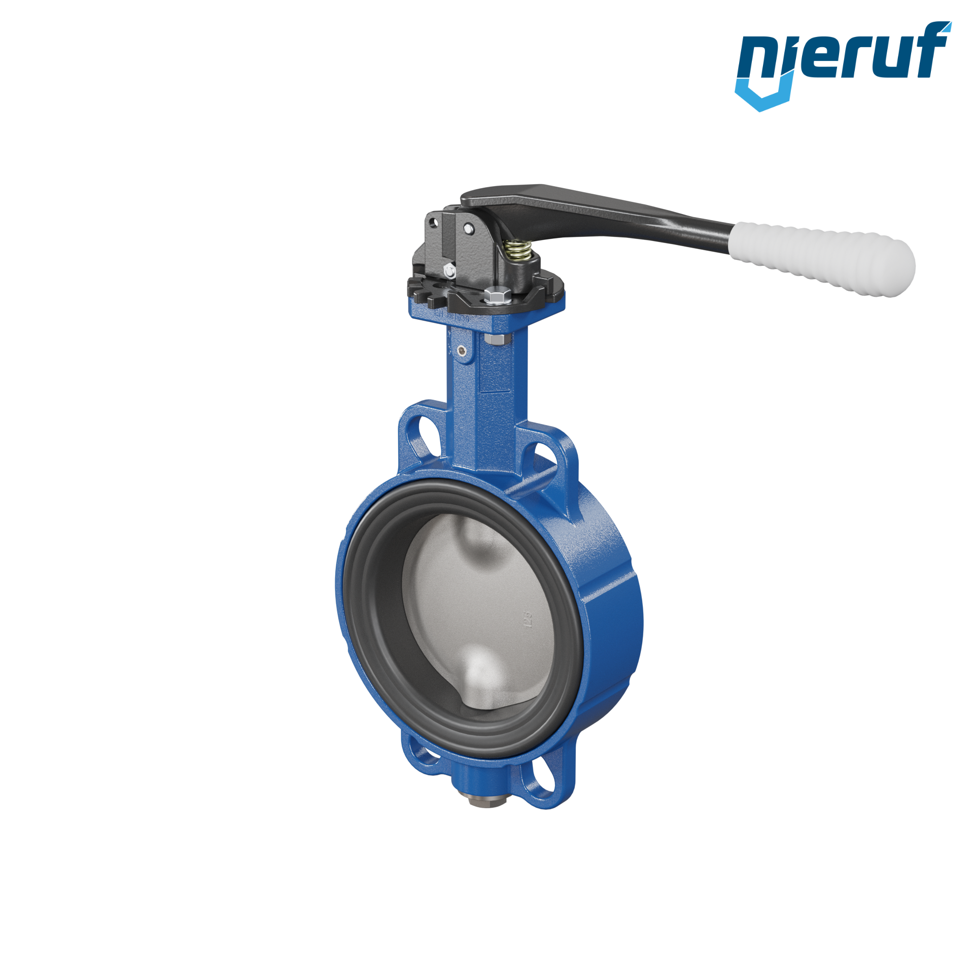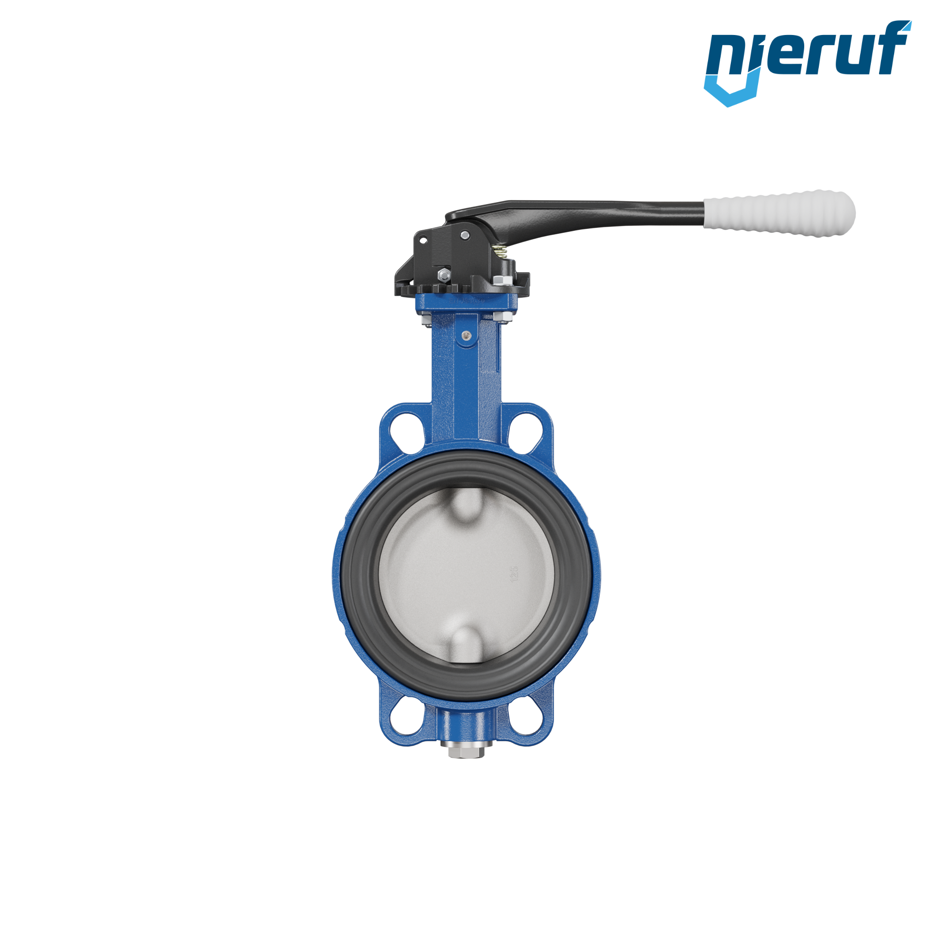 Absperrklappe DN 125 PN6-PN10-PN16 & ANSI150 mit Zentrieraugen aus Sphäroguss mit Handhebel mit grauer Hülse EPDM DVGW Trinkwasser, WRAS, ACS, W270