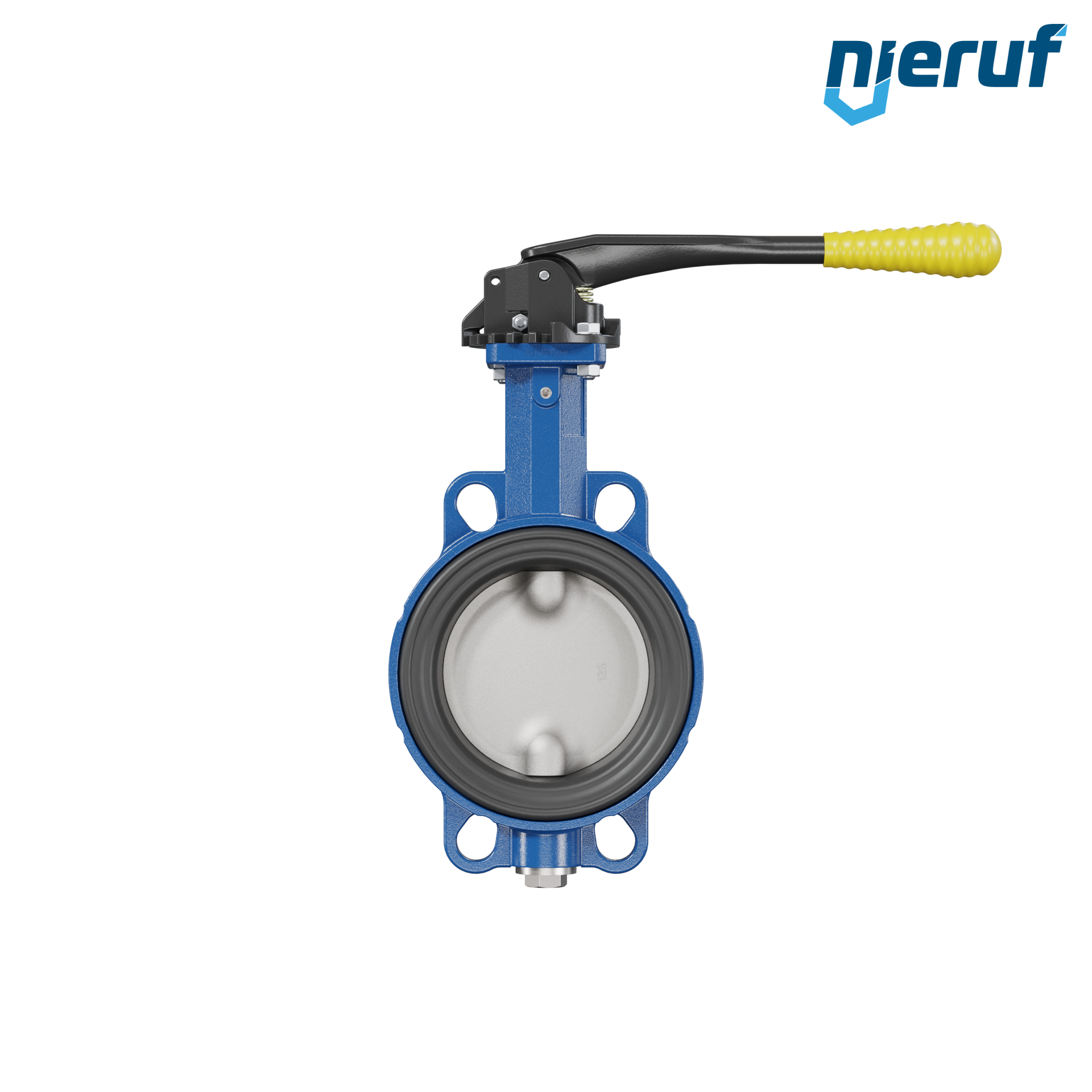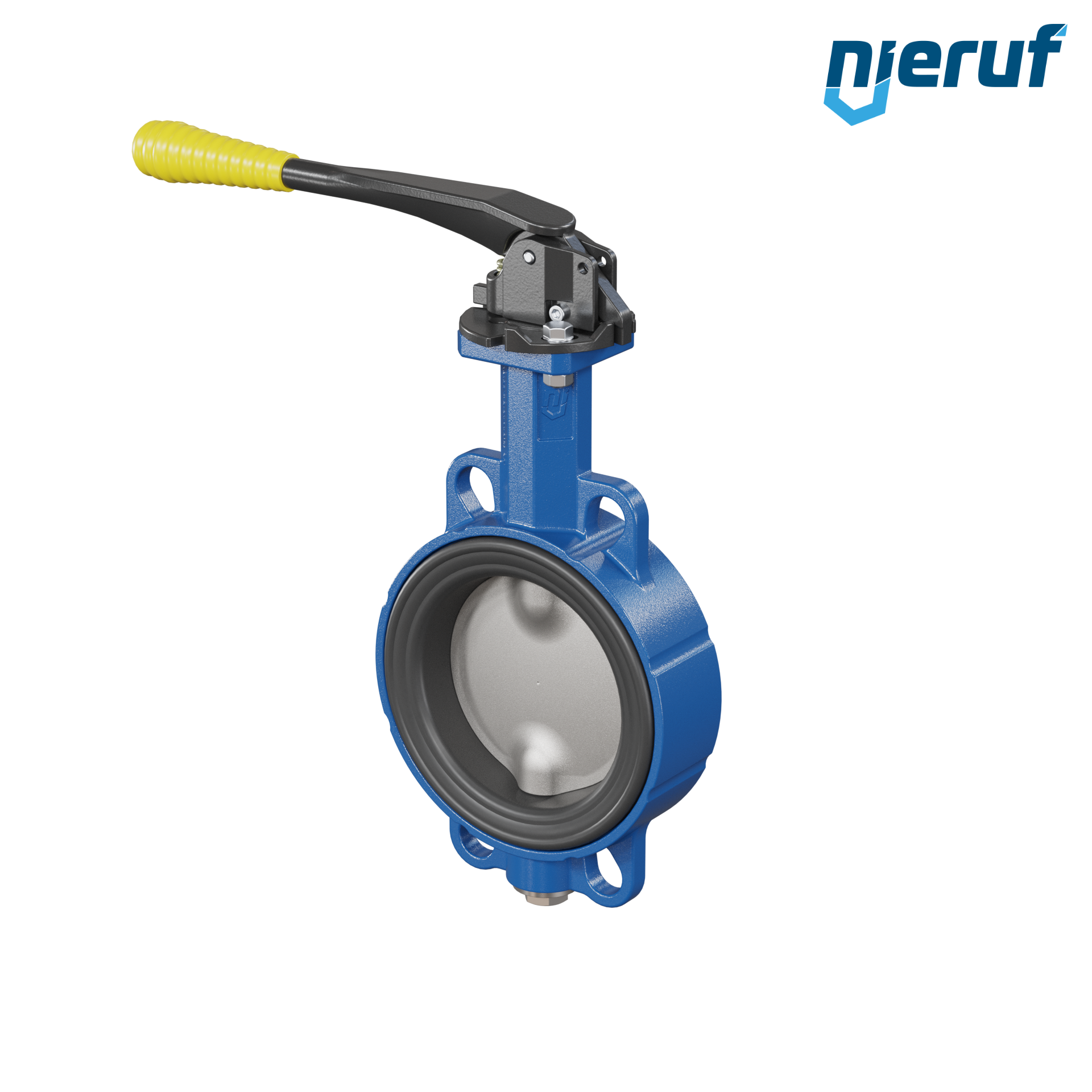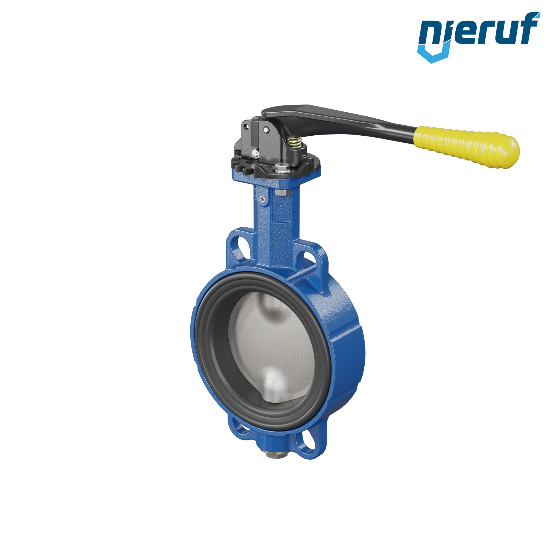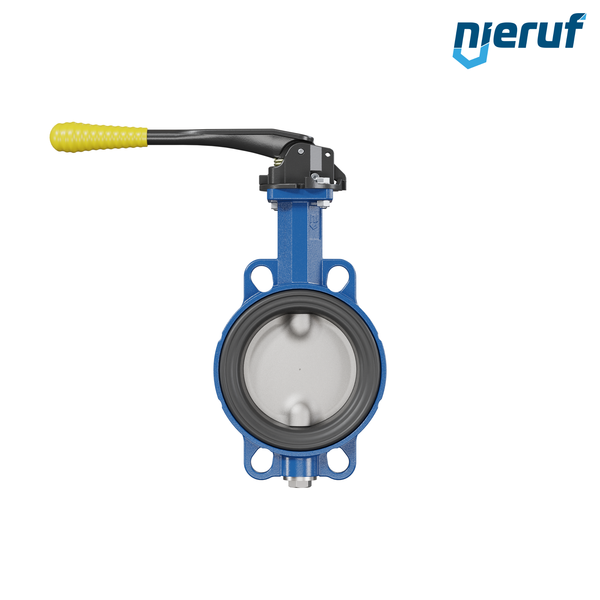 Absperrklappe DN 125 PN6-PN10-PN16 & ANSI150 mit Zentrieraugen aus Sphäroguss mit Handhebel mit gelber Hülse NBR-70-schwarz DVGW Gas