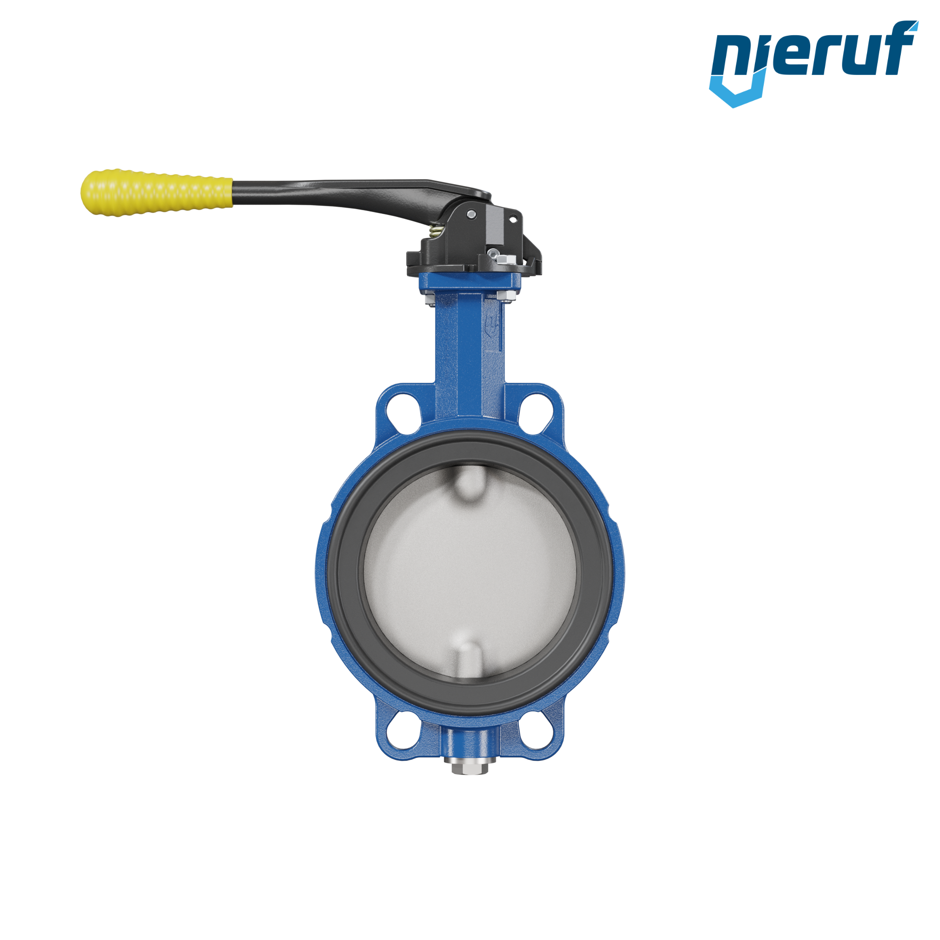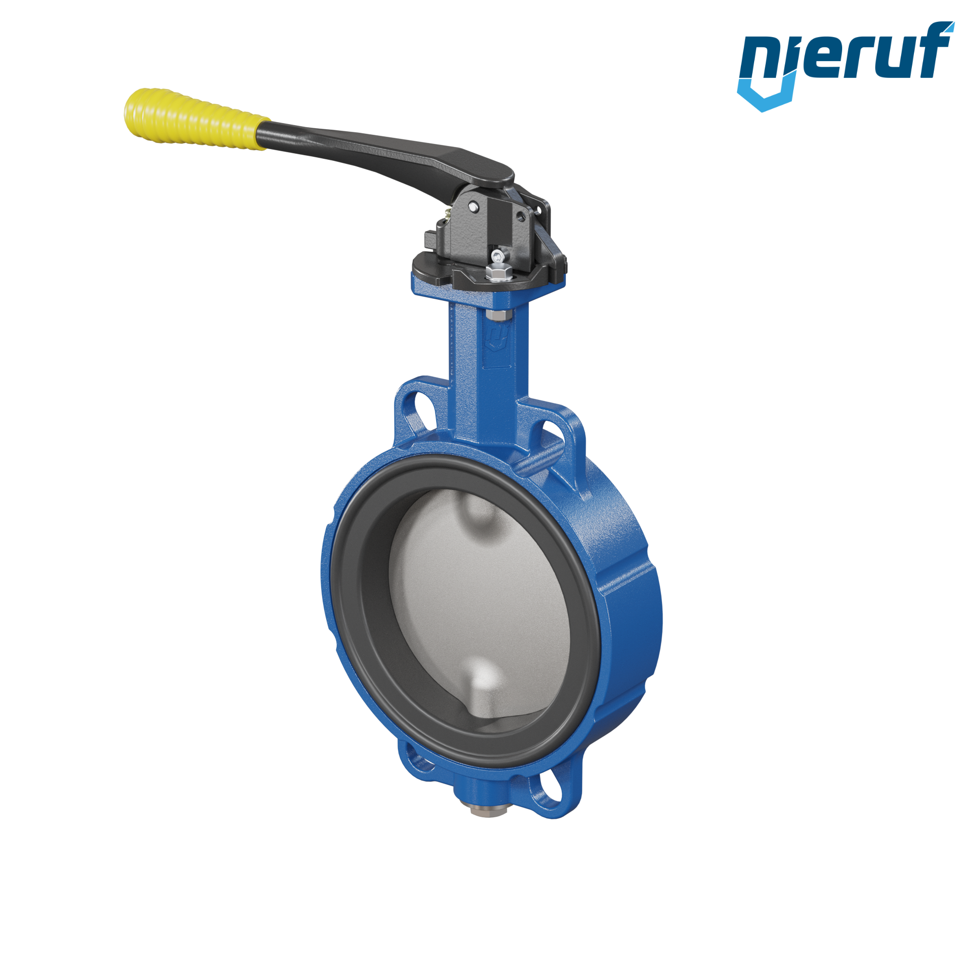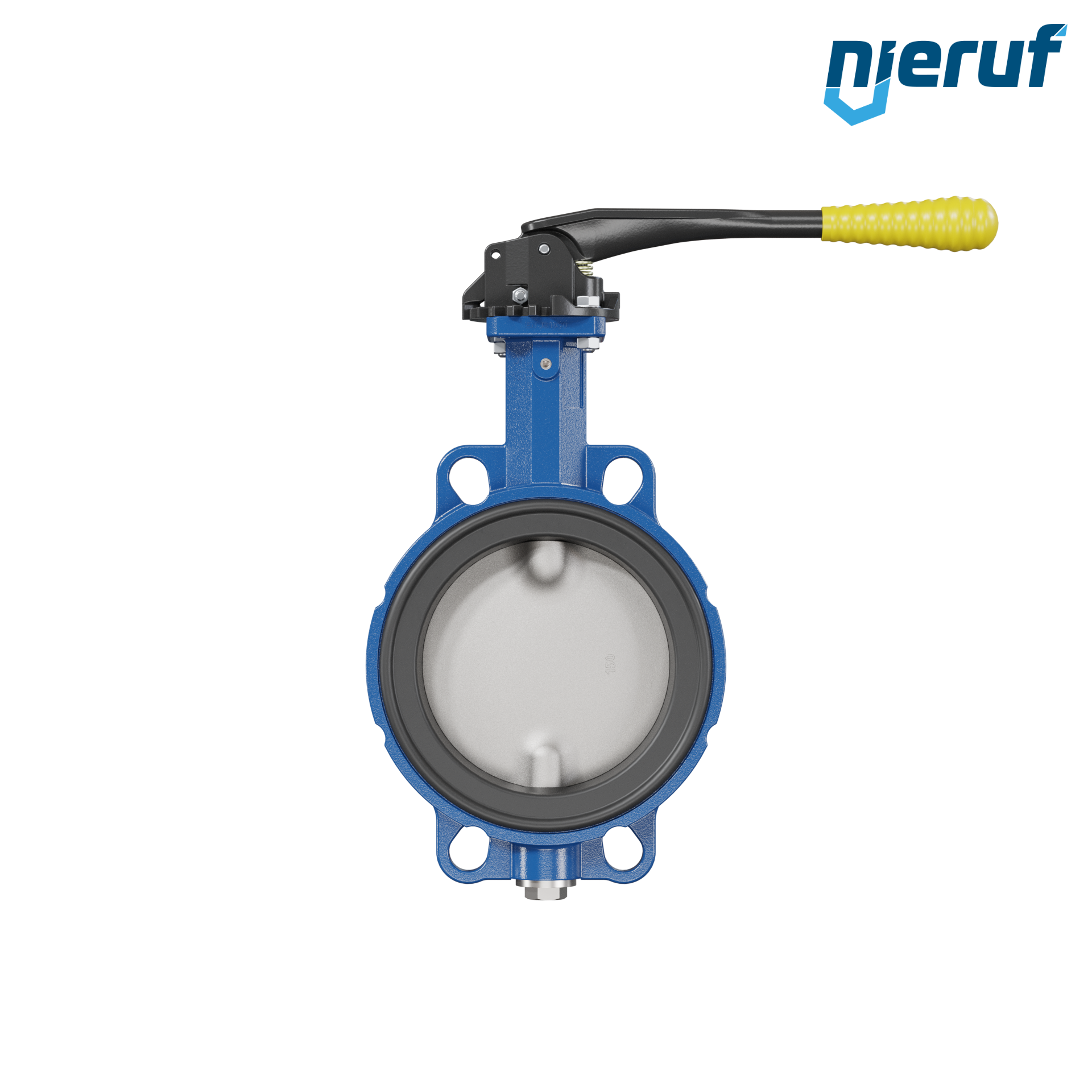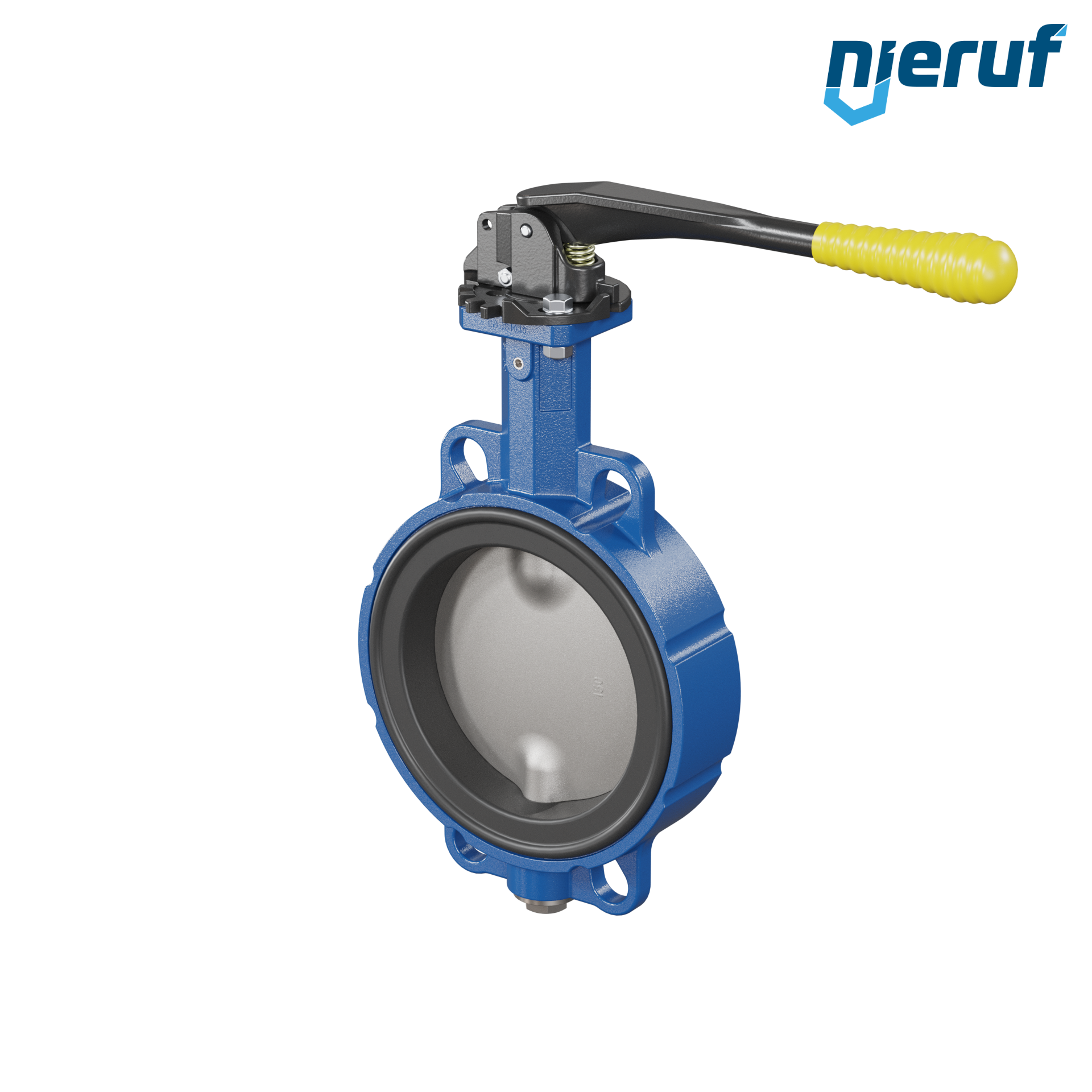 Absperrklappe DN 150 PN6-PN10-PN16 & ANSI150 mit Zentrieraugen aus Sphäroguss mit Handhebel mit gelber Hülse NBR-70-schwarz DVGW Gas