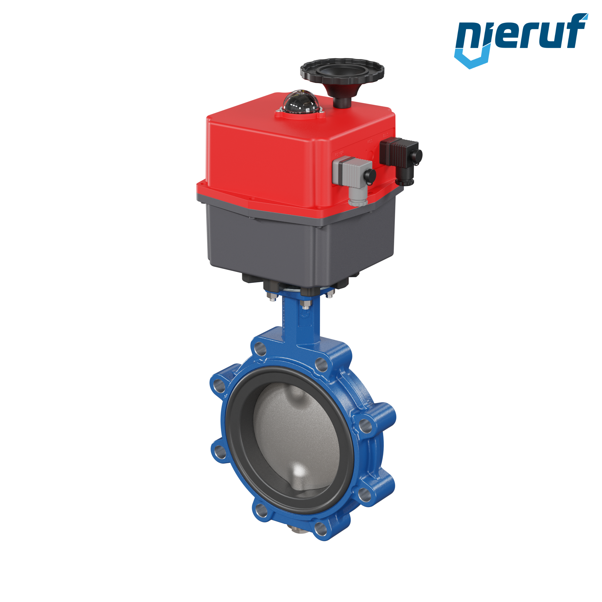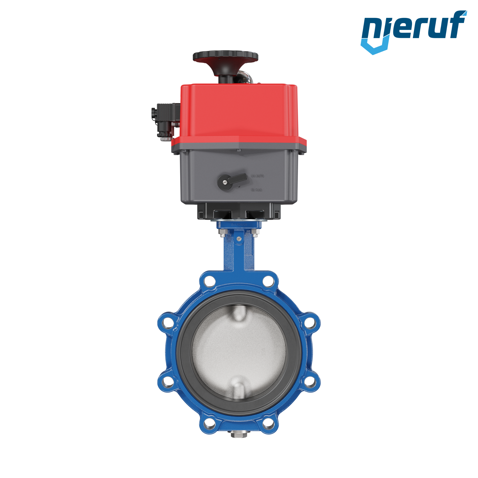Absperrklappe DN 150 PN10-PN16 mit Gewindeaugen Gehäuse aus Sphäroguss mit elektronischer Schwenkantrieb 24-240V AC/DC Manschette aus NBR-70-schwarz DVGW Gas