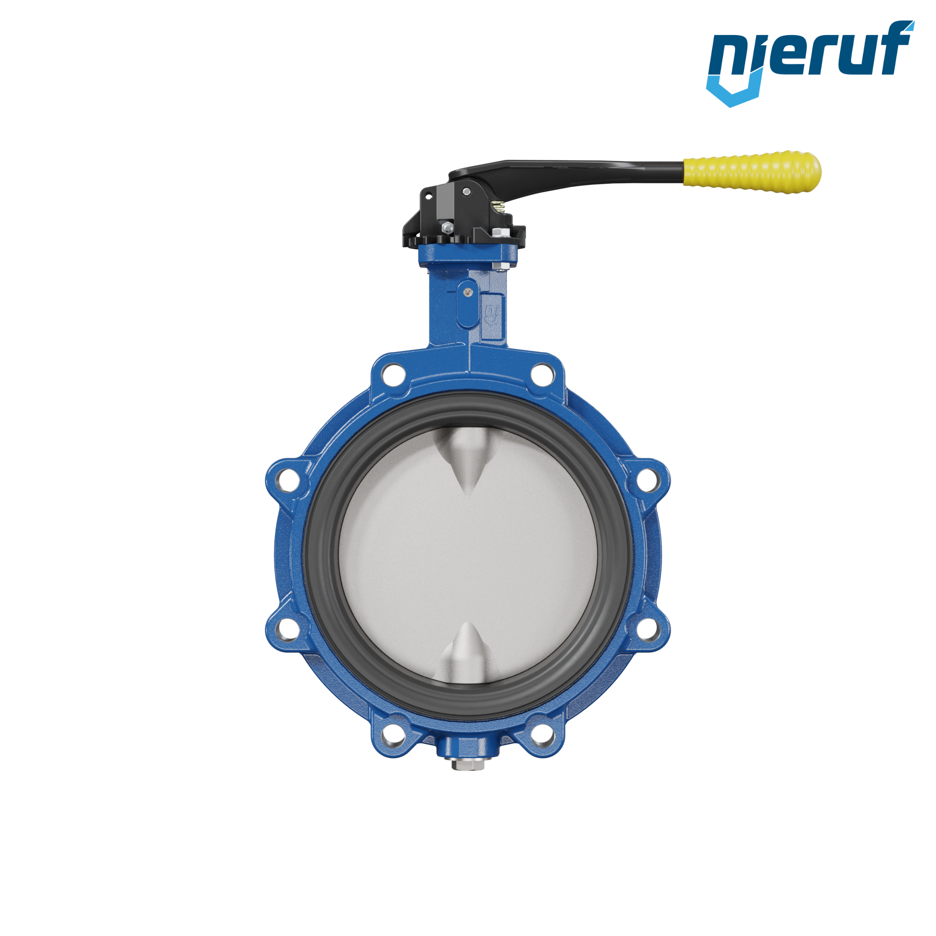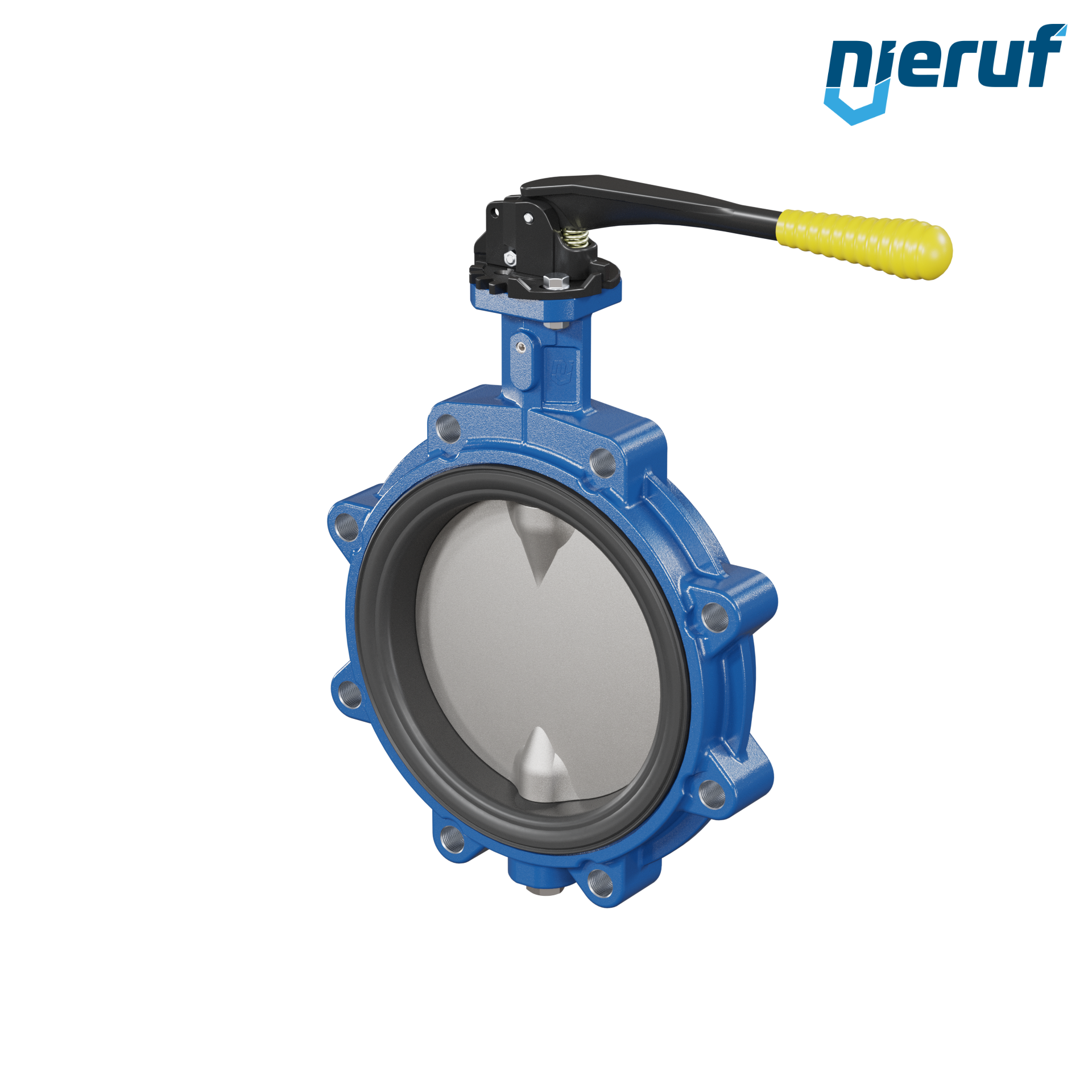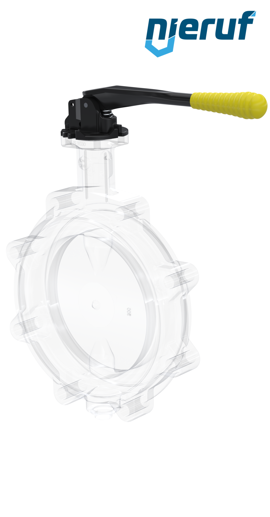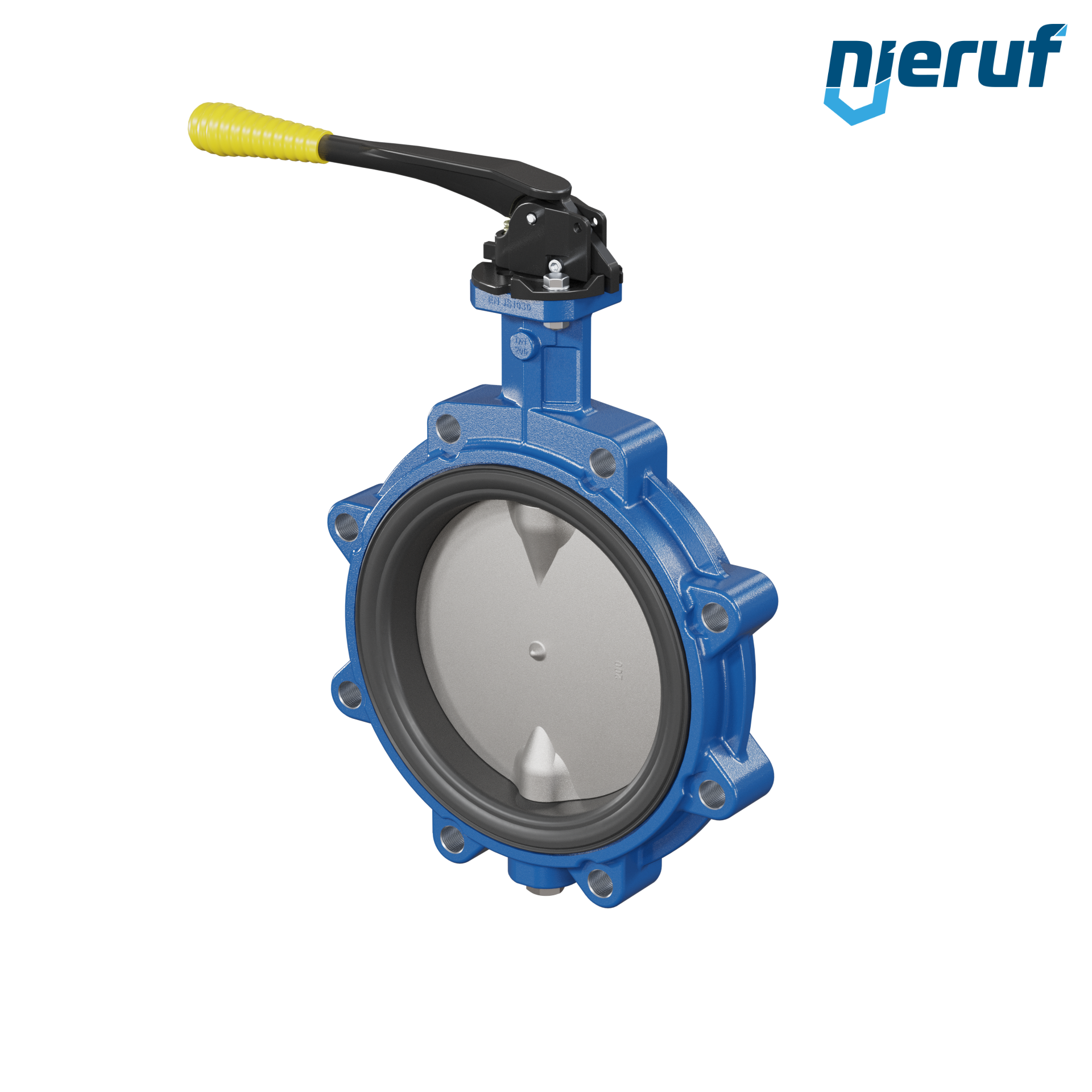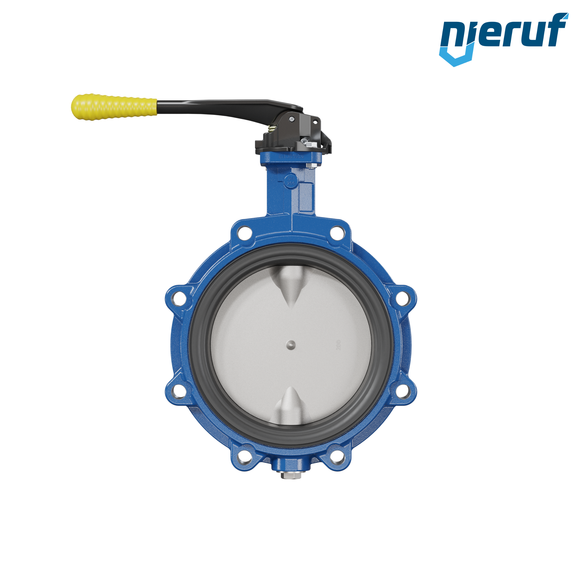 Absperrklappe DN 200 PN10 mit Gewindeaugen aus Sphäroguss mit Handhebel mit gelber Hülse NBR-70-schwarz DVGW Gas