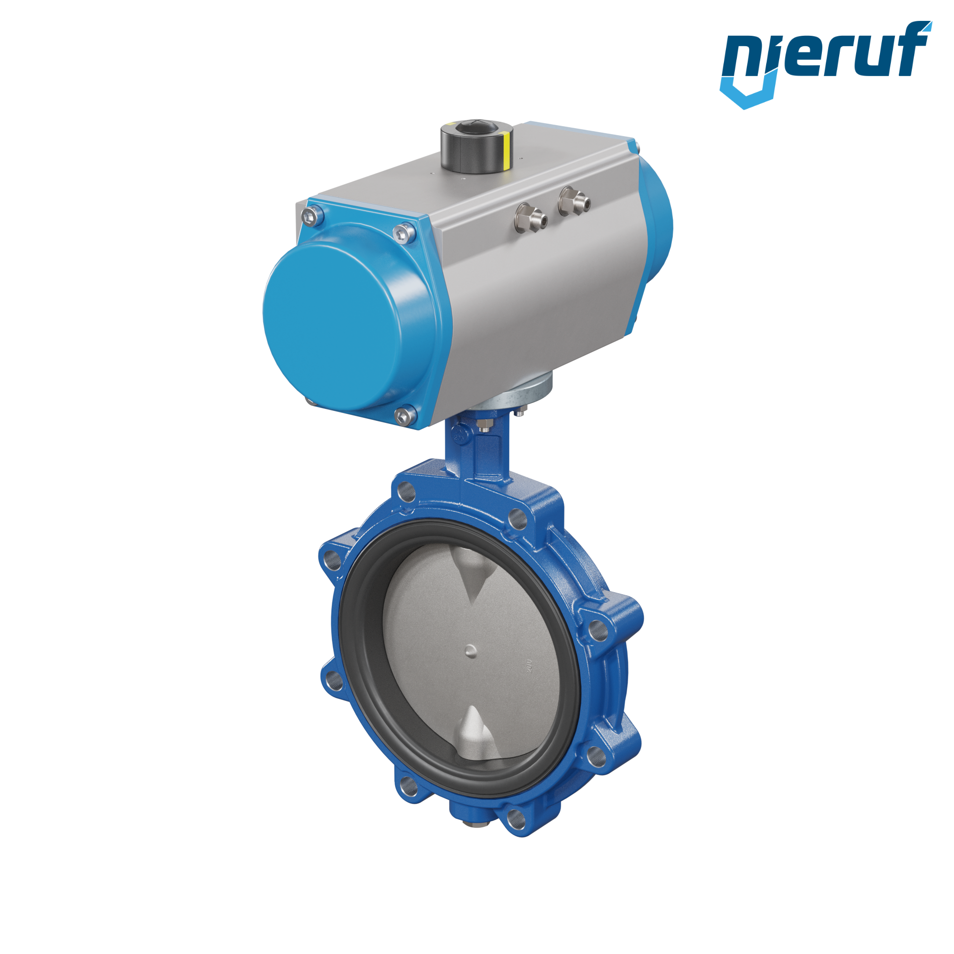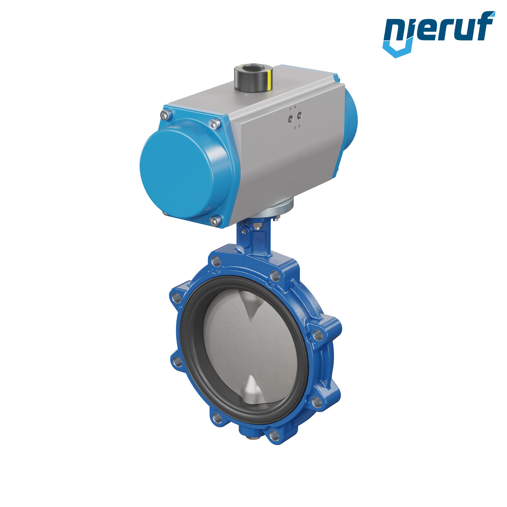 Absperrklappe DN 200 mit Gewindeaugen Gehäuse aus Sphäroguss mit pneumatischer Schwenkantrieb einfachwirkend federschließend Manschette aus FPM