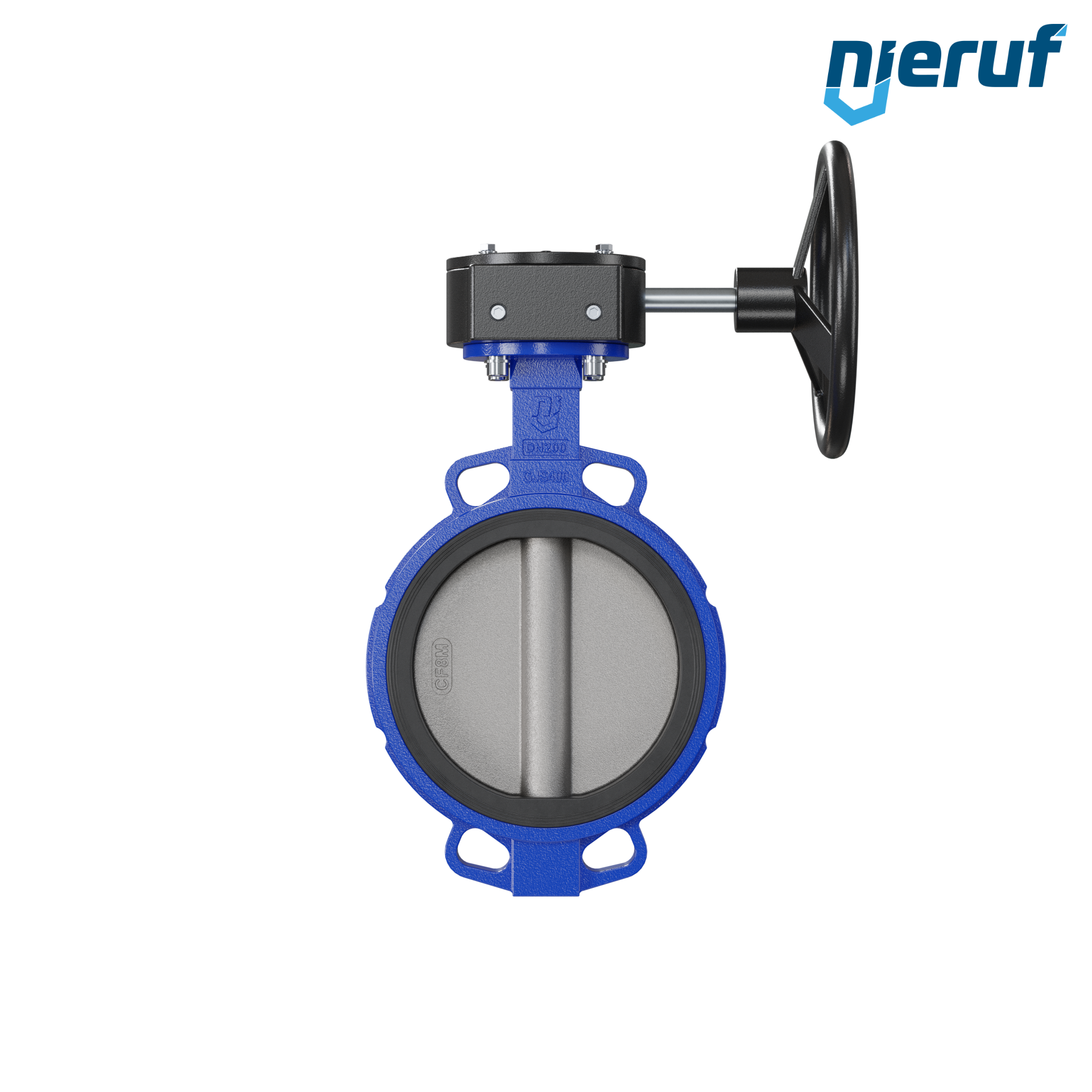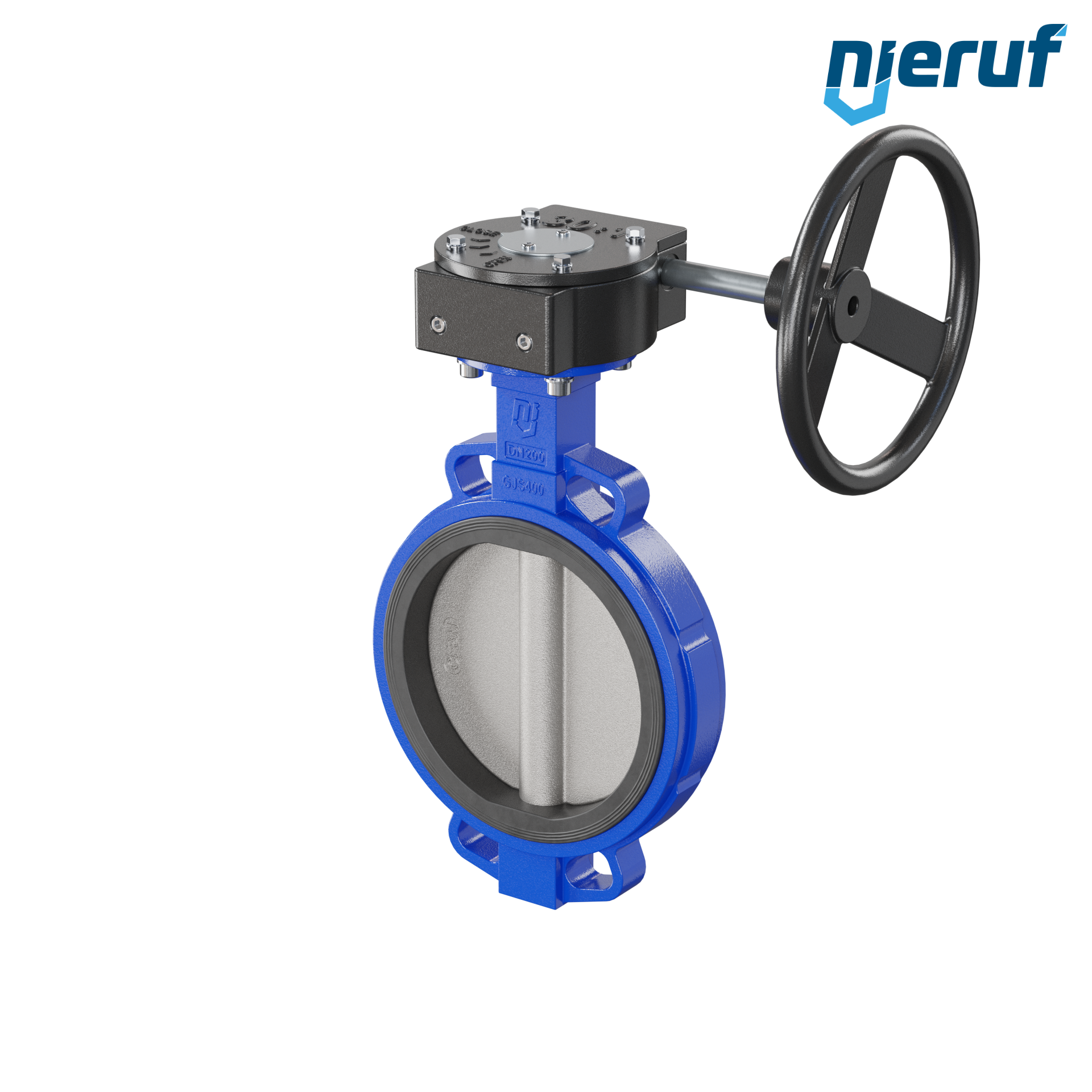 Absperrklappe DN 200 PN16 mit Zentrieraugen Gehäuse aus Gusseisen EN GJL-250 (GG25) Klappenscheibe Edelstahl 1.4408 mit Getriebe NBR