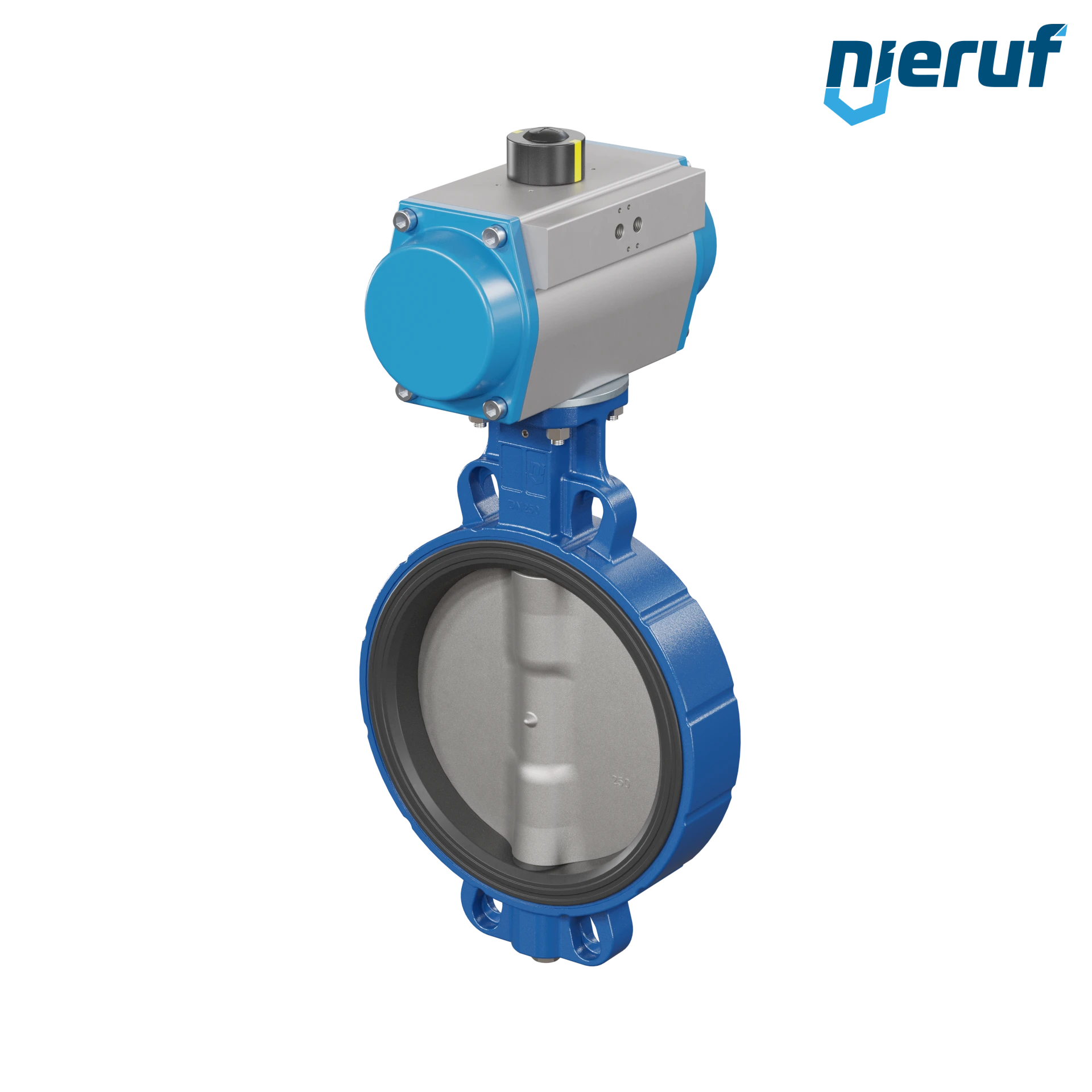 Absperrklappe DN 250 mit Zentrieraugen Gehäuse aus Sphäroguss mit pneumatischer Schwenkantrieb doppeltwirkend Manschette aus EPDM DVGW Trinkwasser, WRAS, ACS, W270