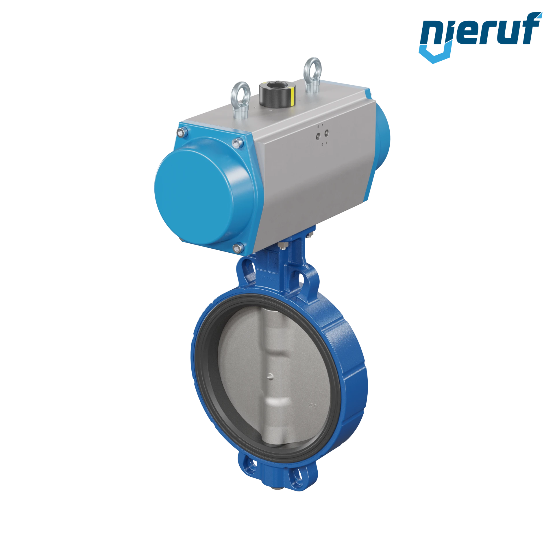 Absperrklappe DN 250 mit Zentrieraugen Gehäuse aus Sphäroguss mit pneumatischer Schwenkantrieb einfachwirkend federschließend Manschette aus EPDM Hochtemperatur & FDA