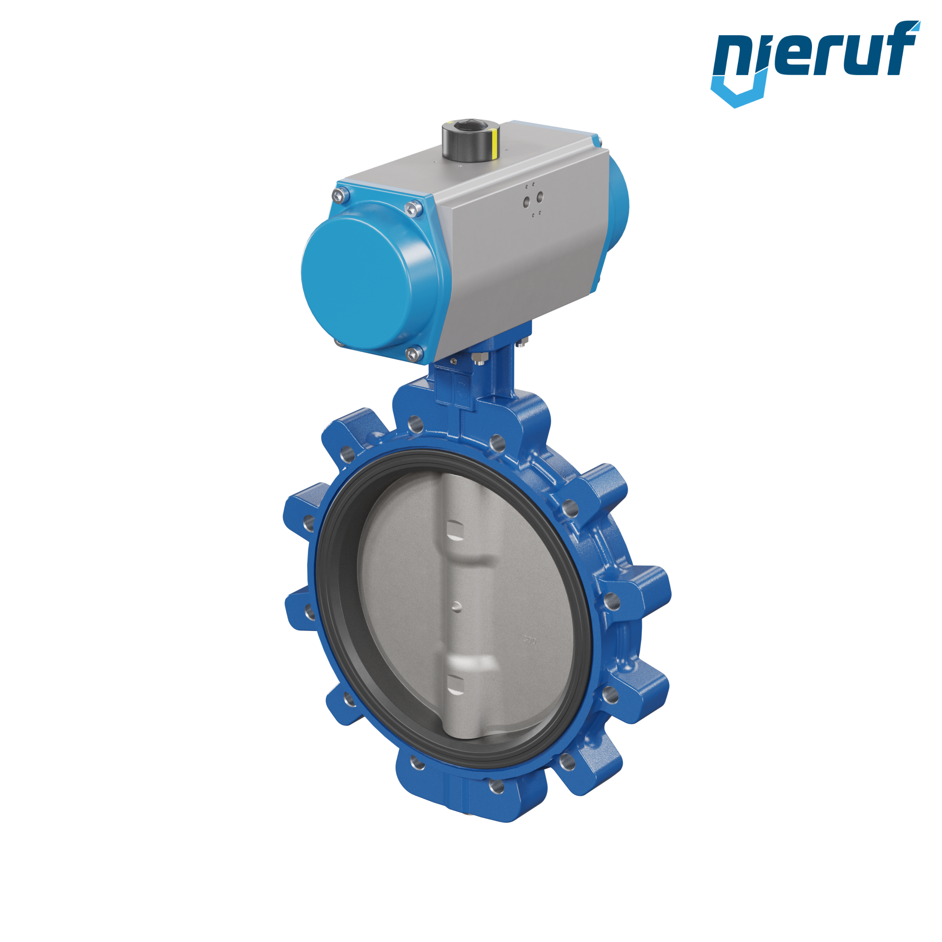 Absperrklappe DN 300 mit Gewindeaugen Gehäuse aus Sphäroguss mit pneumatischer Schwenkantrieb doppeltwirkend Manschette aus EPDM DVGW Trinkwasser, WRAS, ACS, W270