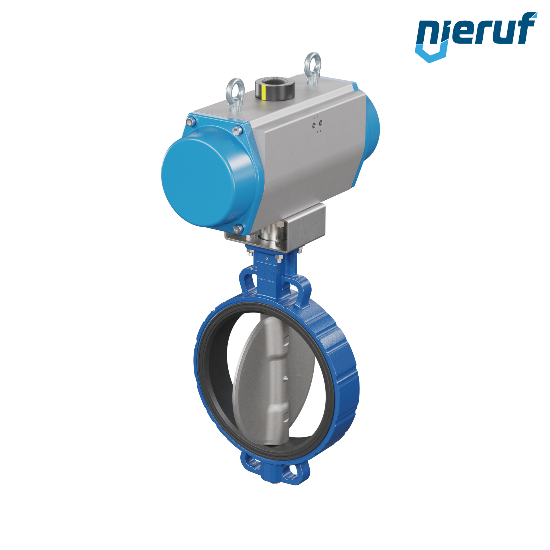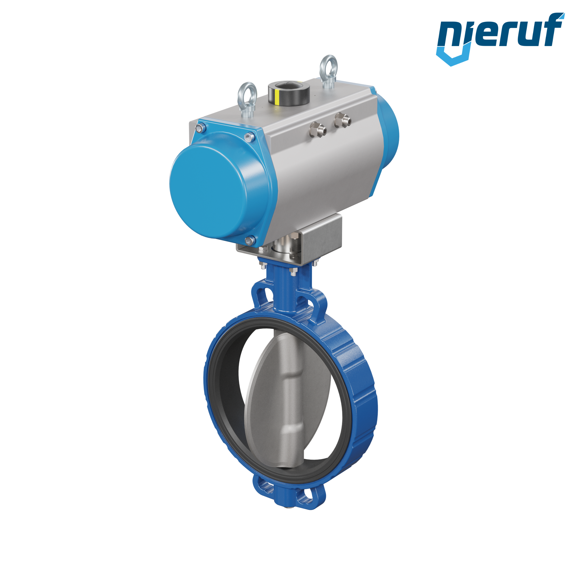 Absperrklappe DN 300 mit Zentrieraugen Gehäuse aus Sphäroguss mit pneumatischer Schwenkantrieb einfachwirkend federöffnend Manschette aus FPM