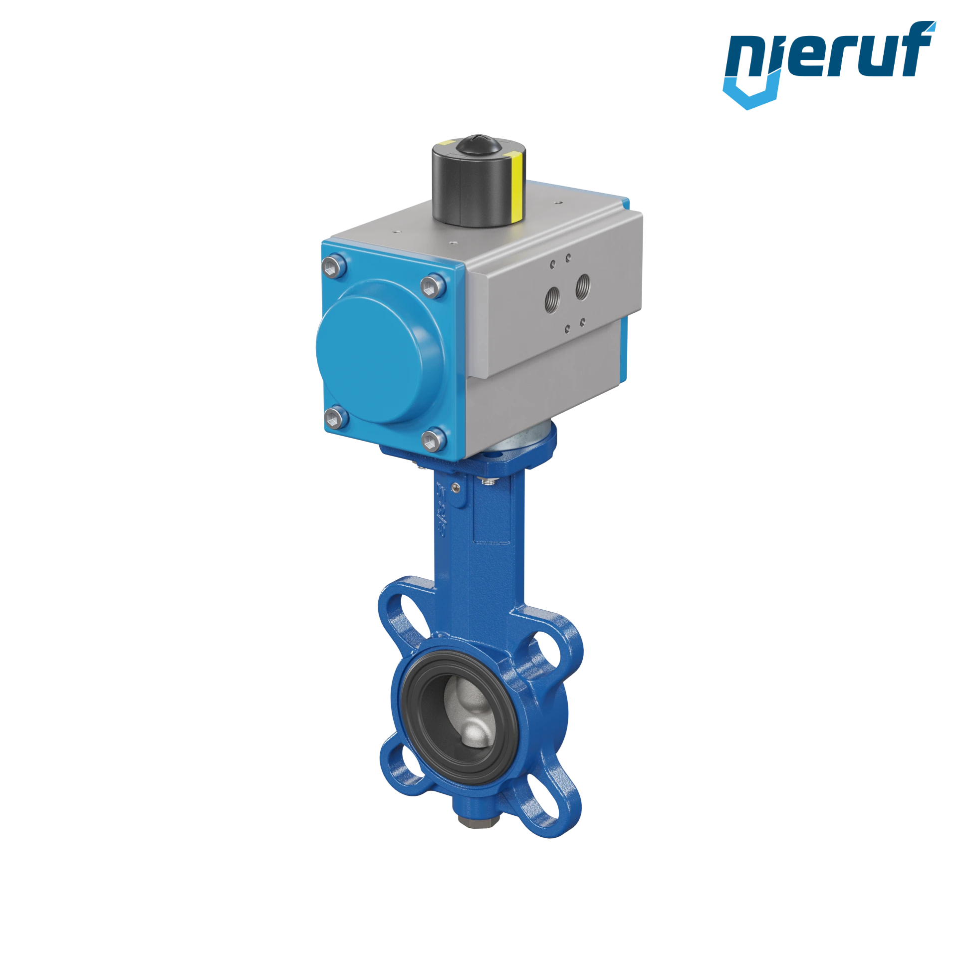 Absperrklappe DN 32 mit Zentrieraugen Gehäuse aus Sphäroguss mit pneumatischer Schwenkantrieb doppeltwirkend Manschette aus FPM