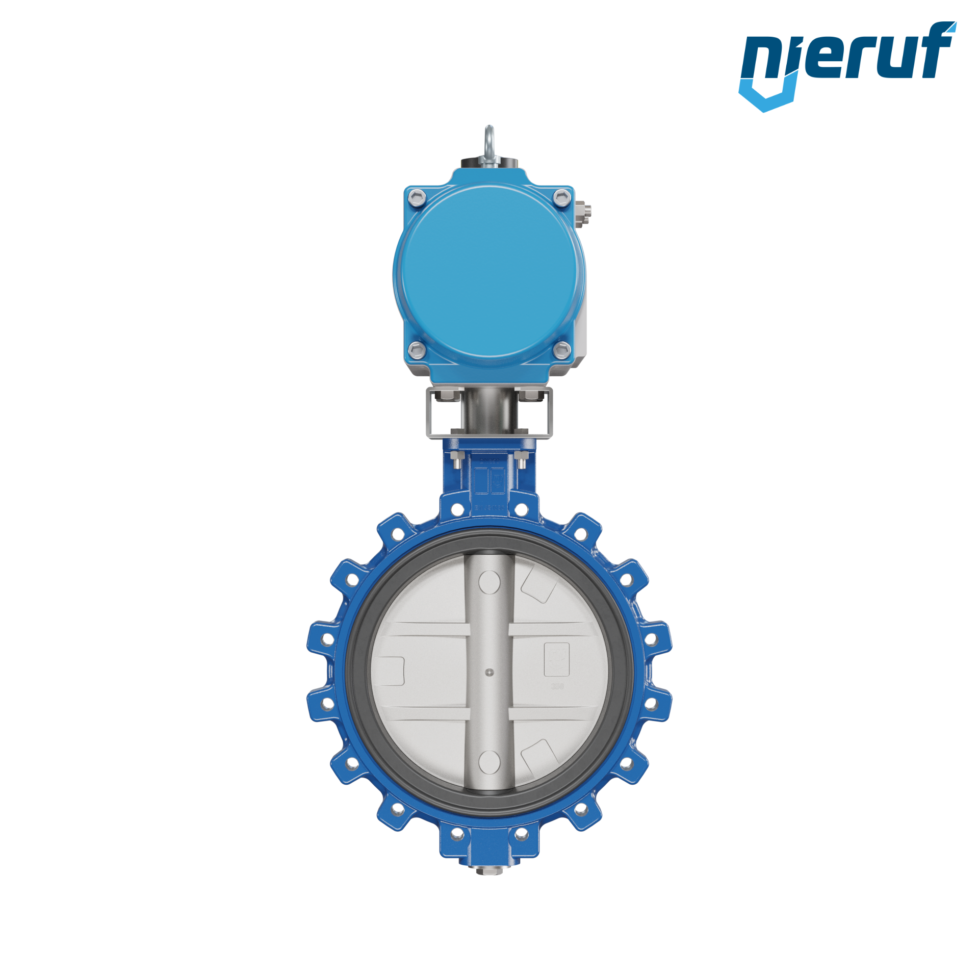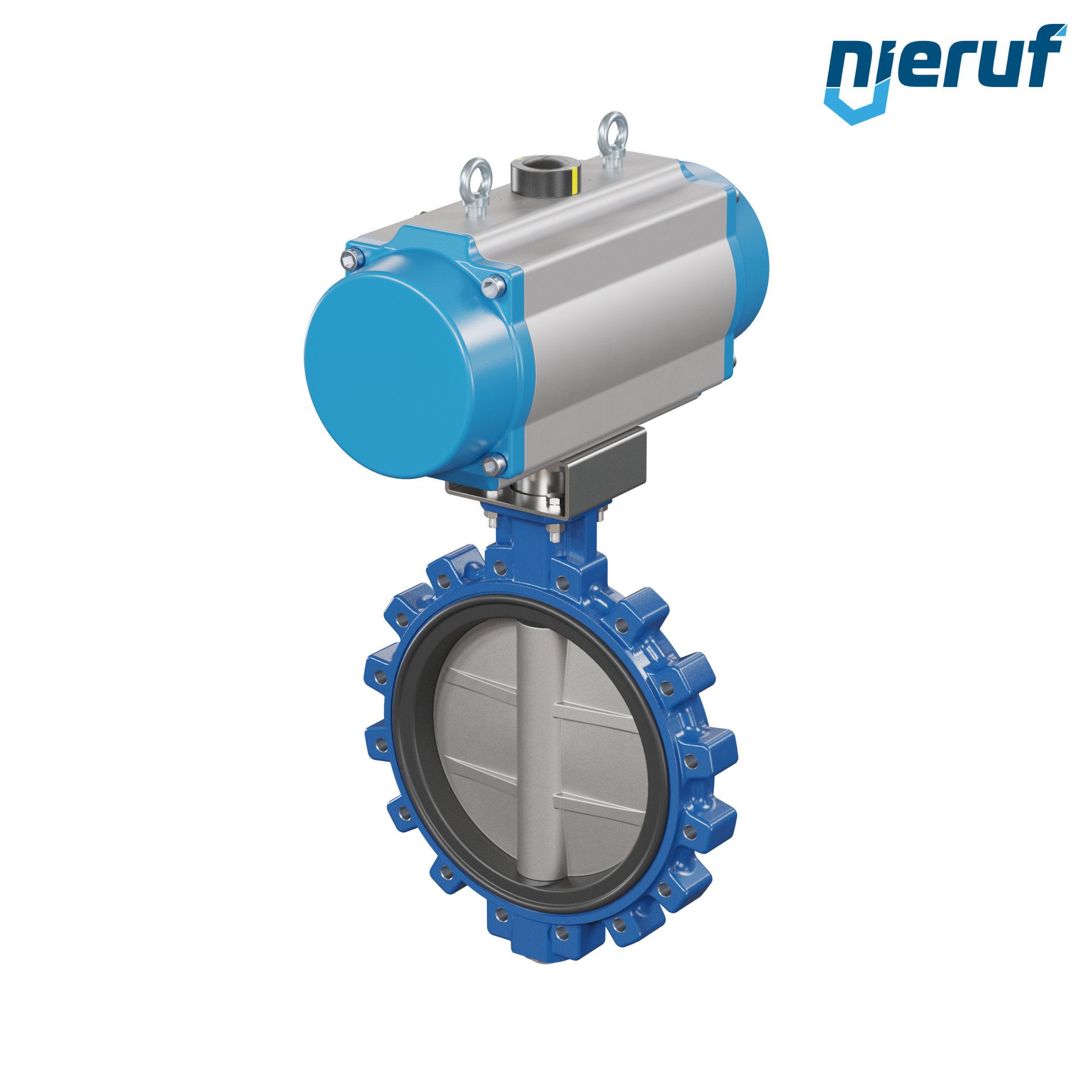 Absperrklappe DN 350 mit Gewindeaugen Gehäuse aus Sphäroguss mit pneumatischer Schwenkantrieb einfachwirkend federschließend Manschette aus FPM