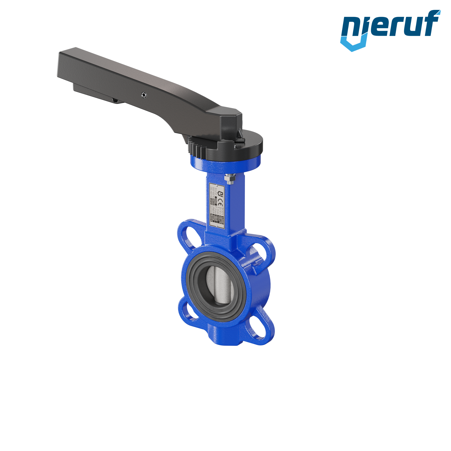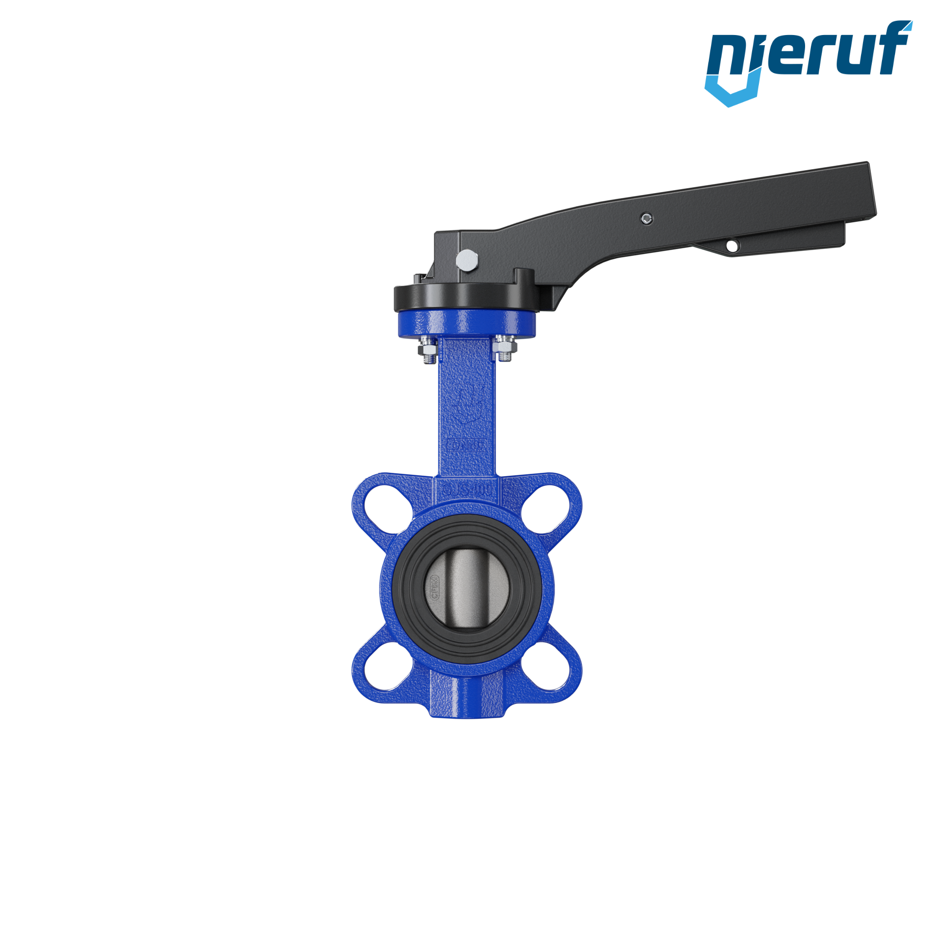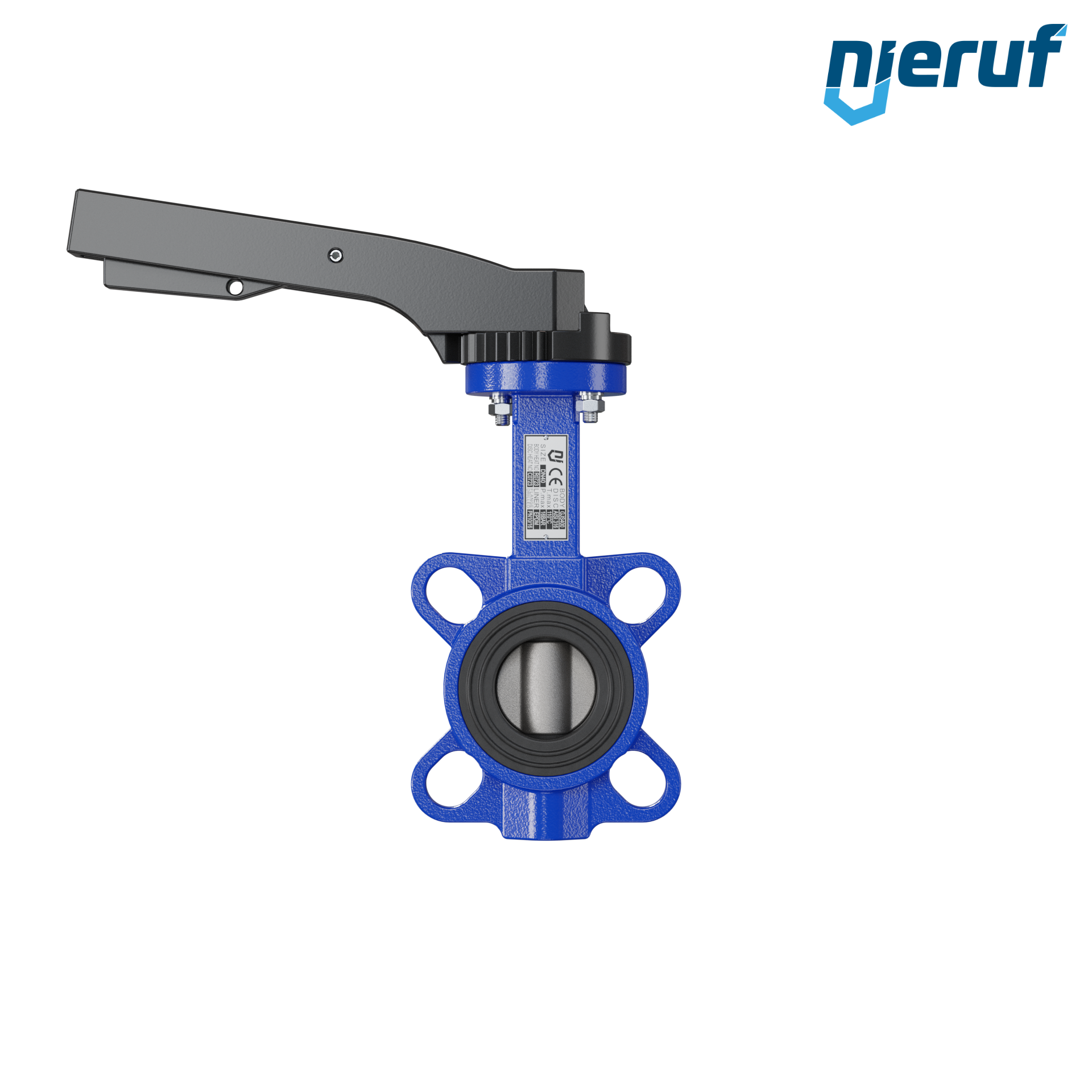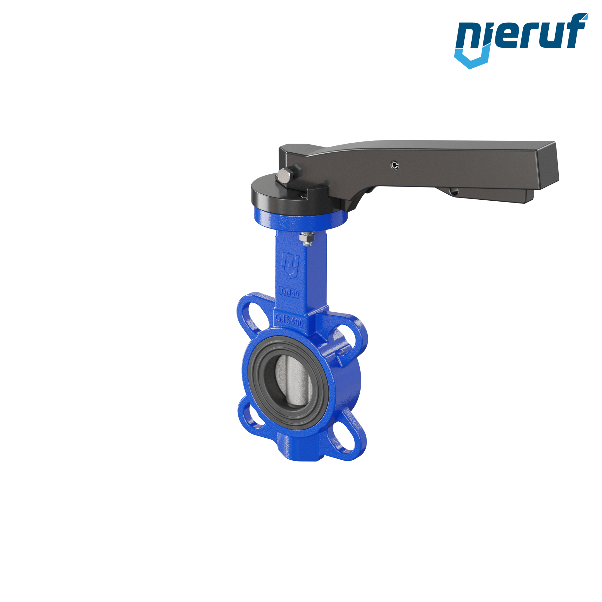 Absperrklappe DN 40 PN16 mit Zentrieraugen Gehäuse aus Gusseisen EN GJL-250 (GG25) Klappenscheibe Edelstahl 1.4408 mit Rasthebel NBR
