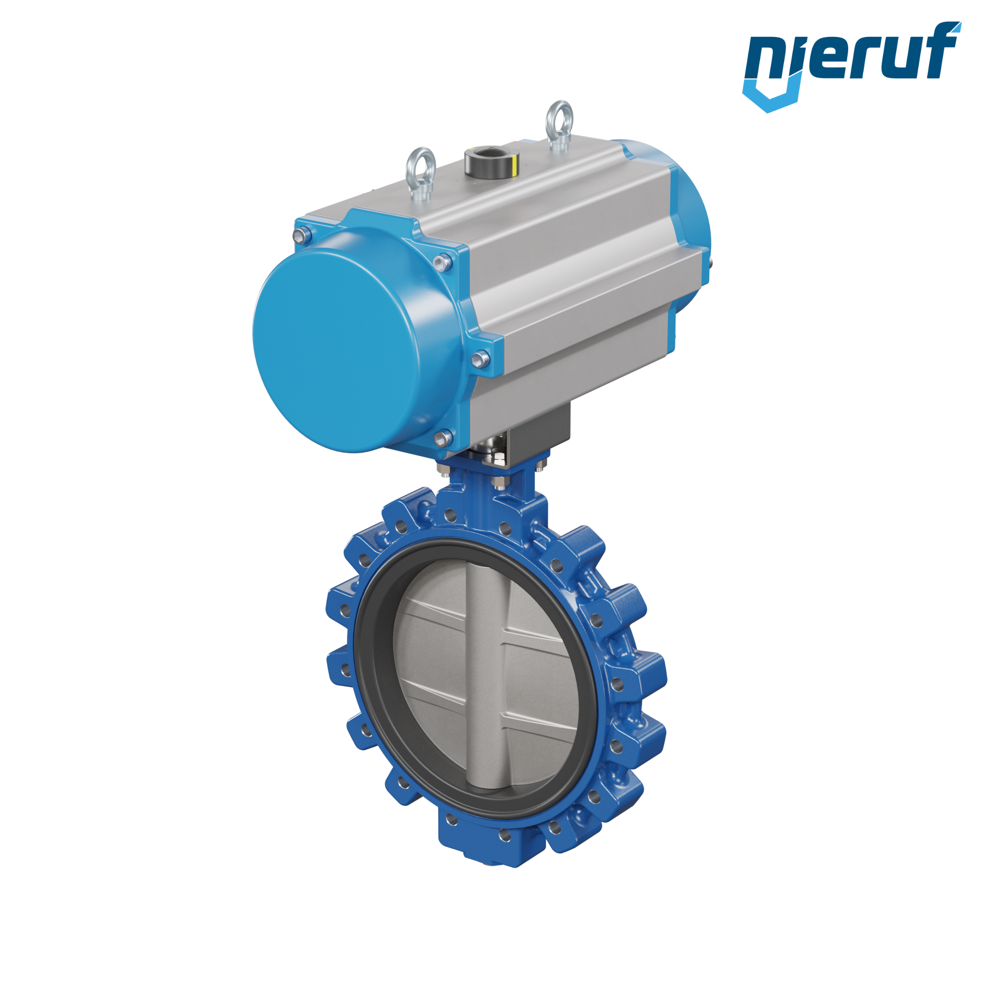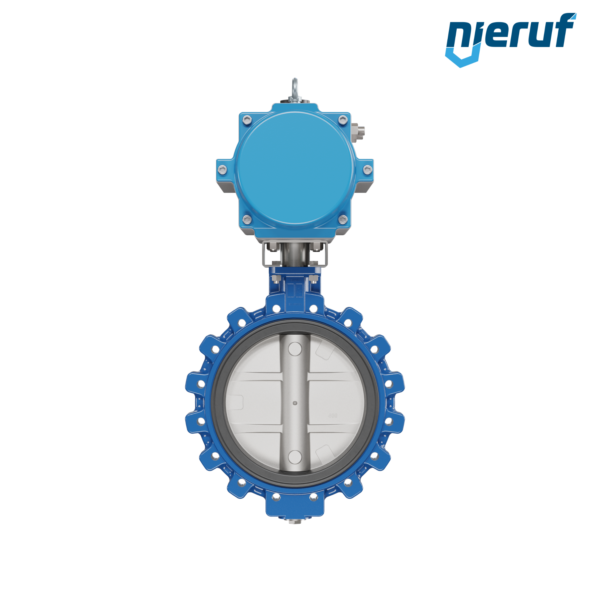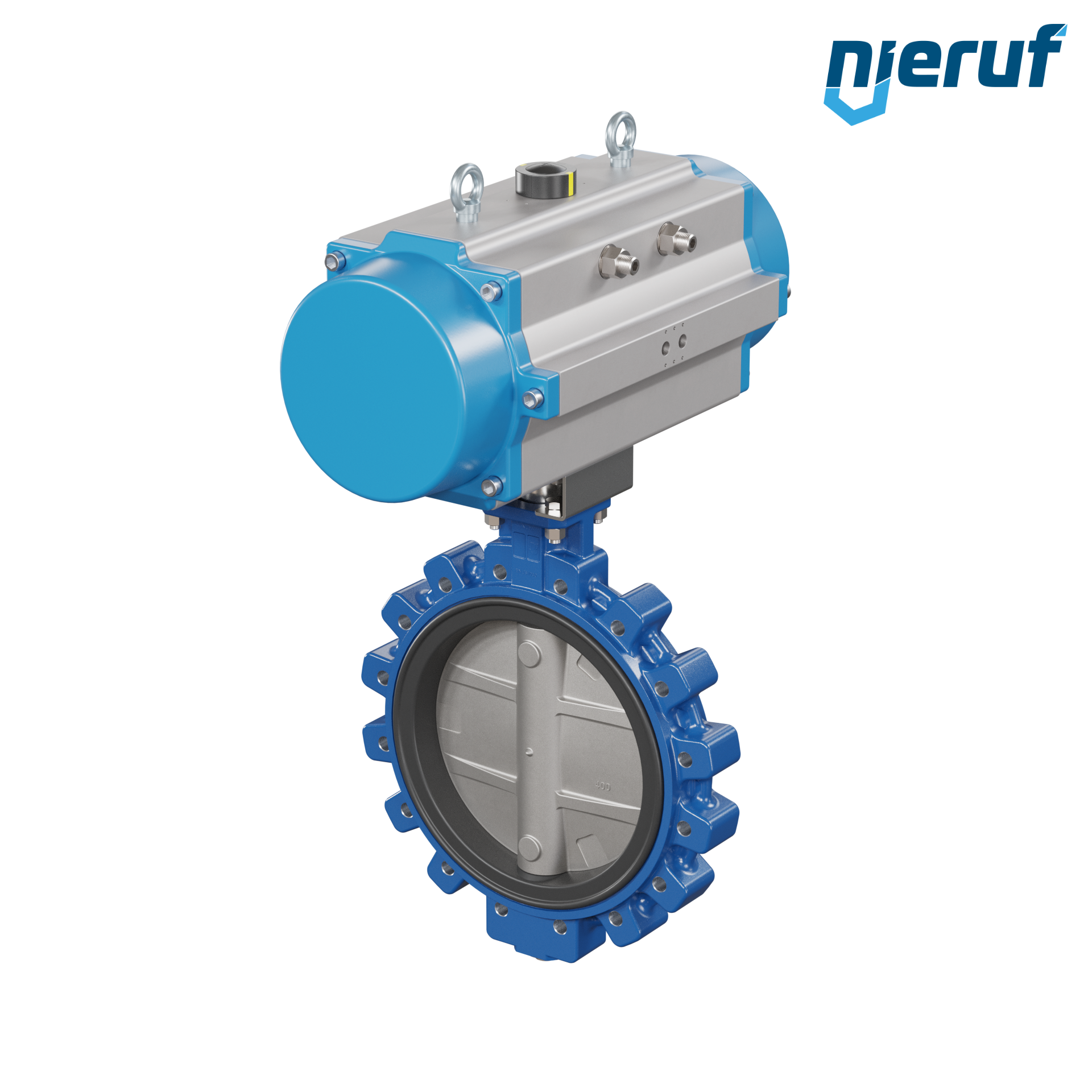 Absperrklappe DN 400 mit Gewindeaugen Gehäuse aus Sphäroguss mit pneumatischer Schwenkantrieb einfachwirkend federschließend Manschette aus FPM