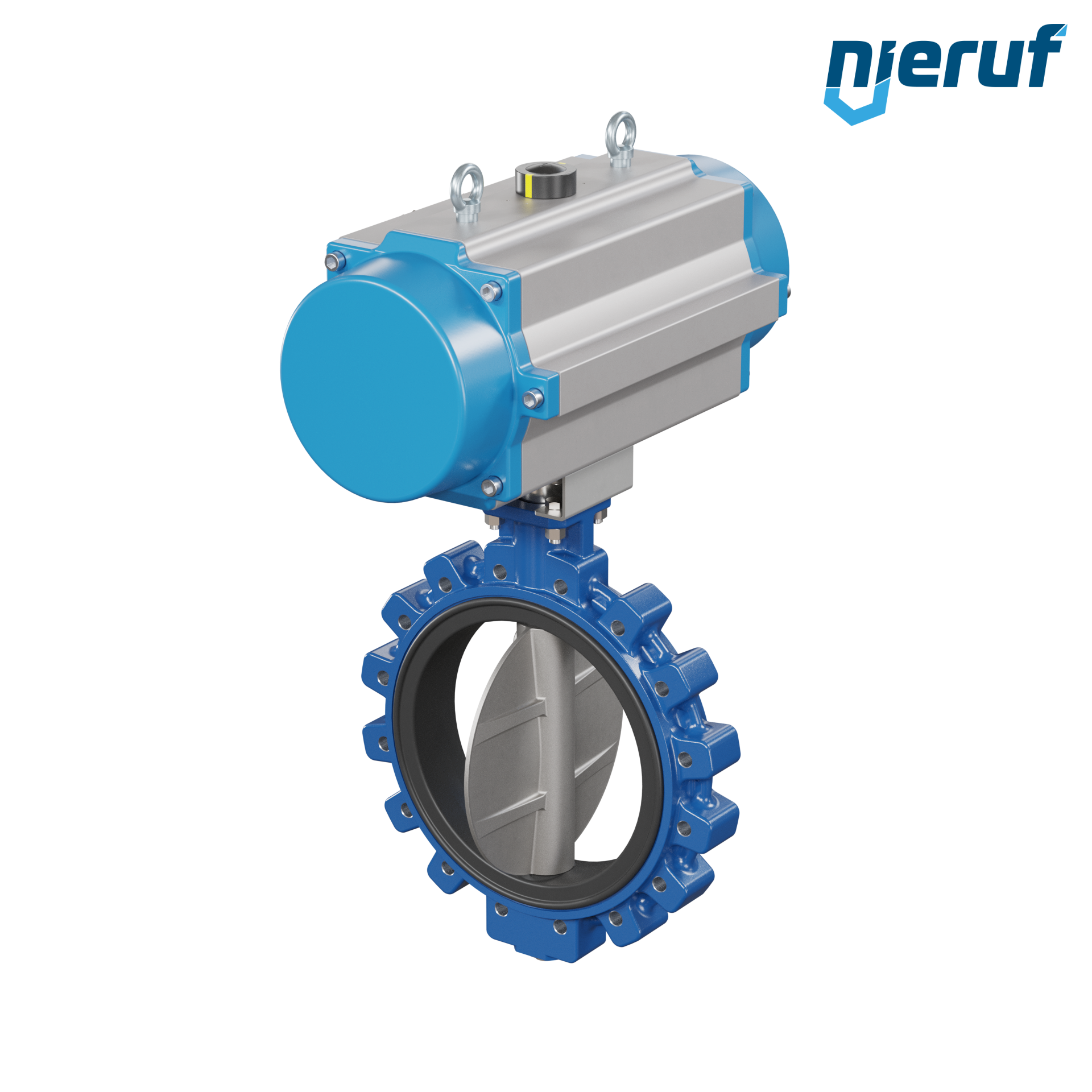 Absperrklappe DN 400 mit Gewindeaugen Gehäuse aus Sphäroguss mit pneumatischer Schwenkantrieb einfachwirkend federöffnend Manschette aus EPDM Hochtemperatur & FDA
