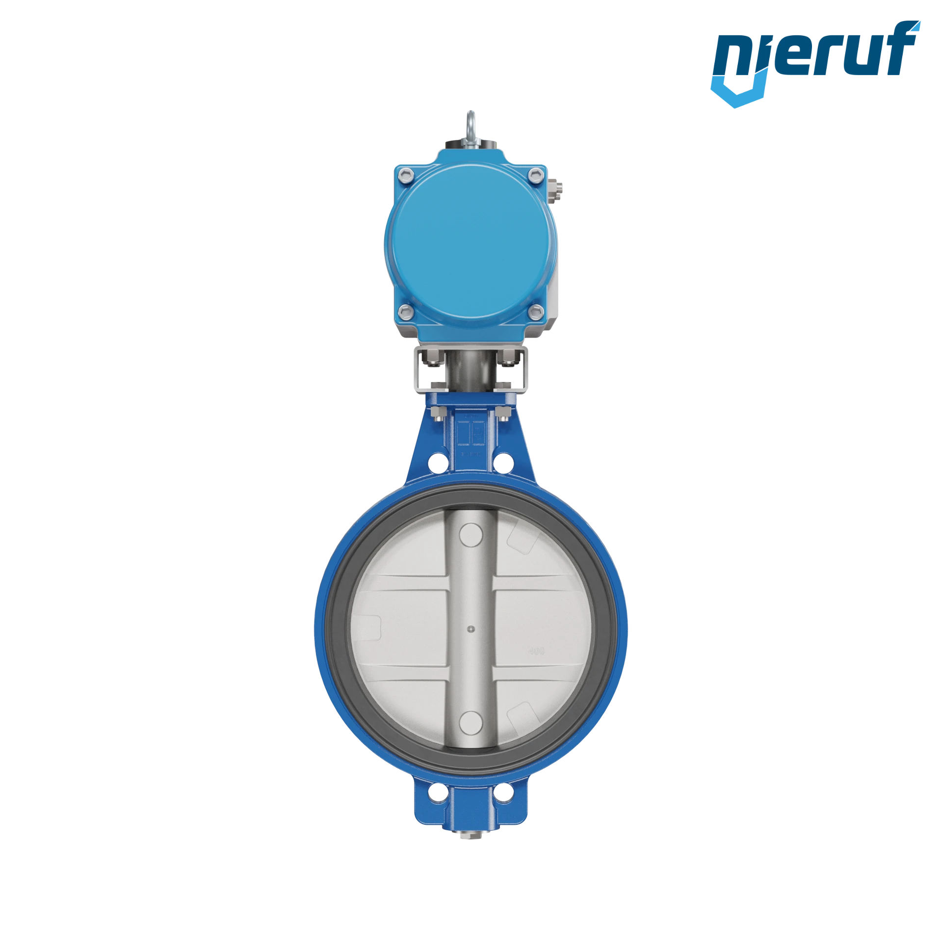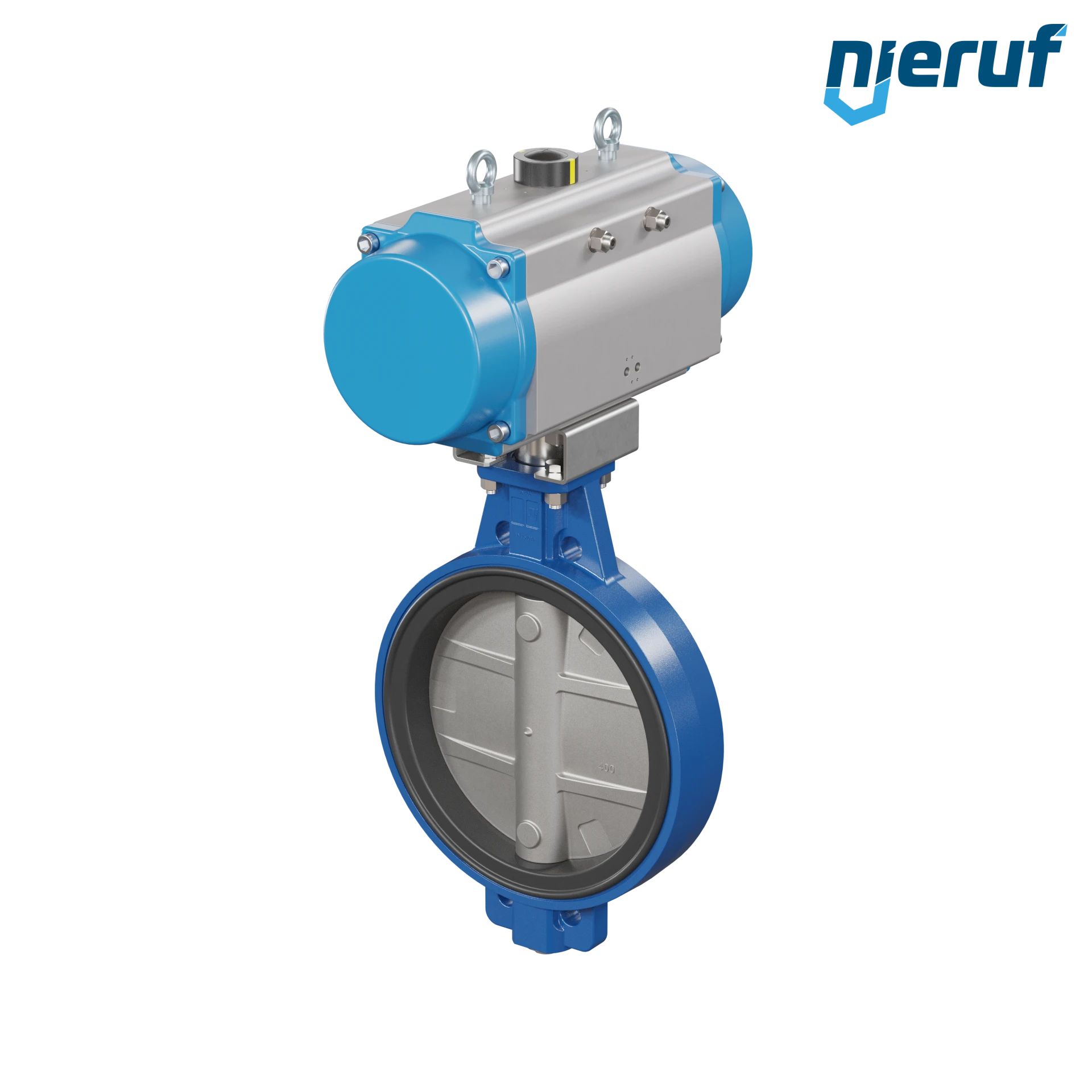 Absperrklappe DN 400 mit Zentrieraugen Gehäuse aus Sphäroguss mit pneumatischer Schwenkantrieb doppeltwirkend Manschette aus FPM