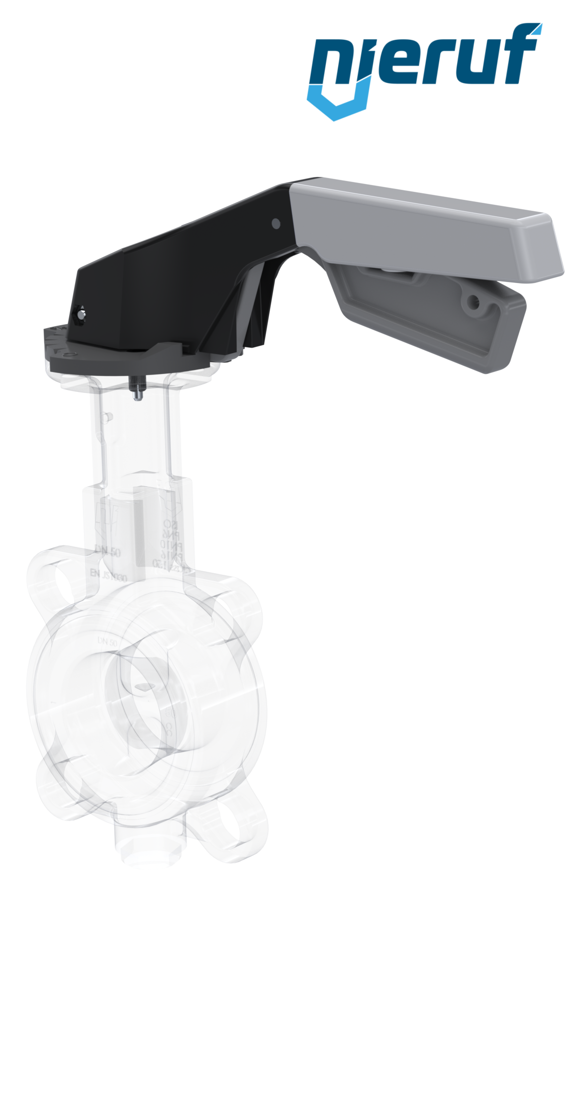 Absperrklappe DN 50 PN6-PN10-PN16 & ANSI150 mit Zentrieraugen aus Sphäroguss mit Handhebel grau EPDM Hochtemperatur & FDA