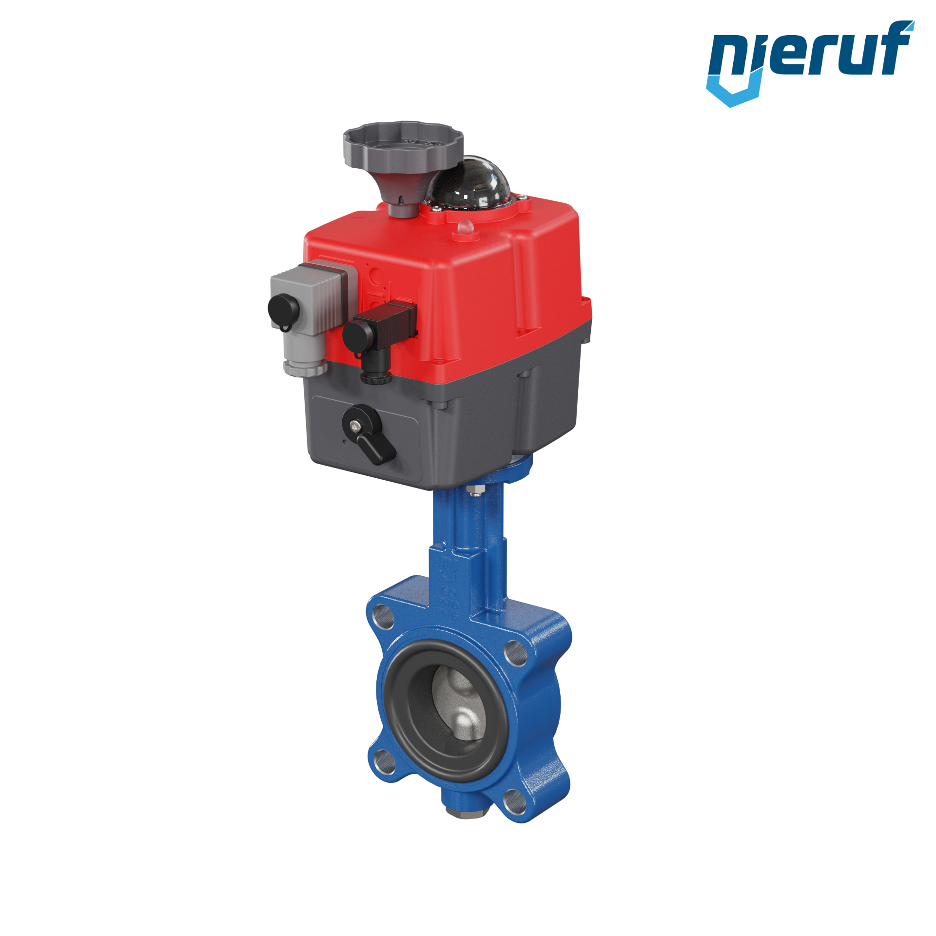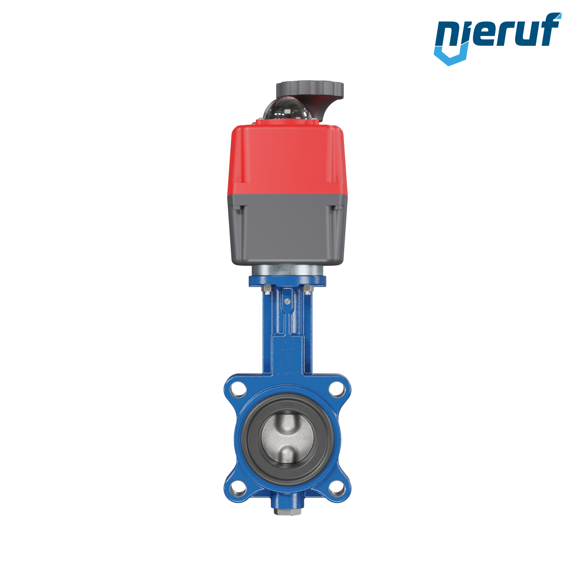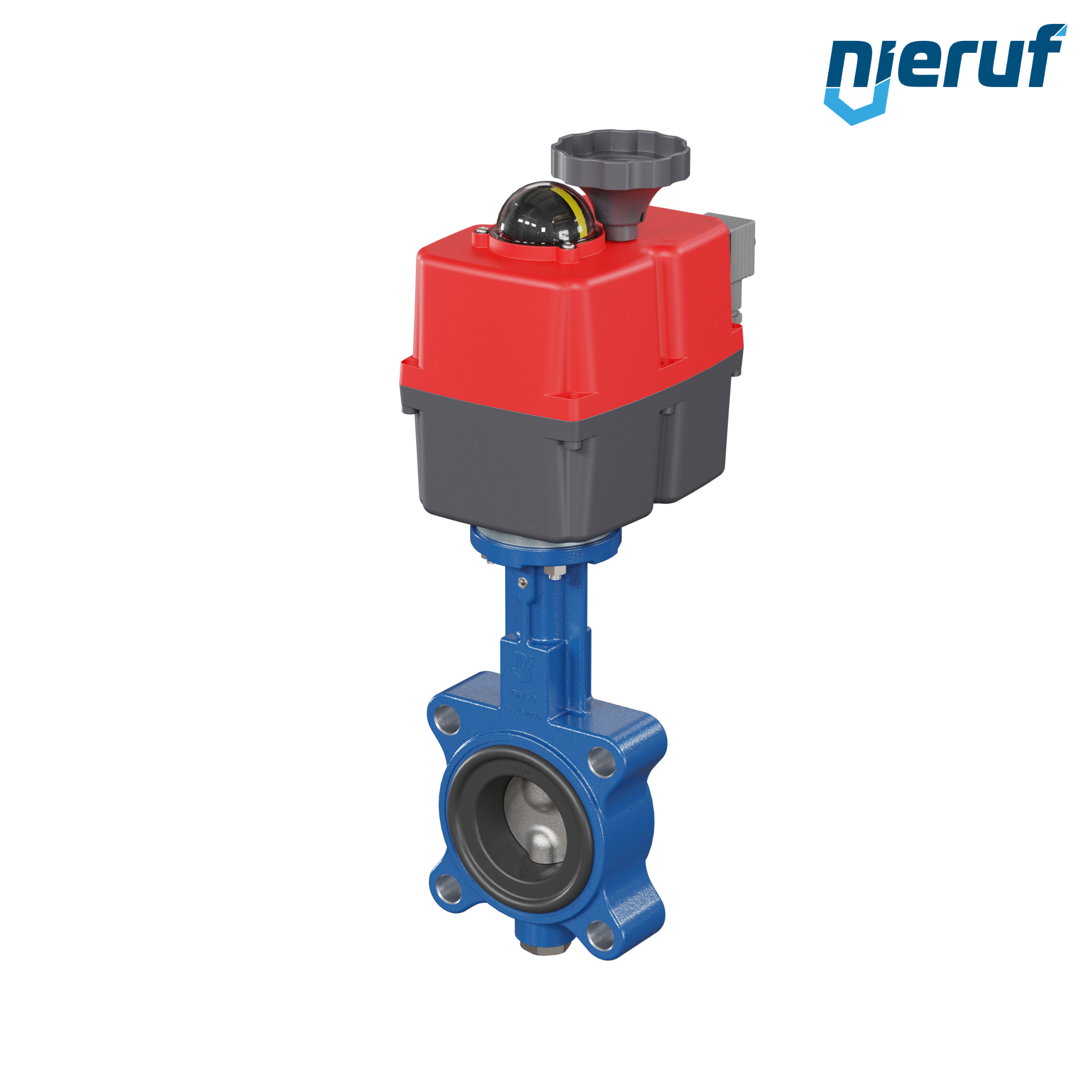 Absperrklappe DN 50 PN10-PN16 mit Gewindeaugen Gehäuse aus Sphäroguss mit elektronischer Schwenkantrieb 24-240V AC/DC Manschette aus NBR-70-schwarz DVGW Gas