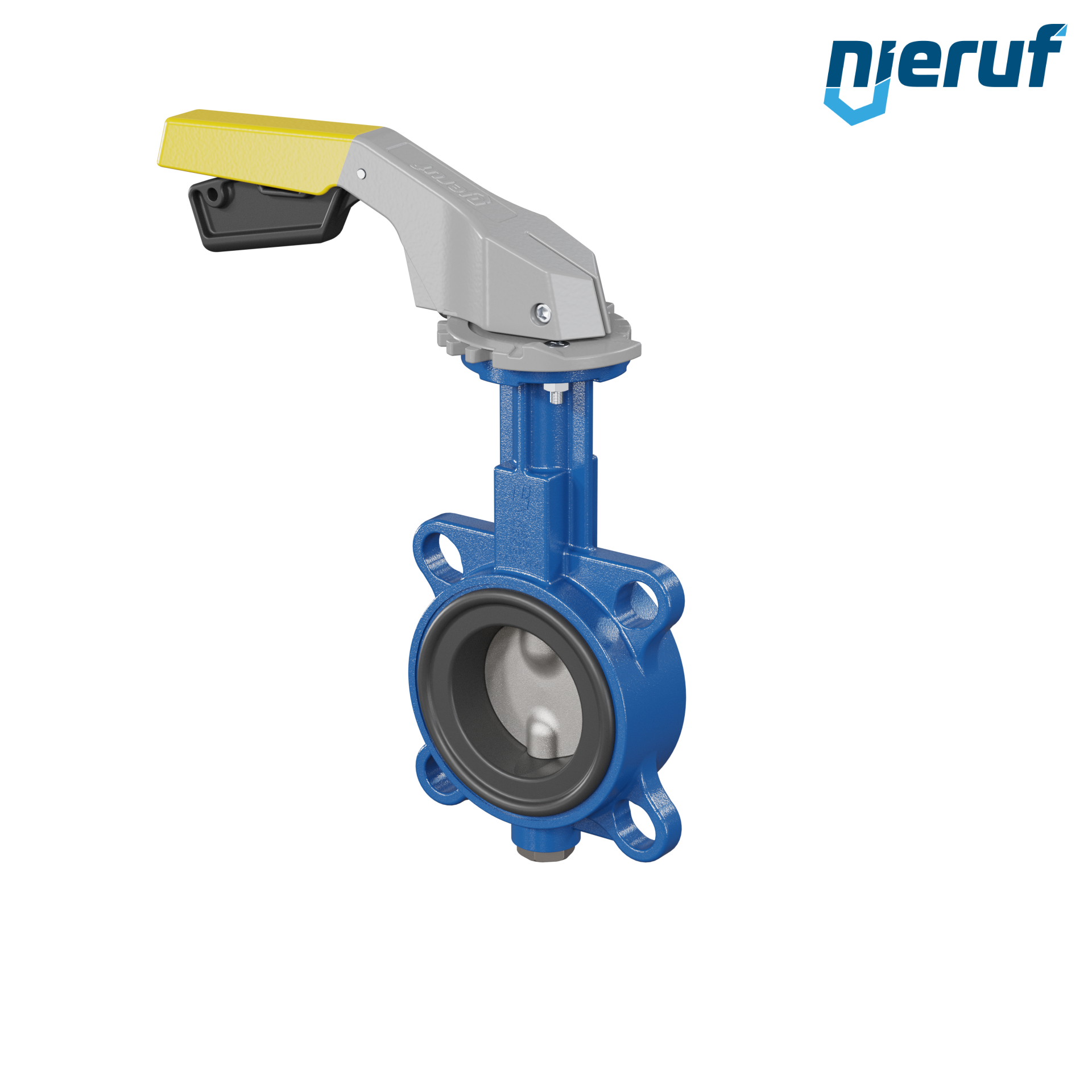 Absperrklappe DN 65 PN6-PN10-PN16 & ANSI150 mit Zentrieraugen aus Sphäroguss mit Handhebel gelb NBR-70-schwarz DVGW Gas