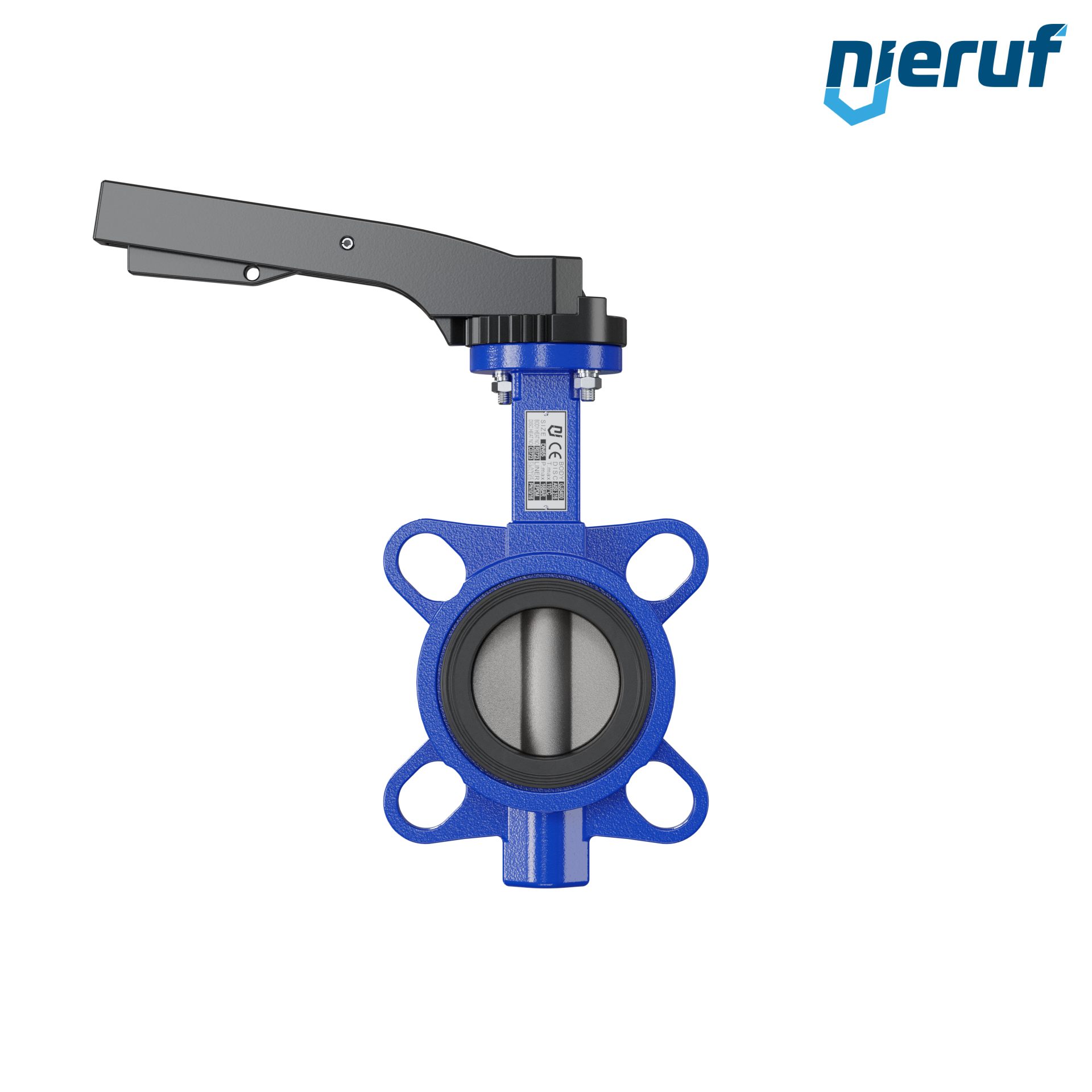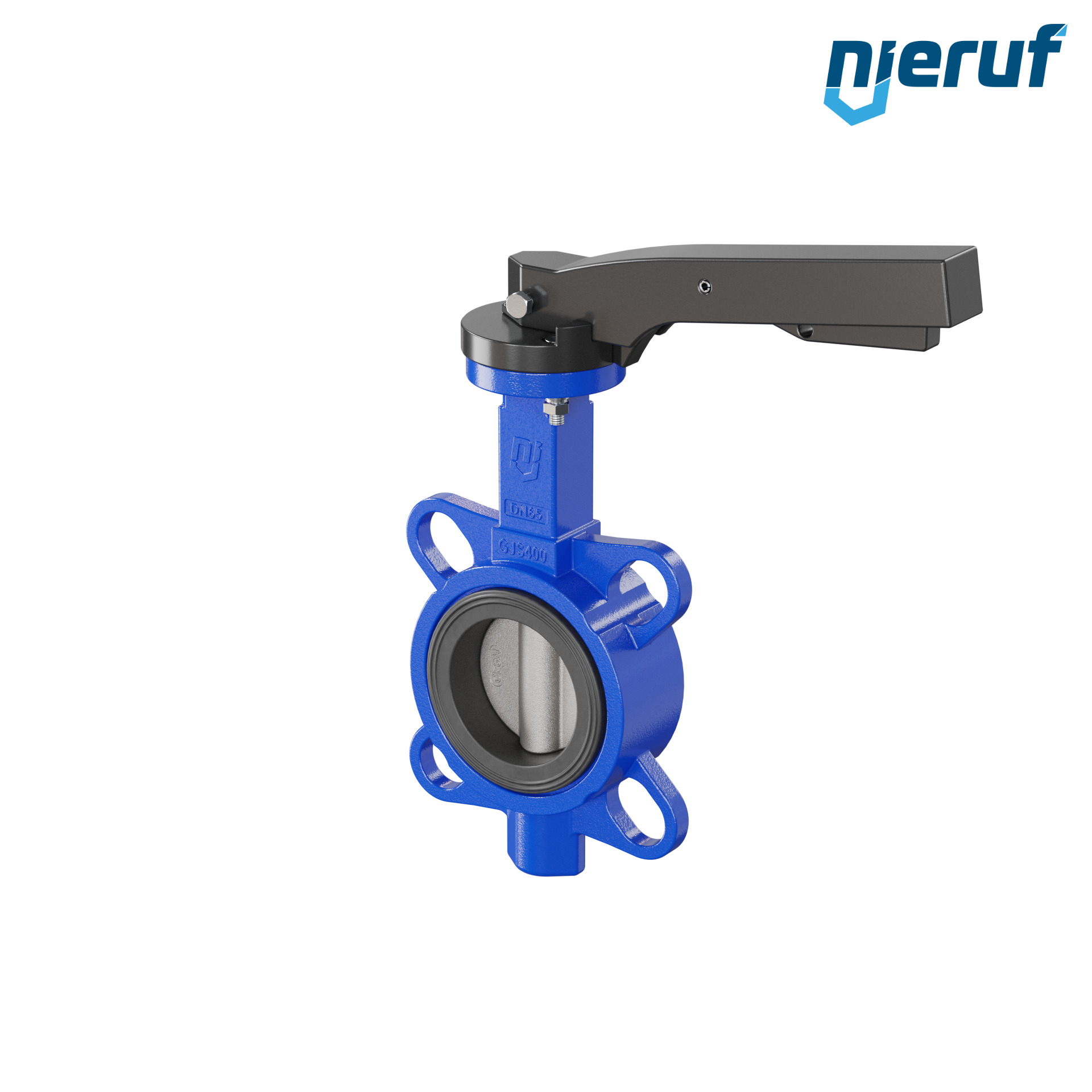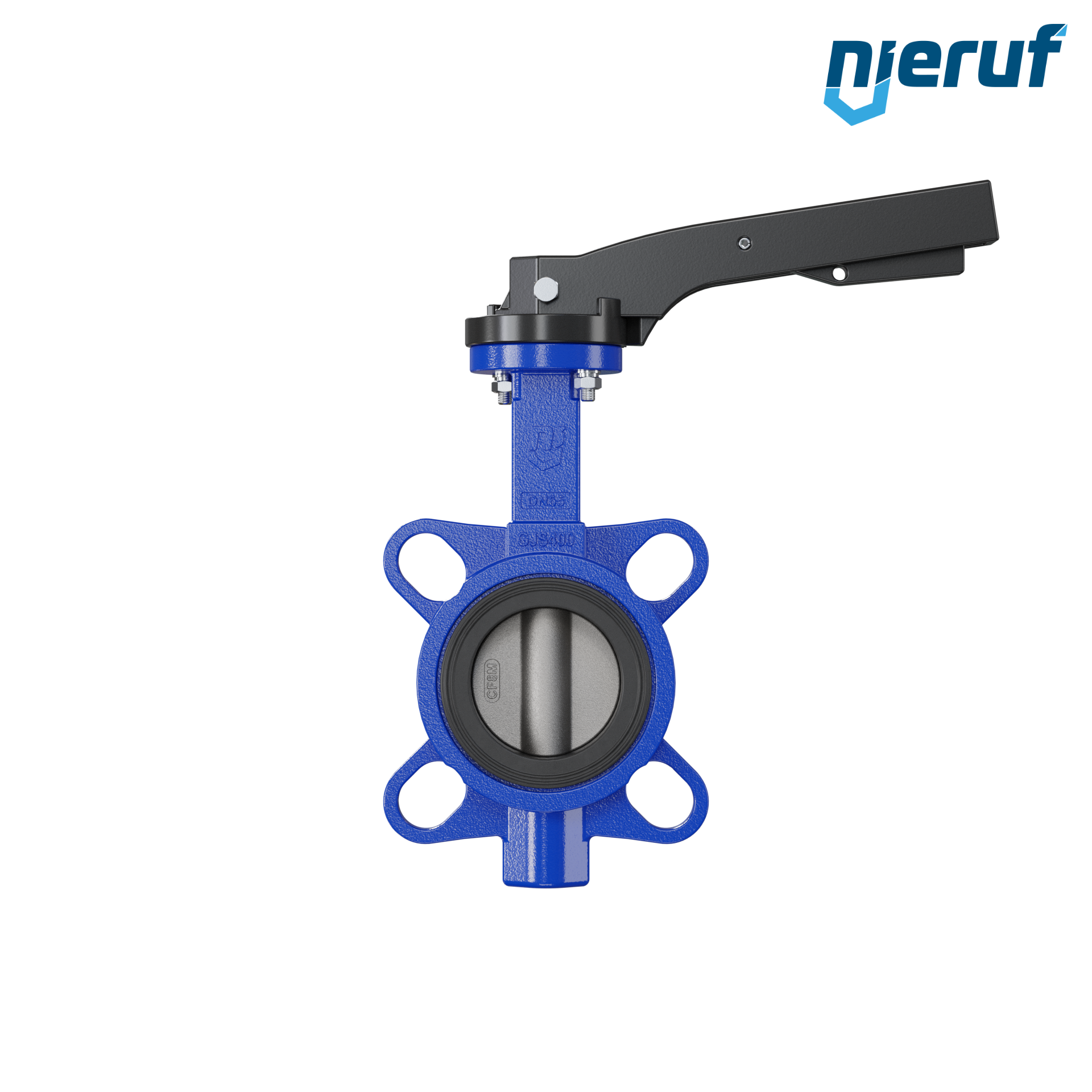 Absperrklappe DN 65 PN16 mit Zentrieraugen Gehäuse aus Gusseisen EN GJL-250 (GG25) Klappenscheibe Edelstahl 1.4408 mit Rasthebel NBR