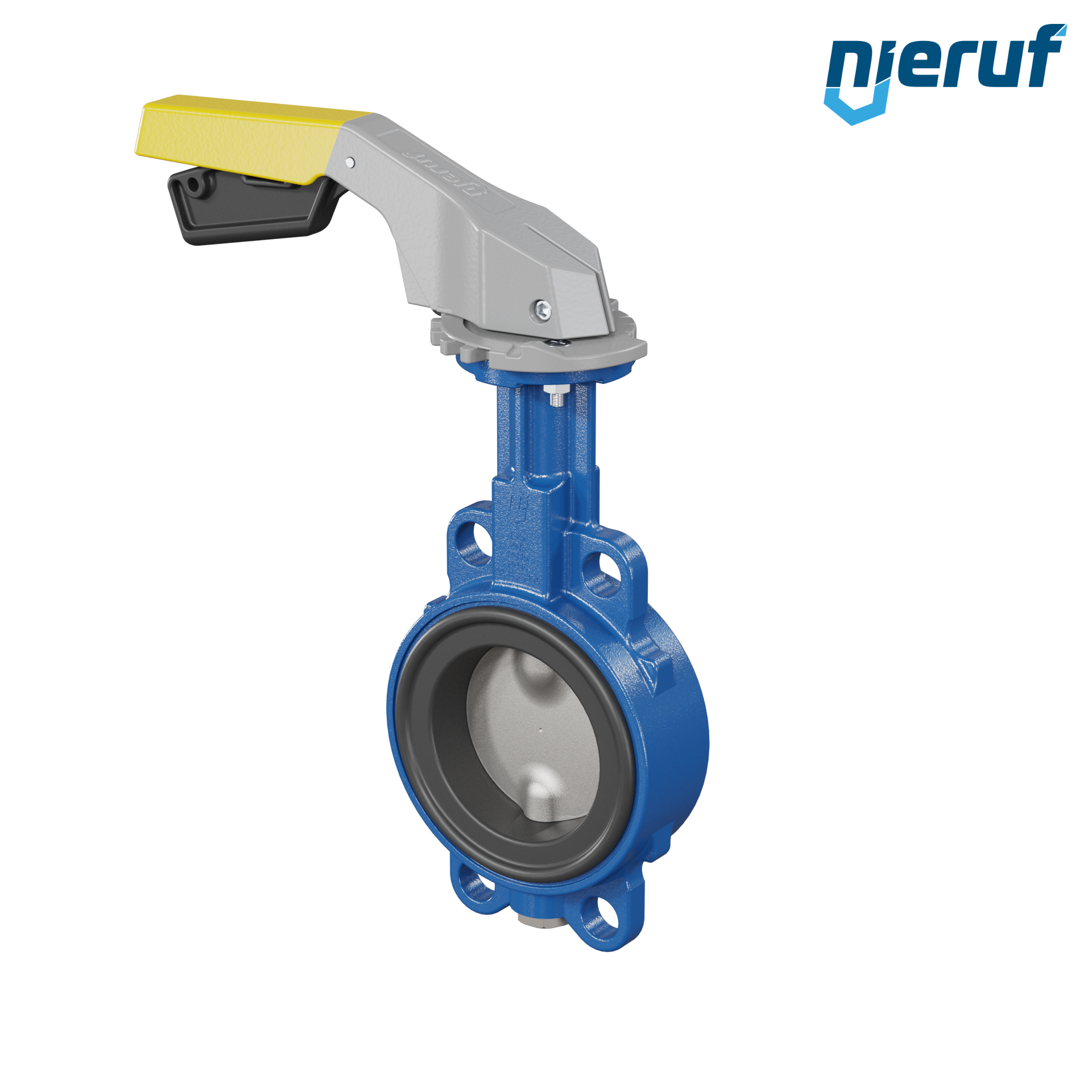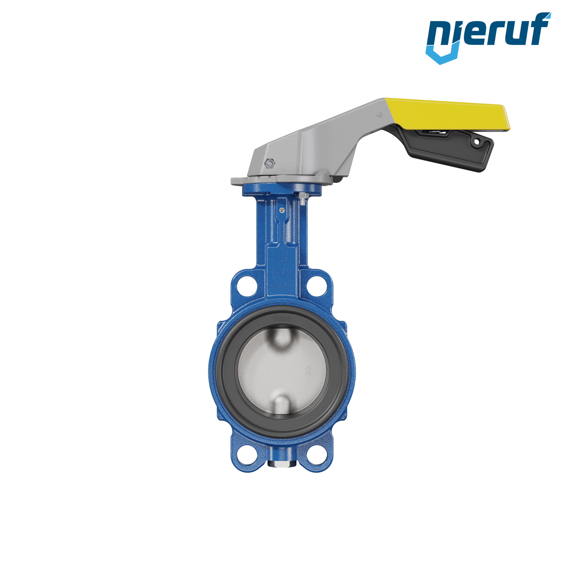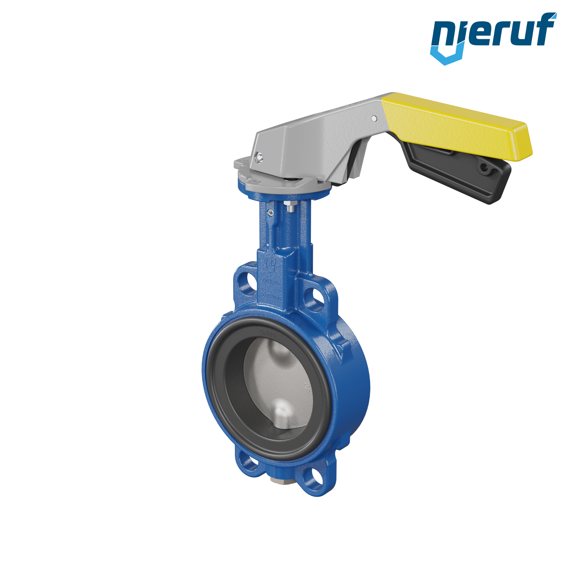 Absperrklappe DN 80 PN6-PN10-PN16 & ANSI150 mit Zentrieraugen aus Sphäroguss mit Handhebel gelb NBR-70-schwarz DVGW Gas
