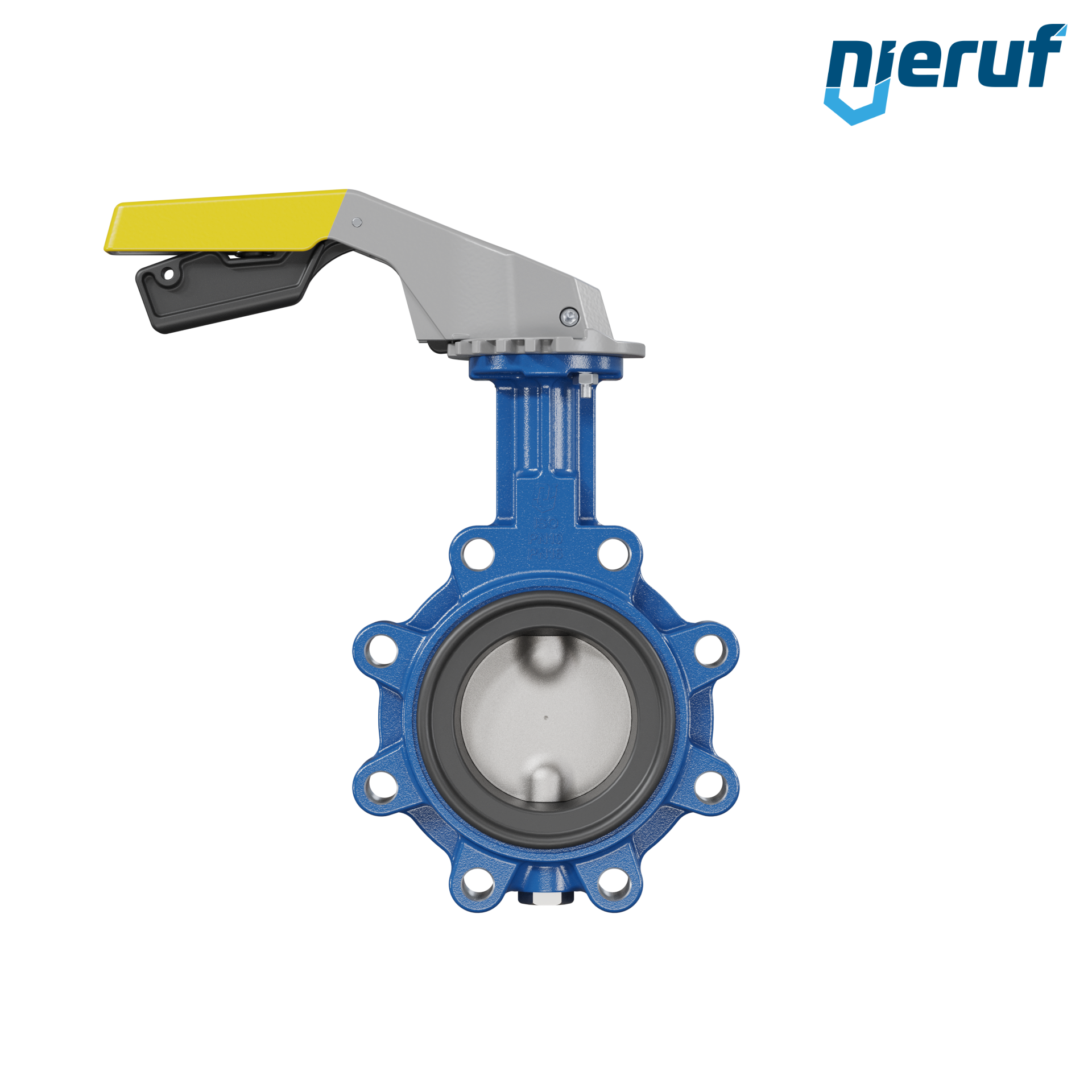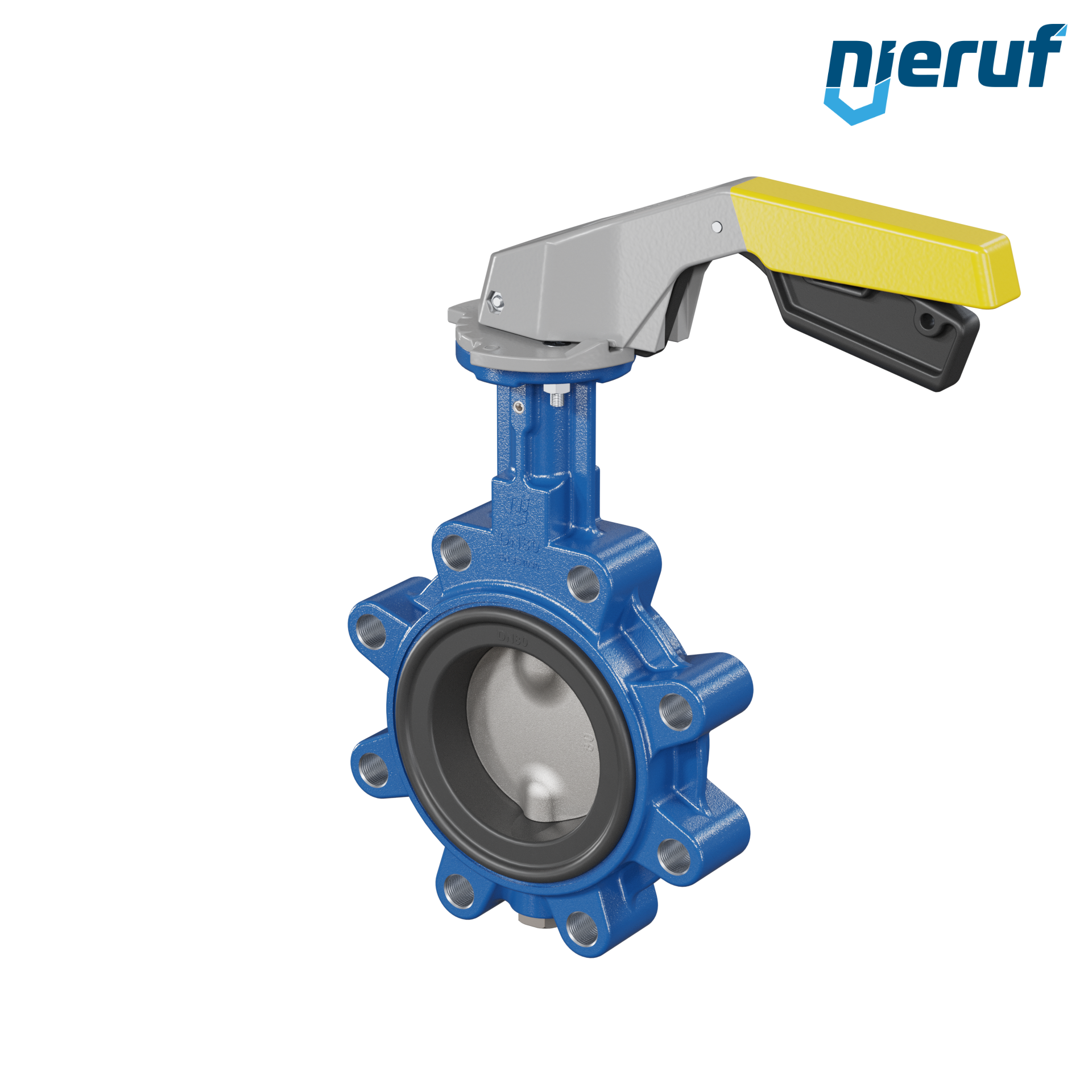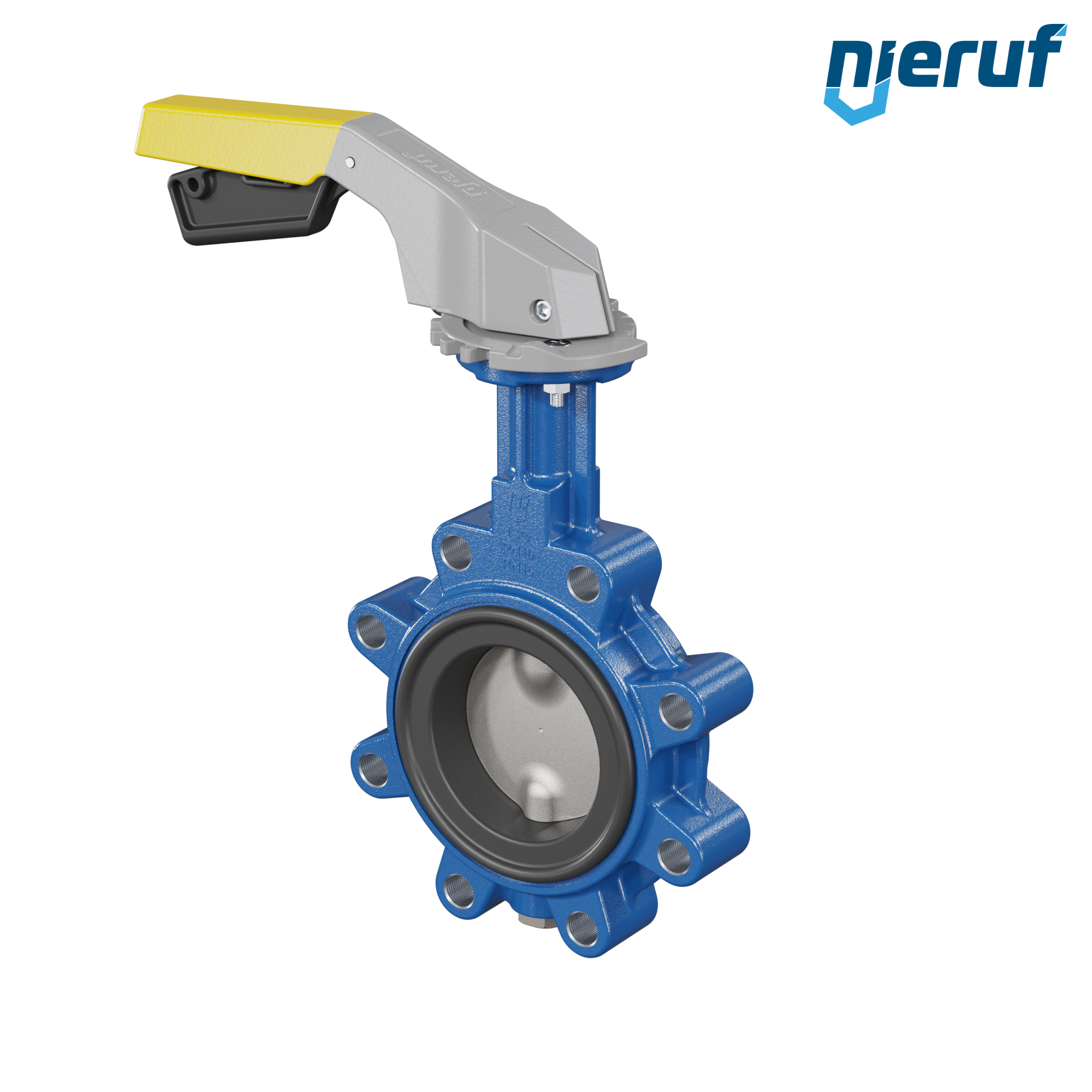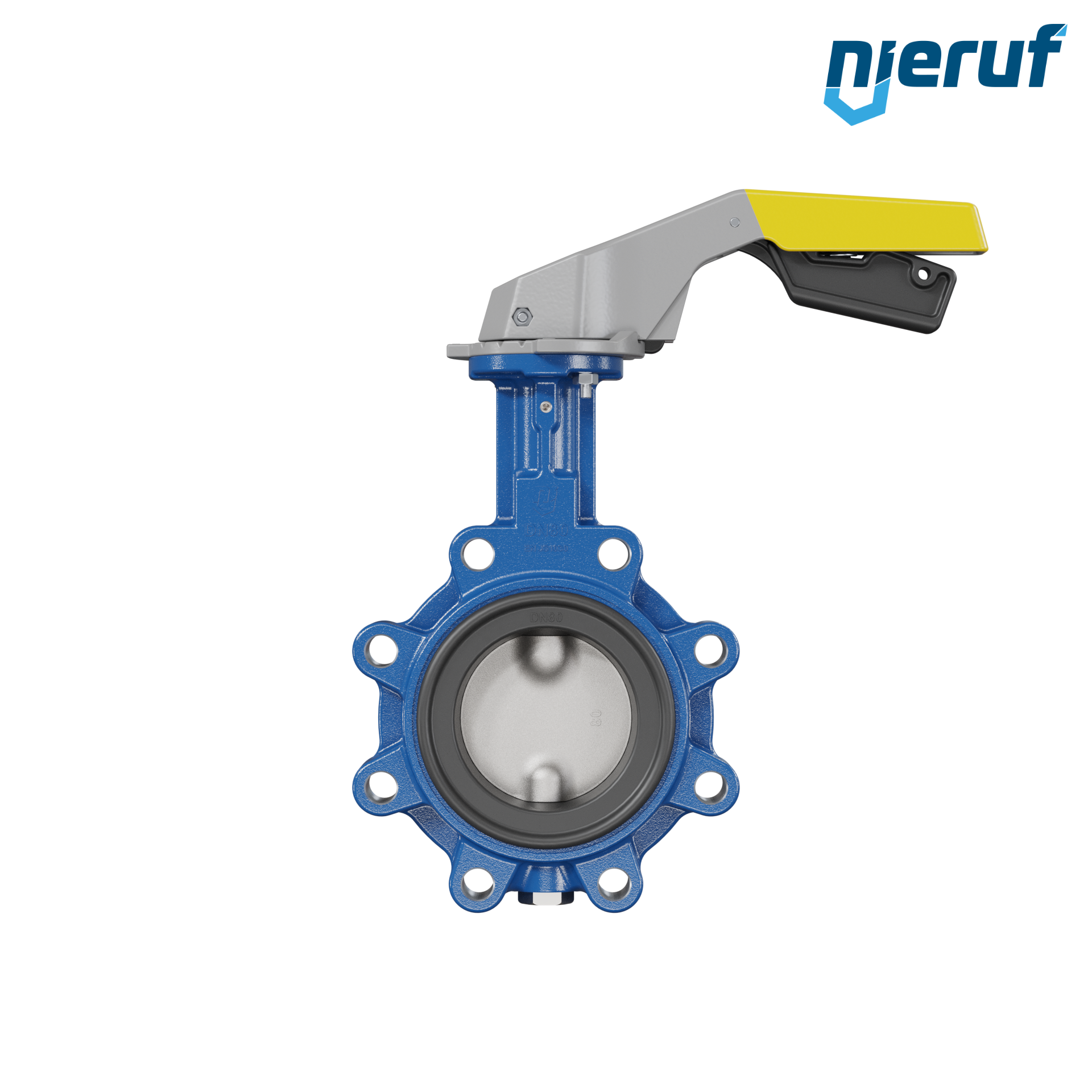 Absperrklappe DN 80 PN10-PN16 mit Gewindeaugen aus Sphäroguss mit Handhebel gelb NBR-70-schwarz DVGW Gas