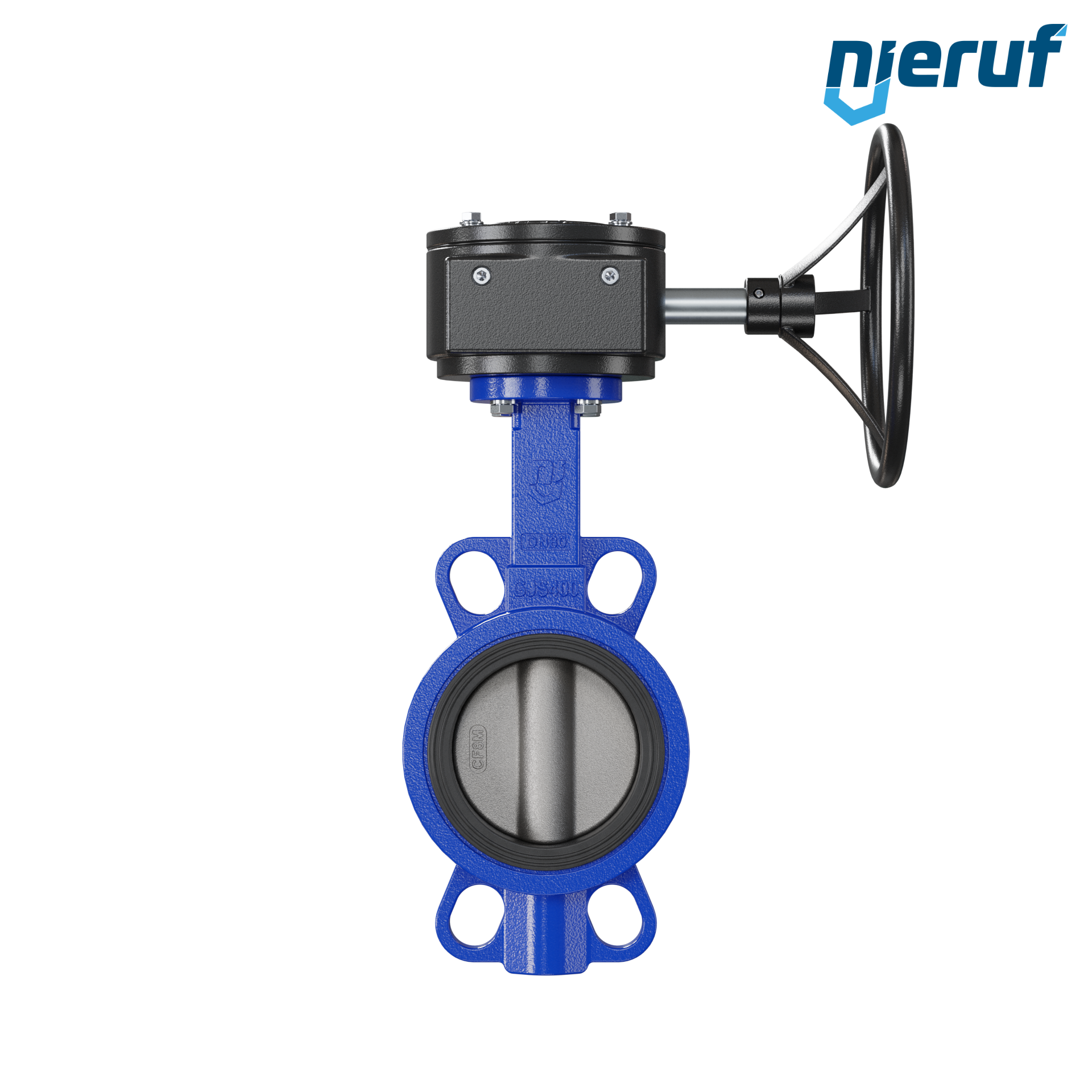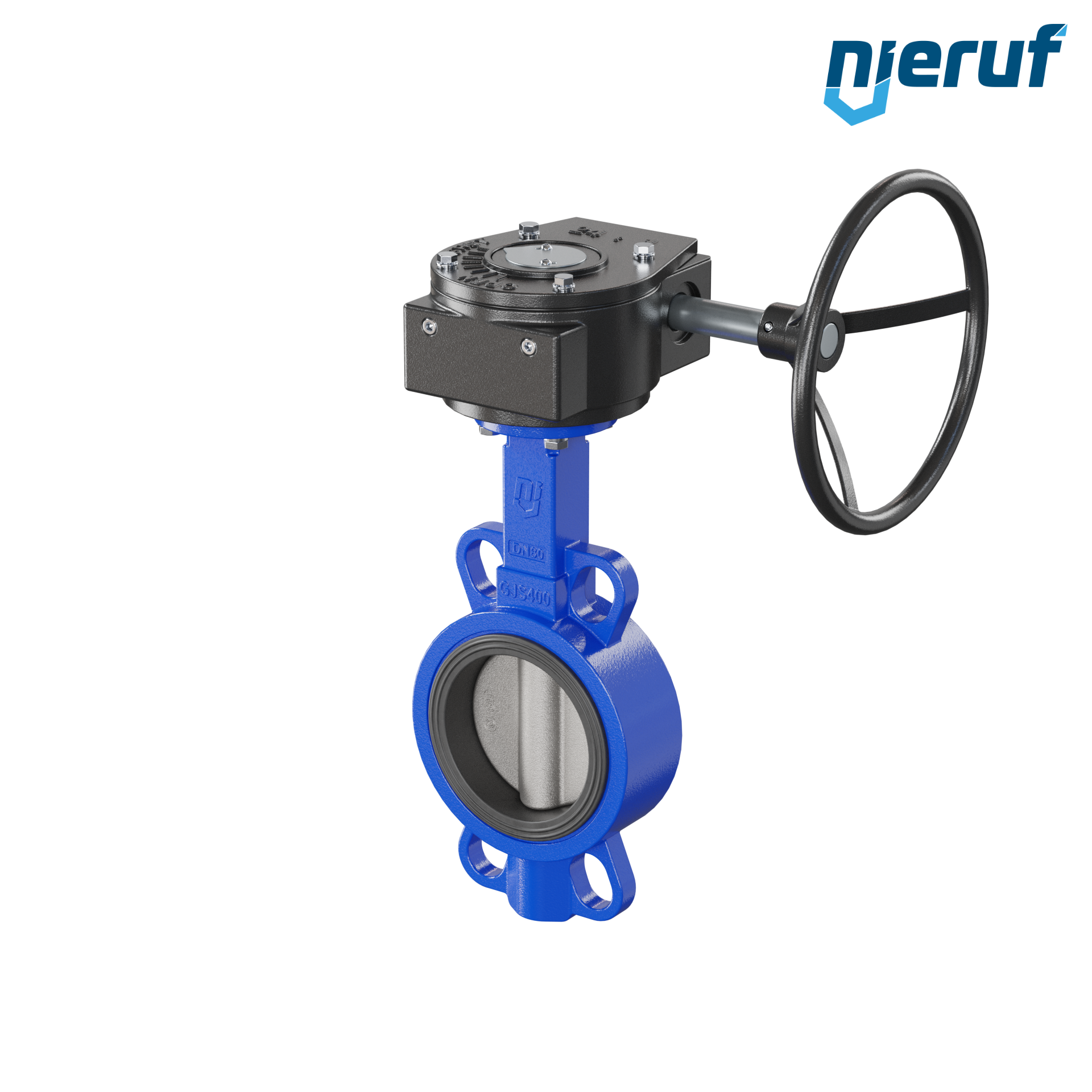 Absperrklappe DN 80 PN16 mit Zentrieraugen Gehäuse aus Gusseisen EN GJL-250 (GG25) Klappenscheibe Edelstahl 1.4408 mit Getriebe NBR