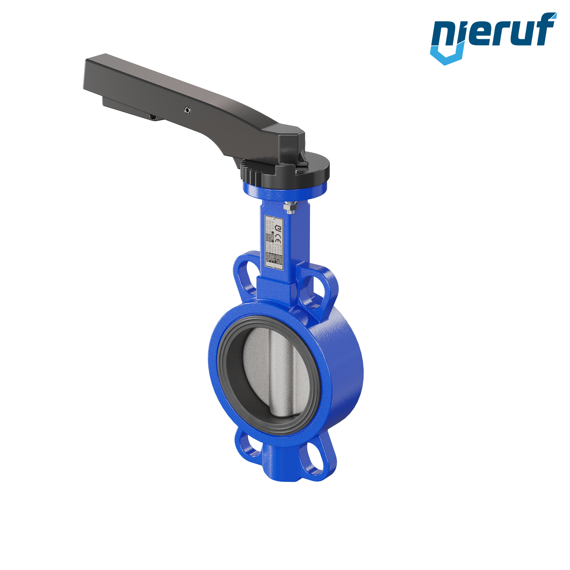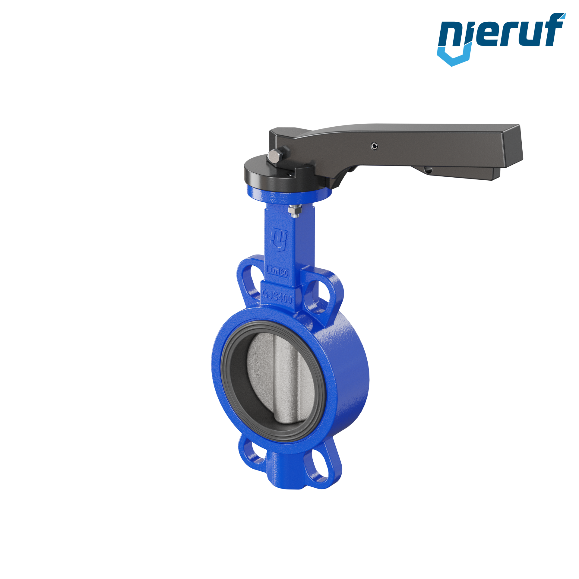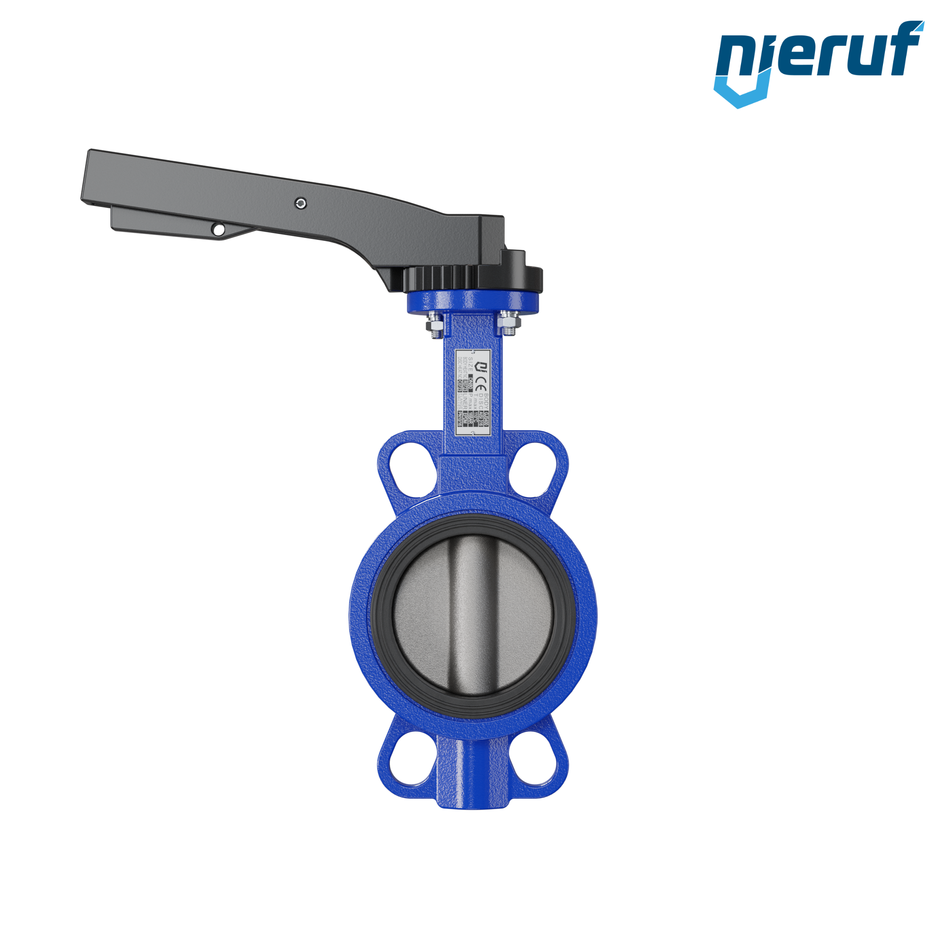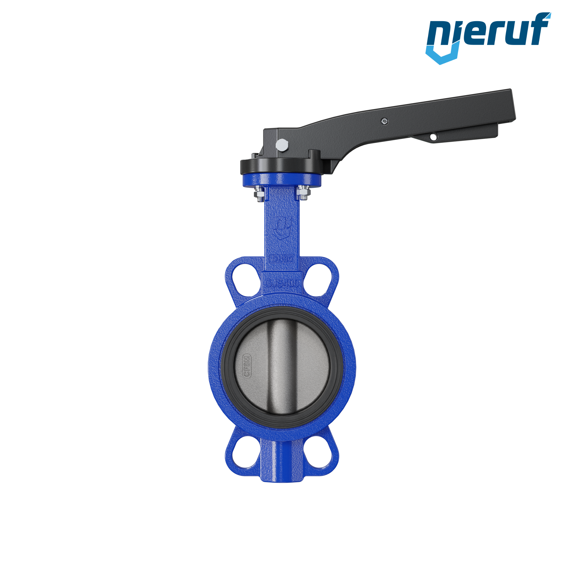 Absperrklappe DN 80 PN16 mit Zentrieraugen Gehäuse aus Gusseisen EN GJL-250 (GG25) Klappenscheibe Edelstahl 1.4408 mit Rasthebel NBR
