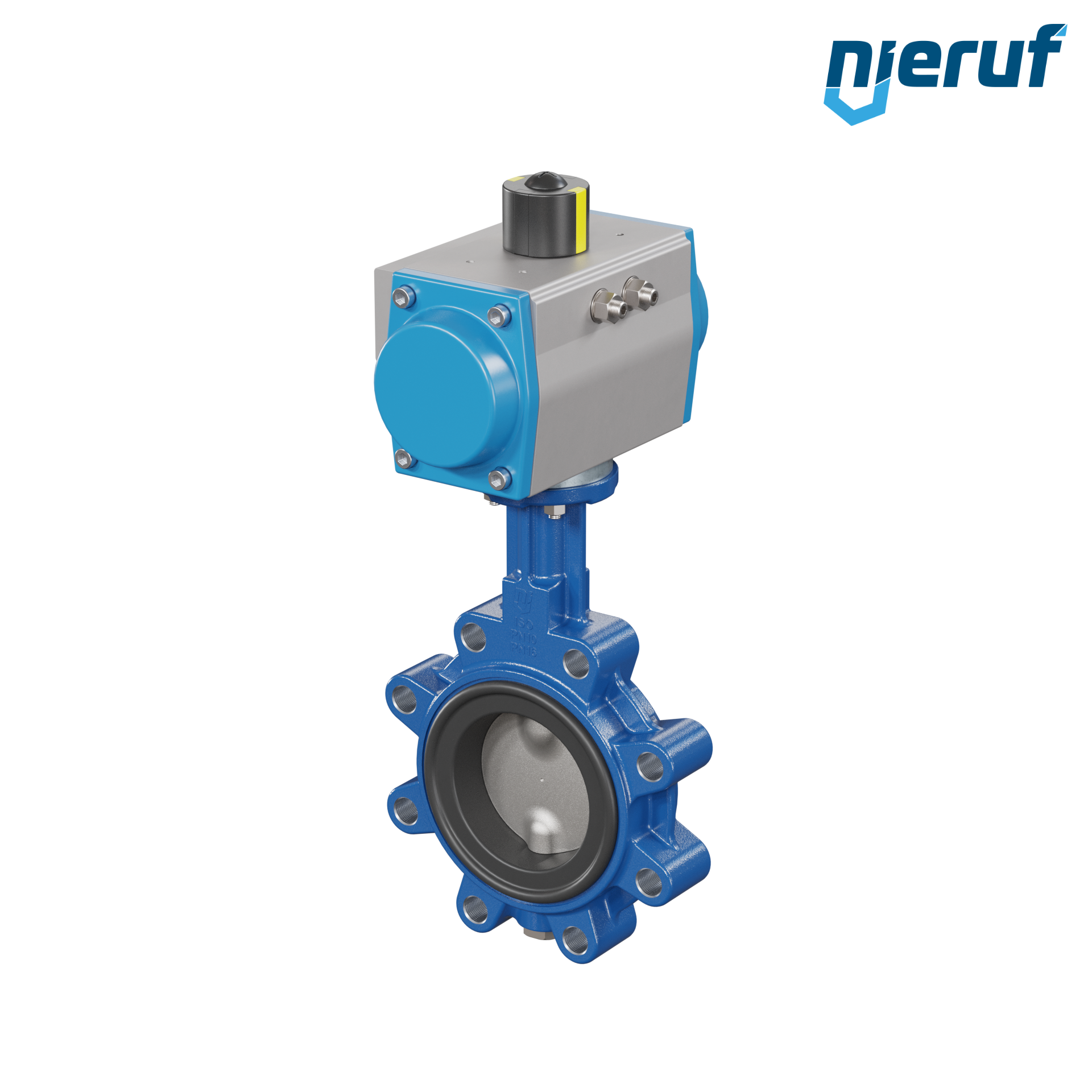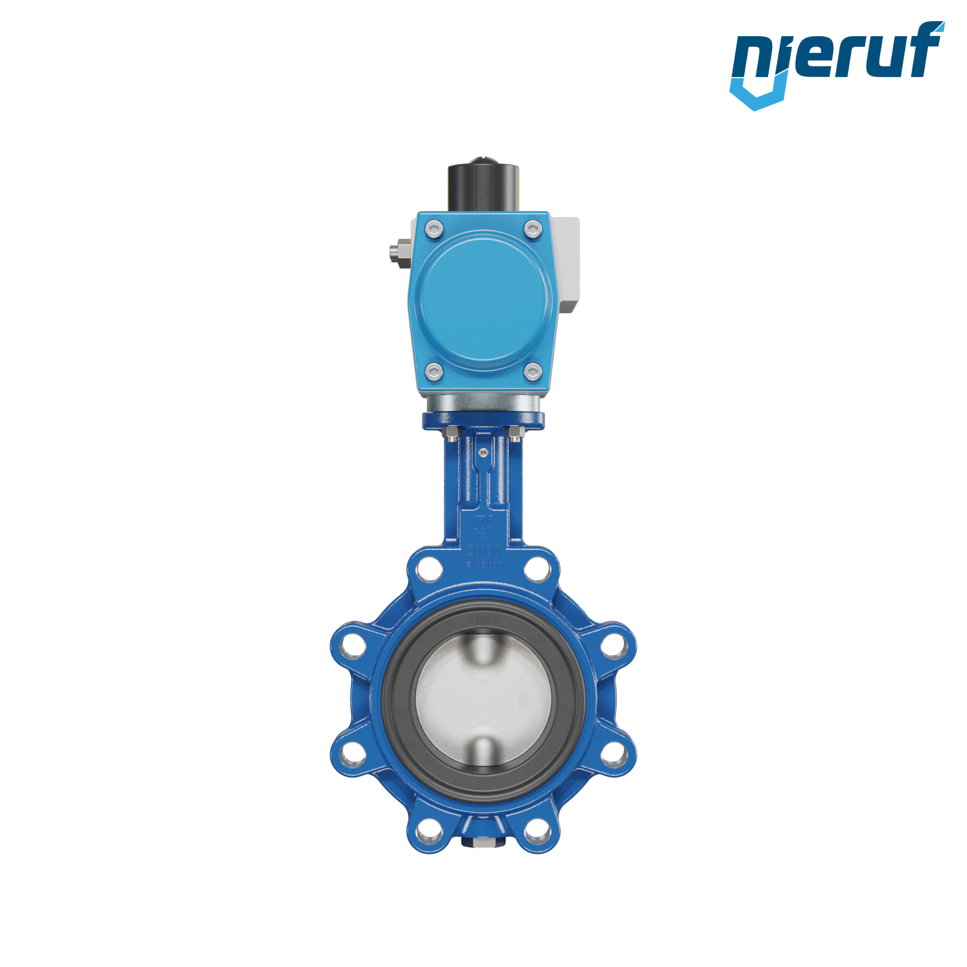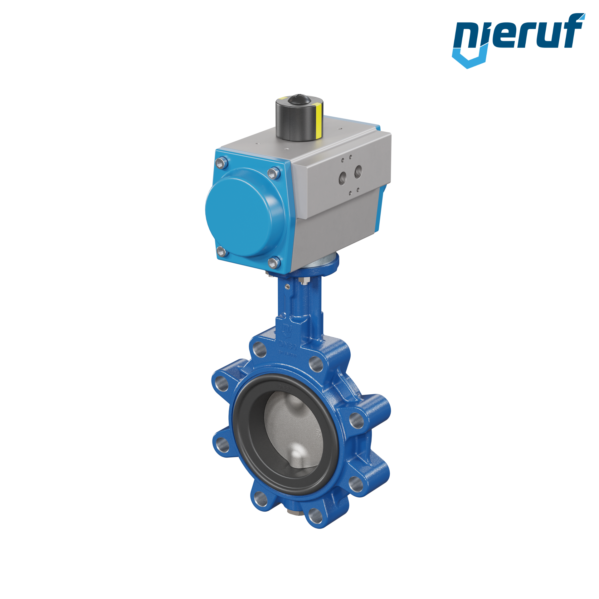 Absperrklappe DN 80 mit Gewindeaugen Gehäuse aus Sphäroguss mit pneumatischer Schwenkantrieb doppeltwirkend Manschette aus EPDM DVGW Trinkwasser, WRAS, ACS, W270