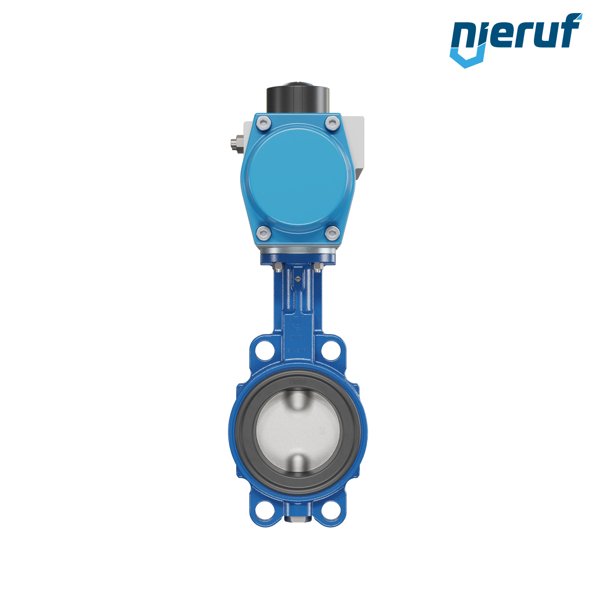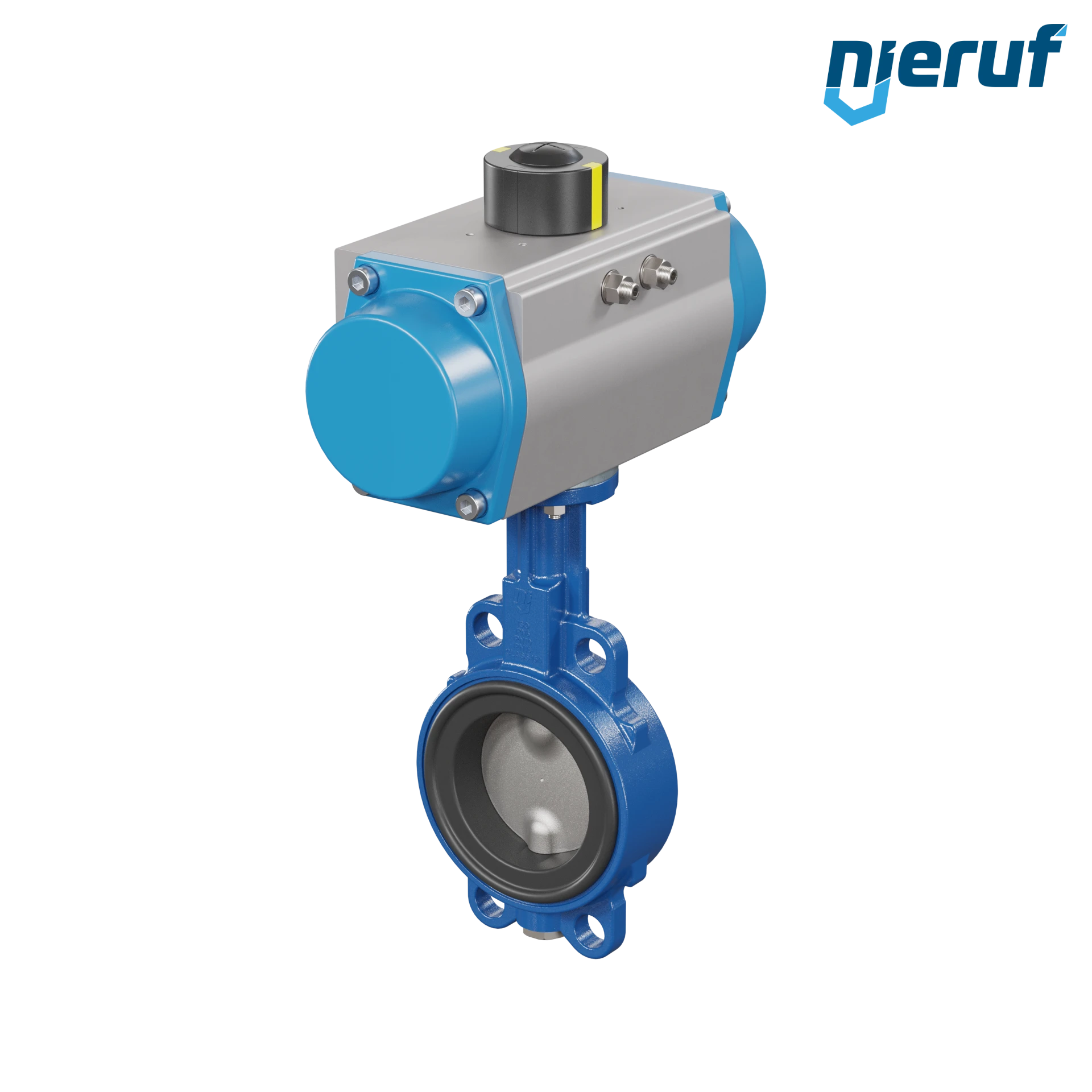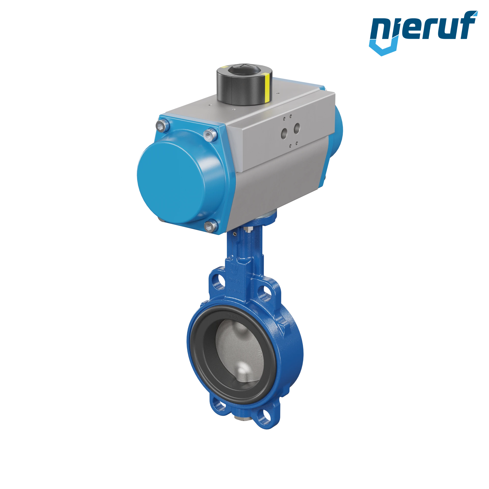 Absperrklappe DN 80 mit Zentrieraugen Gehäuse aus Sphäroguss mit pneumatischer Schwenkantrieb einfachwirkend federschließend Manschette aus EPDM DVGW Trinkwasser, WRAS, ACS, W270