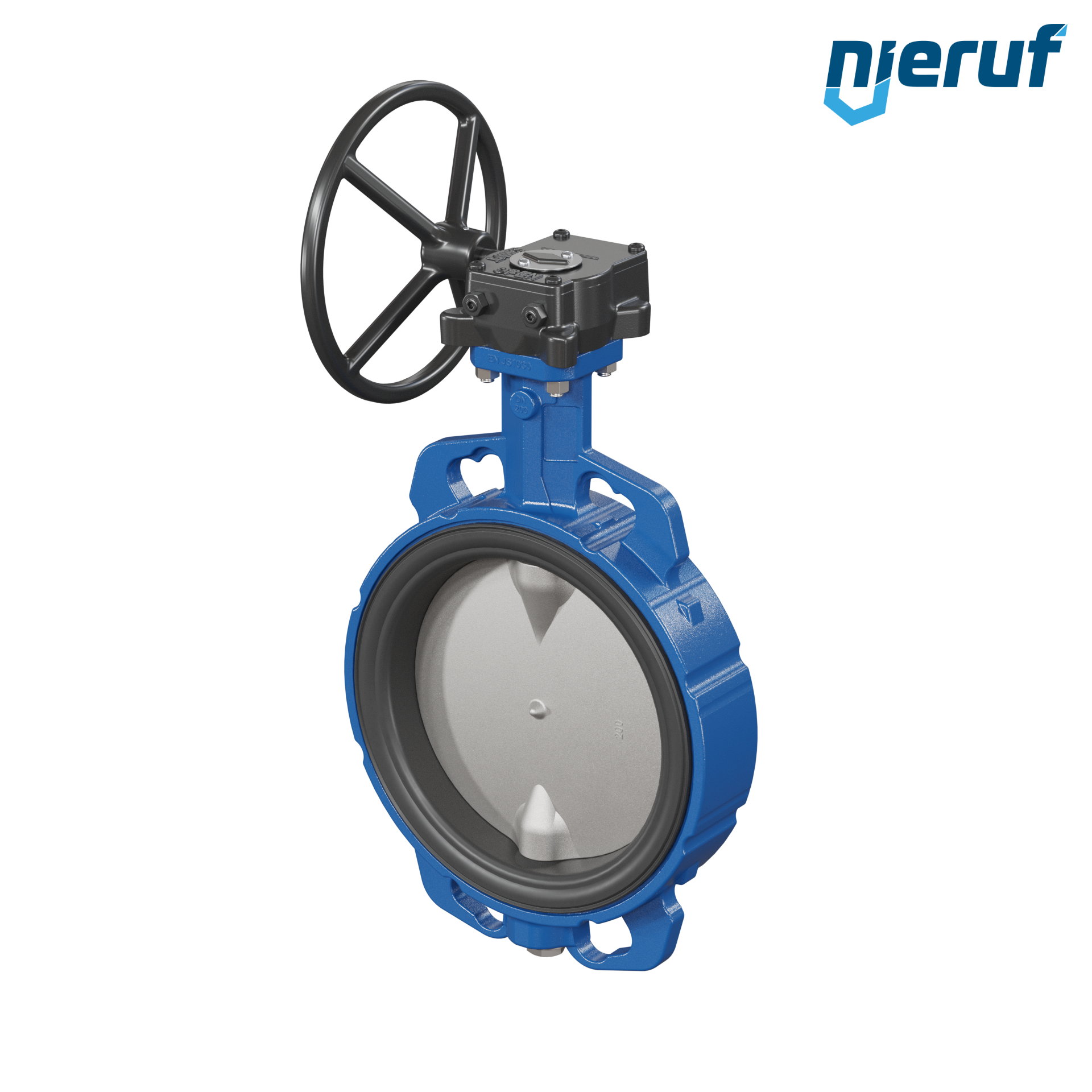 Absperrklappe DN 200 PN6-PN10-PN16 & ANSI150 mit Zentrieraugen aus Sphäroguss mit Schneckenradgetriebe EPDM DVGW Trinkwasser, WRAS, ACS, W270