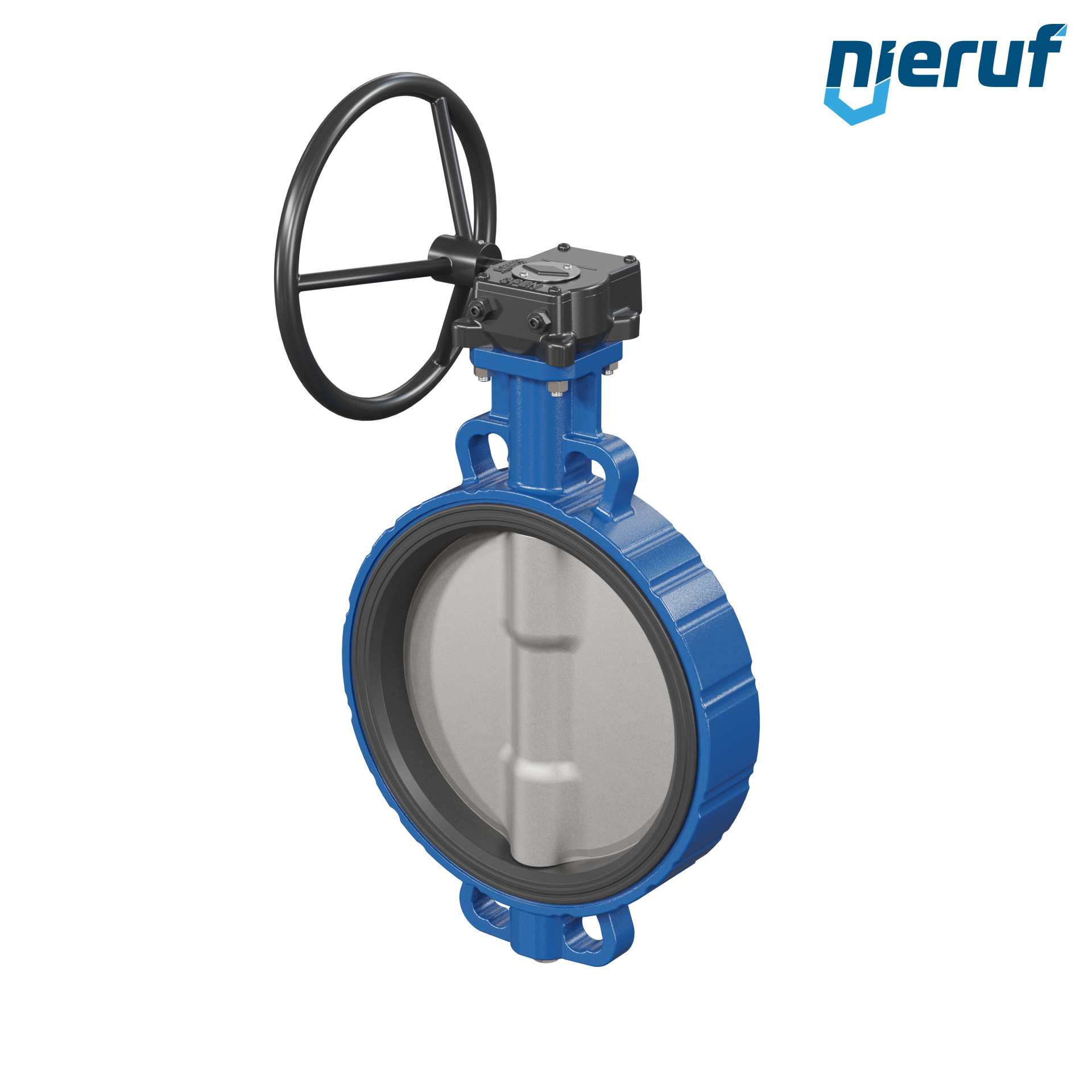 Absperrklappe DN 300 PN6-PN10-PN16 & ANSI150 mit Zentrieraugen aus Sphäroguss mit Schneckenradgetriebe NBR-70-schwarz DVGW Gas