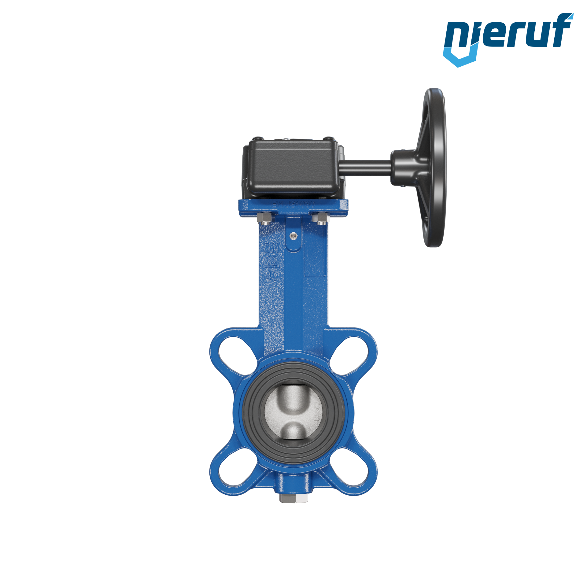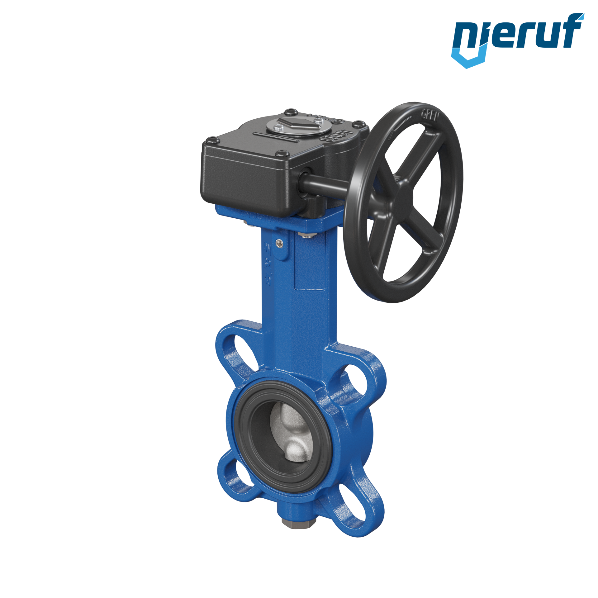 Absperrklappe DN 40 PN6-PN10-PN16 & ANSI150 mit Zentrieraugen aus Sphäroguss mit Schneckenradgetriebe NBR-70-schwarz DVGW Gas