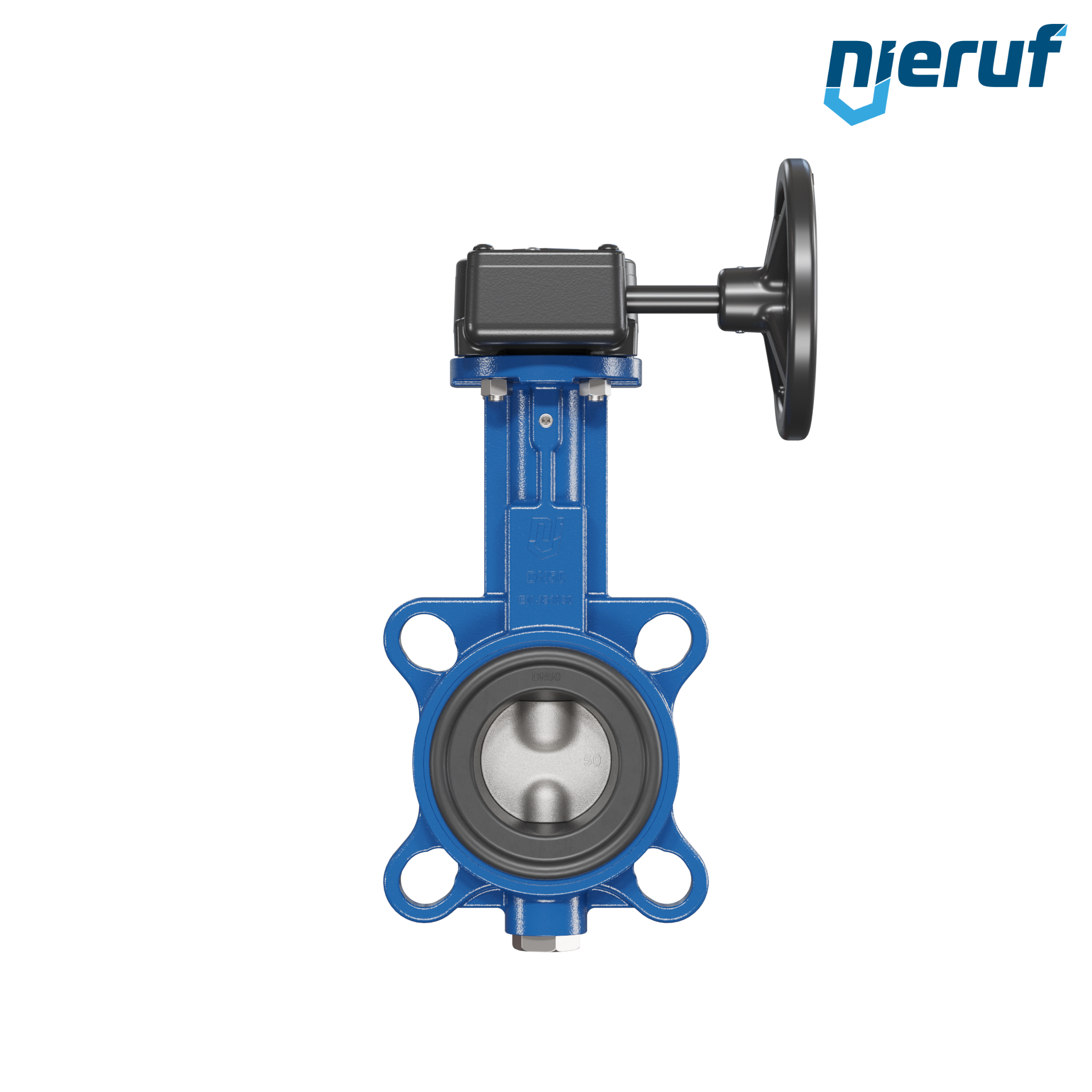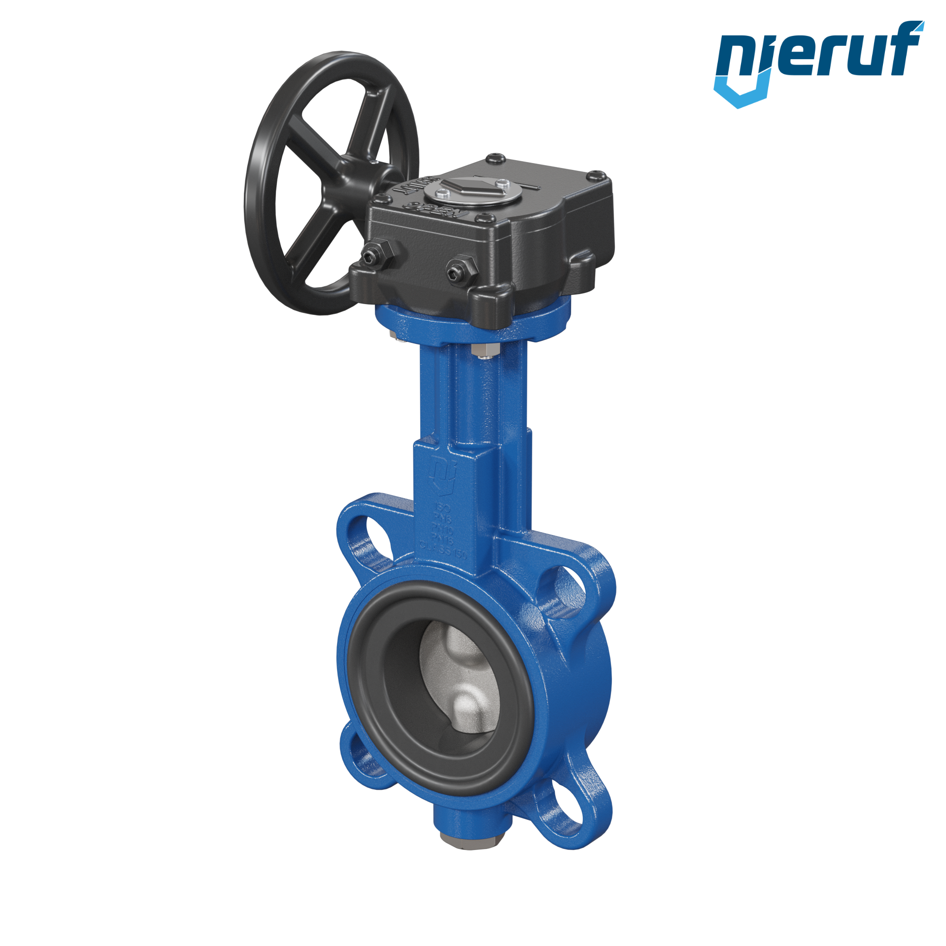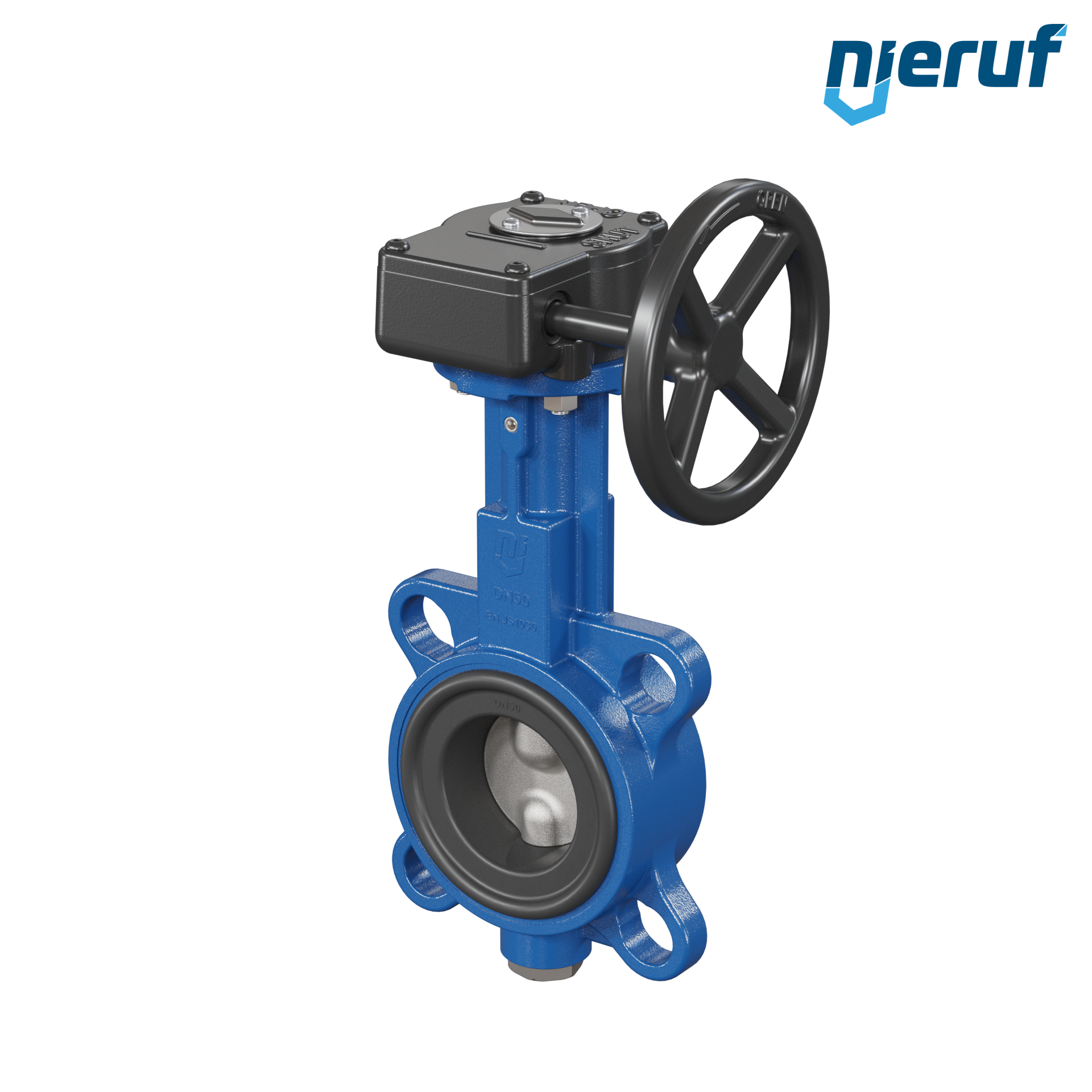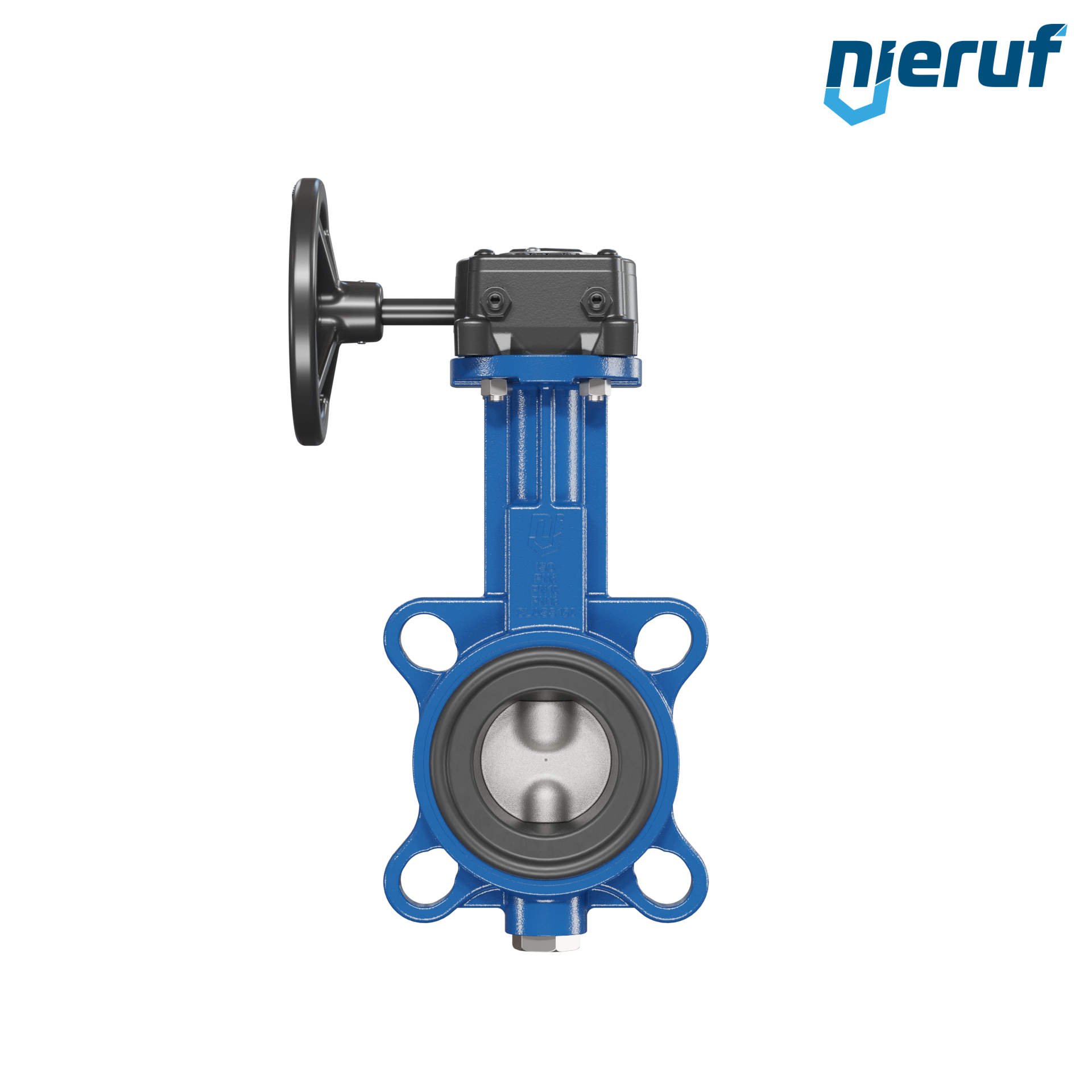 Absperrklappe DN 50 PN6-PN10-PN16 & ANSI150 mit Zentrieraugen aus Sphäroguss mit Schneckenradgetriebe NBR-70-schwarz DVGW Gas