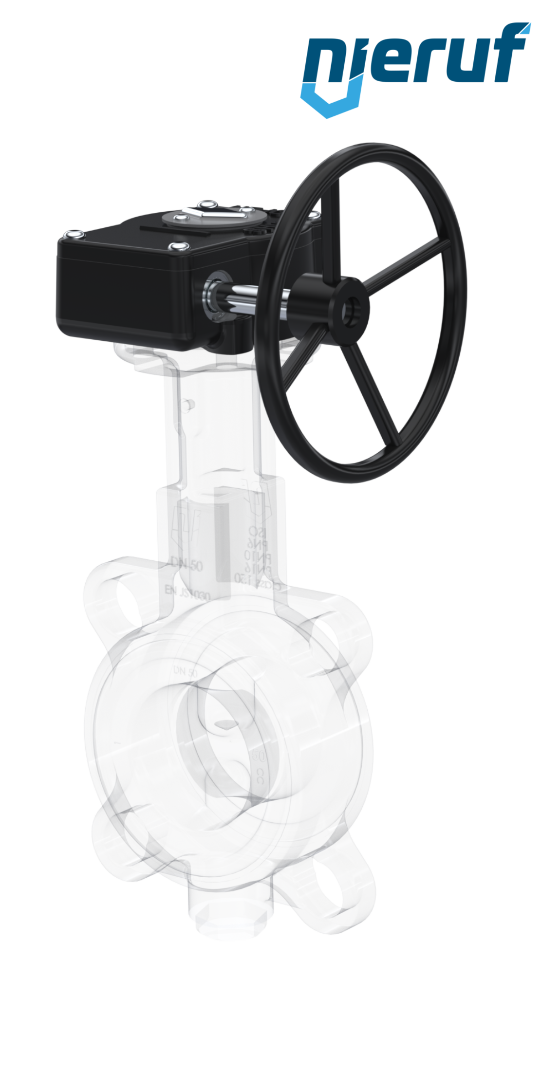 Absperrklappe DN 65 PN6-PN10-PN16 & ANSI150 mit Zentrieraugen aus Sphäroguss mit Schneckenradgetriebe EPDM DVGW Trinkwasser, WRAS, ACS, W270