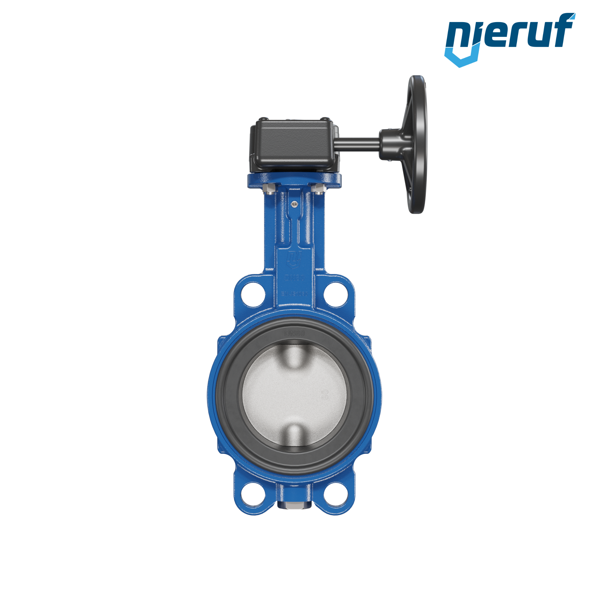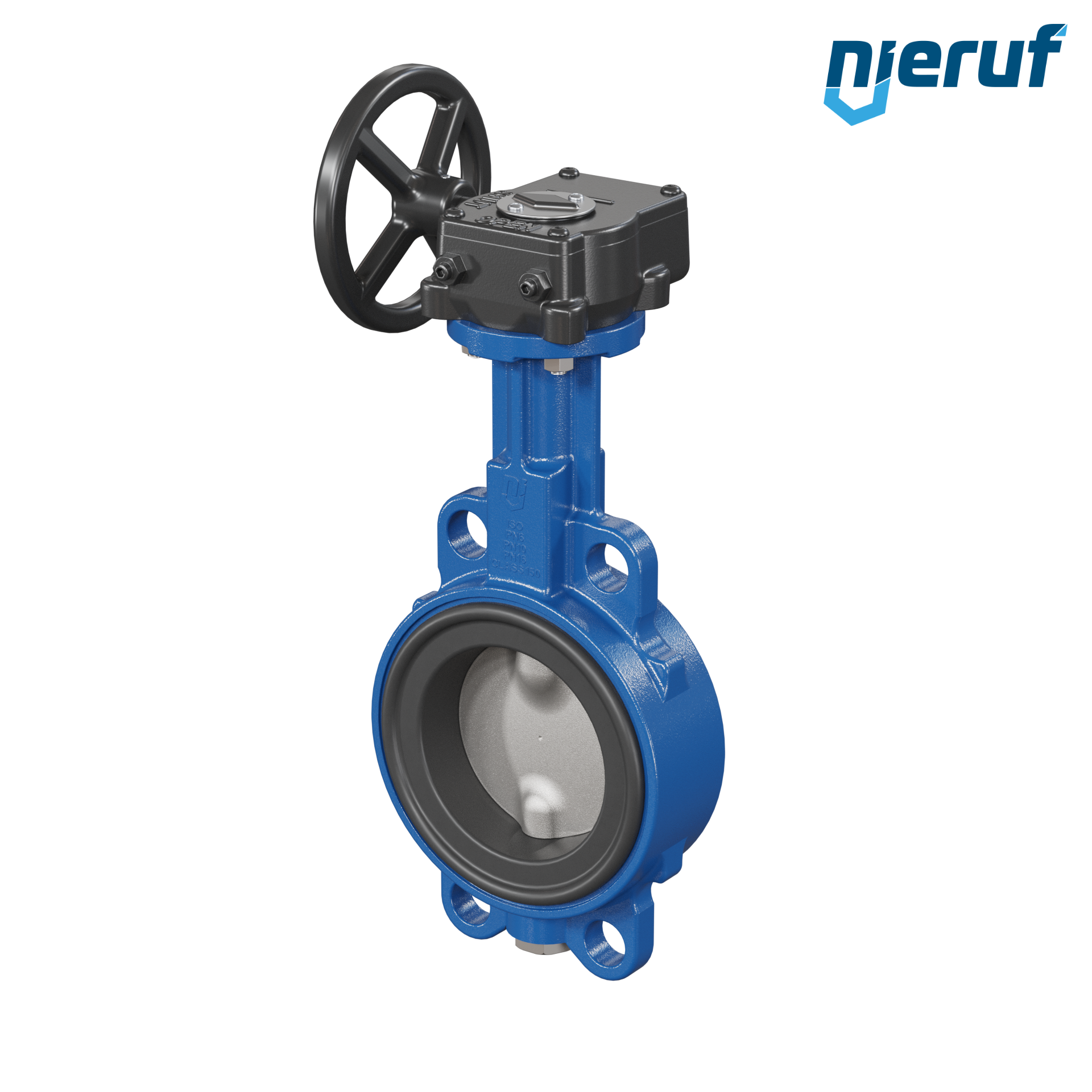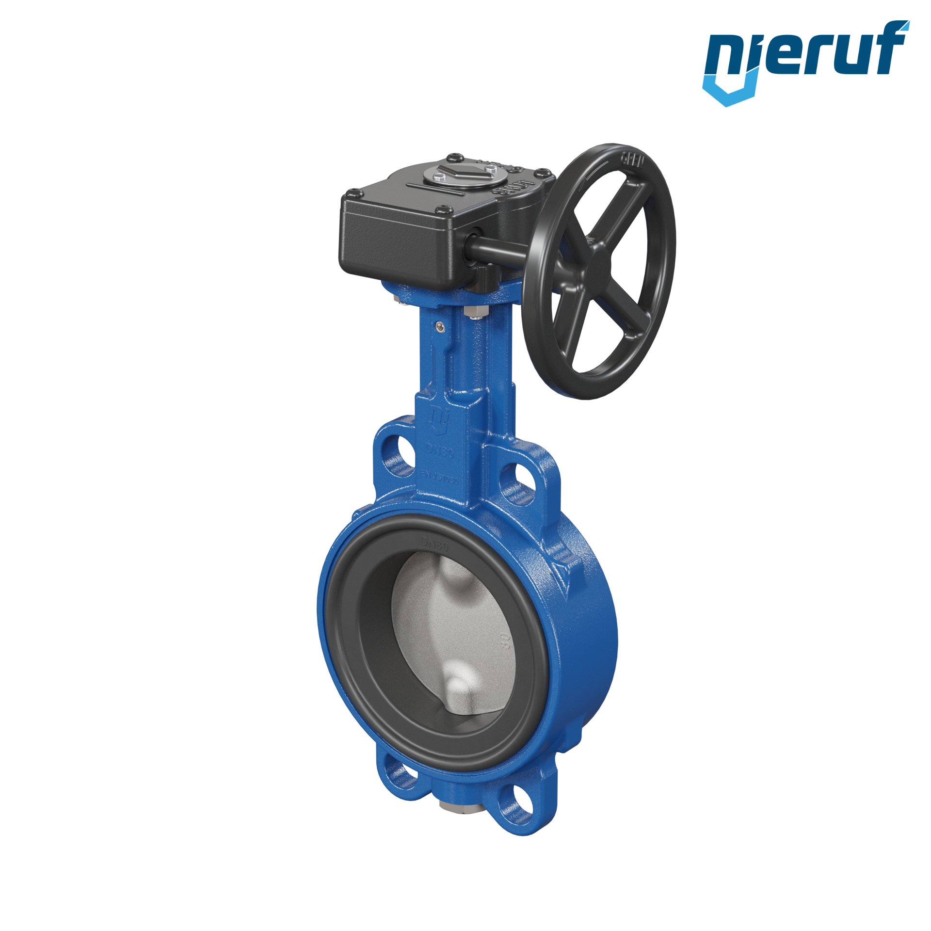 Absperrklappe DN 80 PN6-PN10-PN16 & ANSI150 mit Zentrieraugen aus Sphäroguss mit Schneckenradgetriebe NBR-70-schwarz DVGW Gas