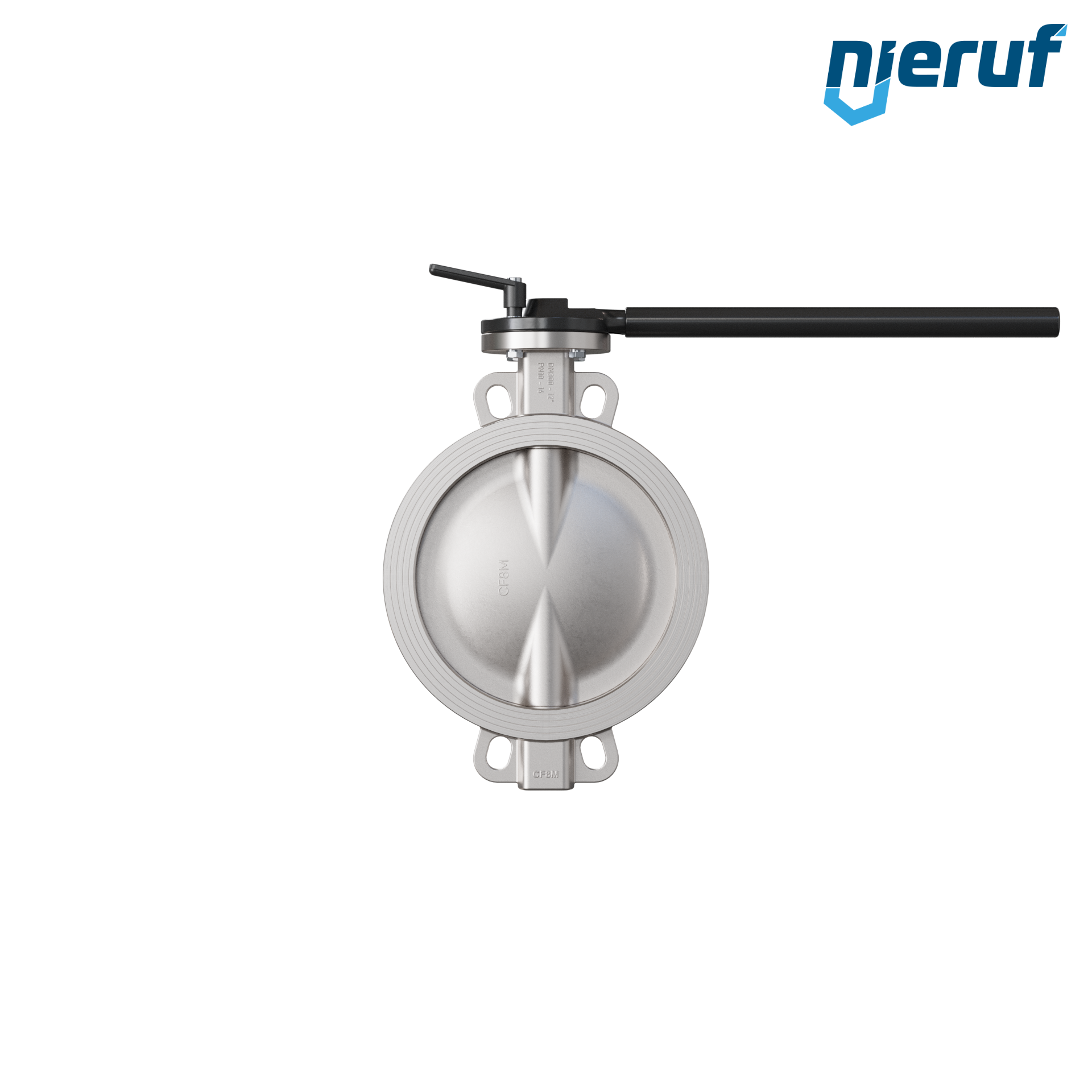 Edelstahl-Absperrklappe DN300 PN16 mit Zentrieraugen Gehäuse aus Edelstahl 1.4408 Klappenscheibe aus Edelstahl 1.4408 mit Handhebel und Dichtung aus metall