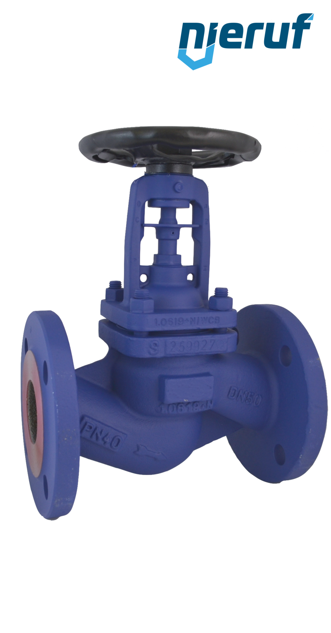 Faltenbalg-Absperrventil DN 200 in Durchgangsform mit Faltenbalg Material Sphäroguss EN-JS1049 für flüssige und gasförmige Medien Zulassung DVGW-Gas