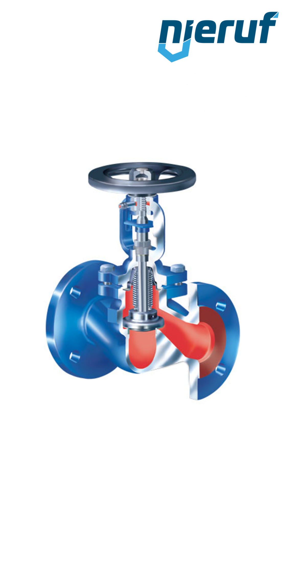 Flansch-Absperrventil DN 32 in Durchgangsform mit Faltenbalg Flansch nach DIN EN 1092 Material Grauguss EN-JL1040 mit Regulierkegel