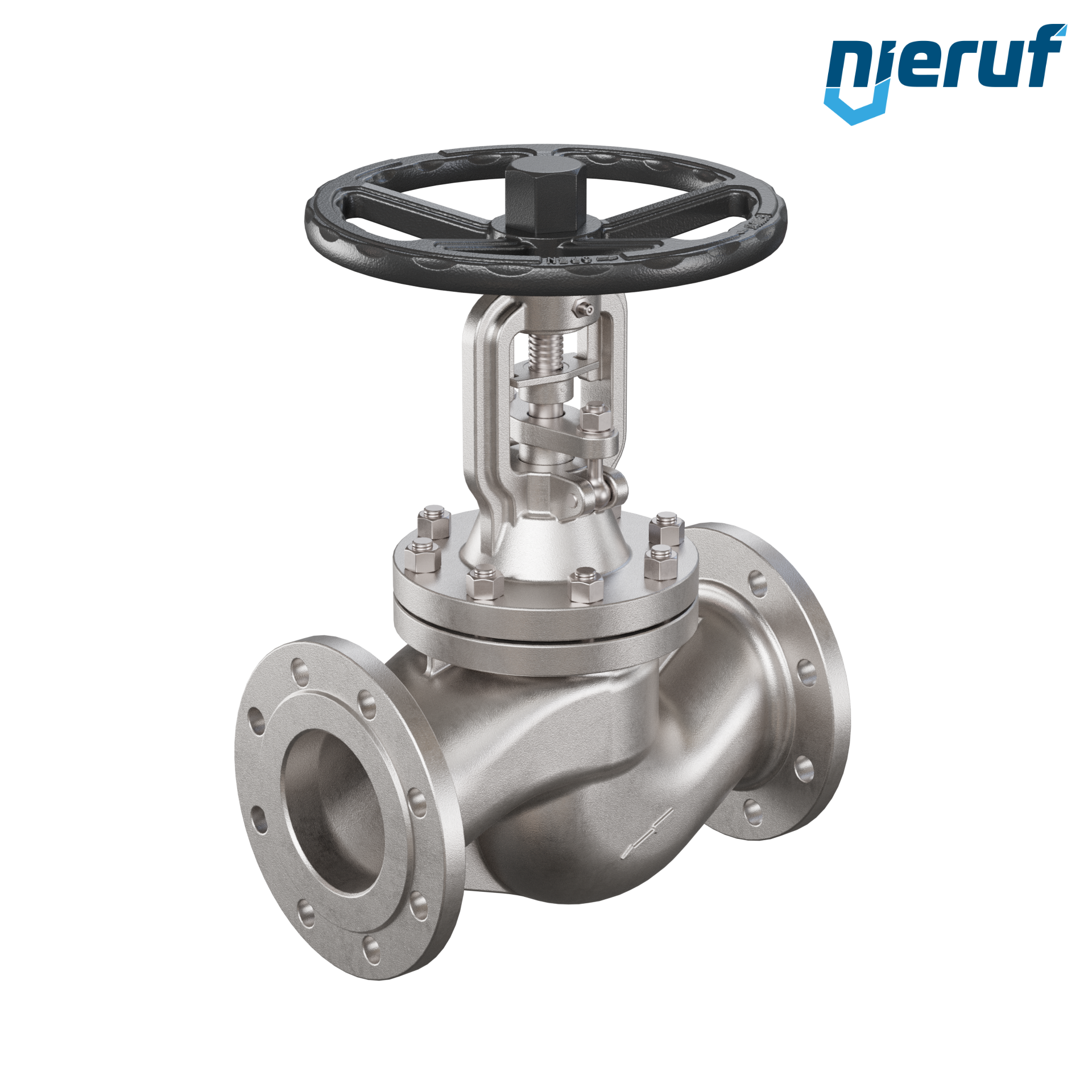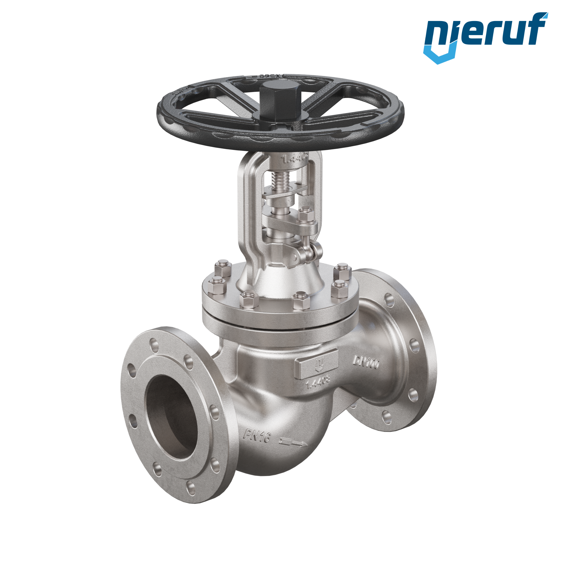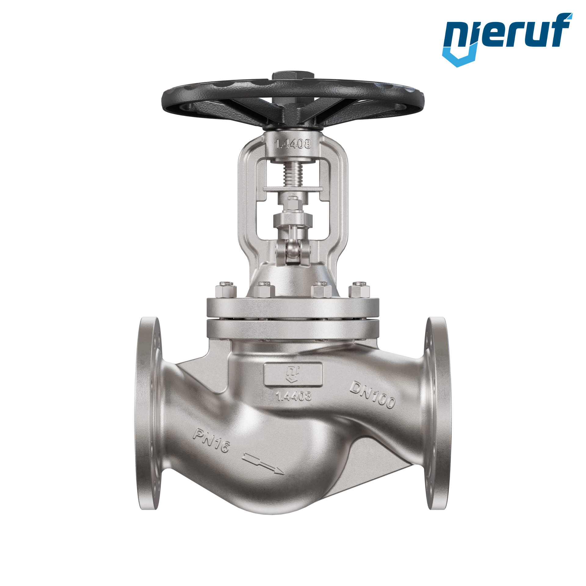 Absperrventil AV06 DN125 PN16 in Durchgangsform mit Faltenbalg Flansch nach DIN EN 1092 Material Edelstahl 1.4408