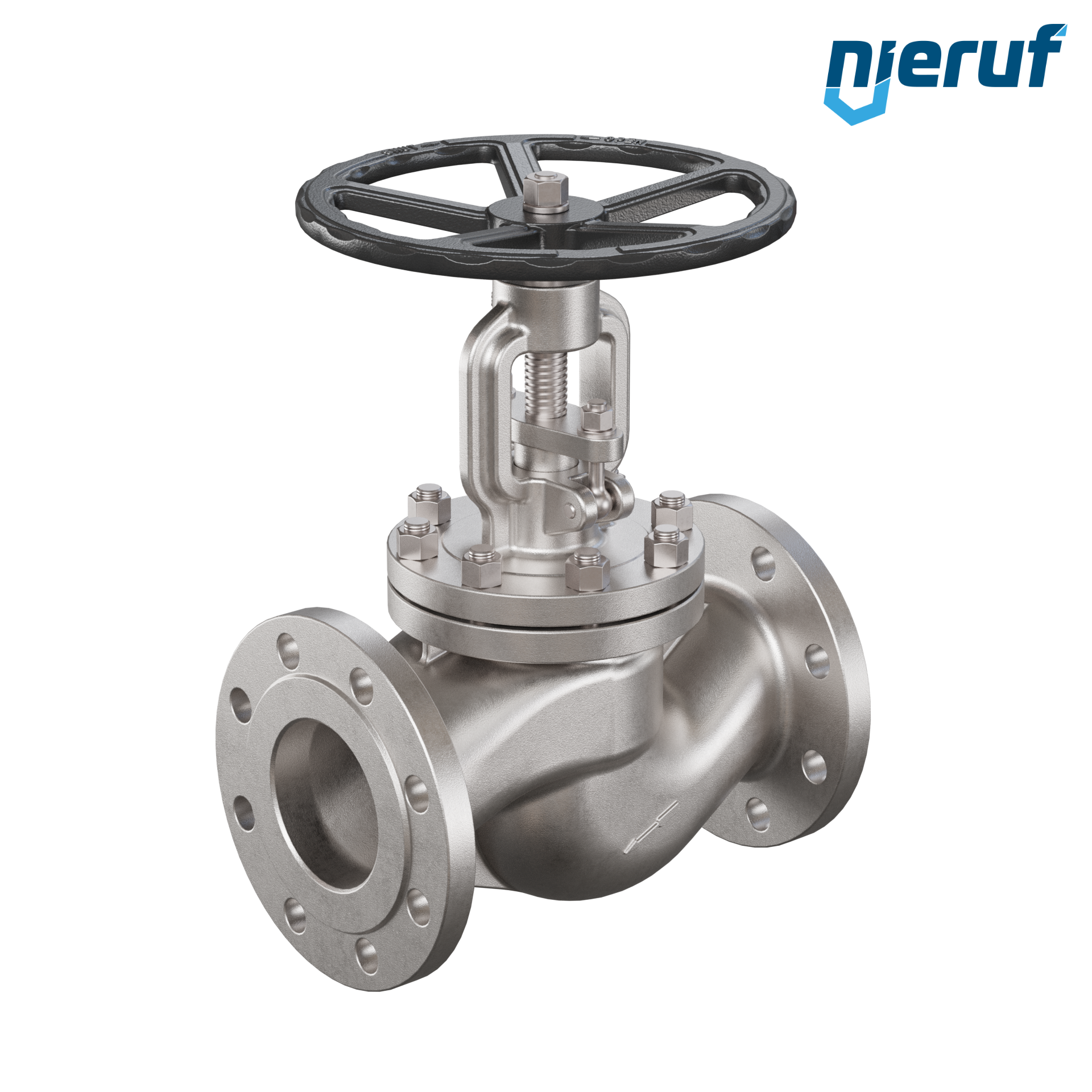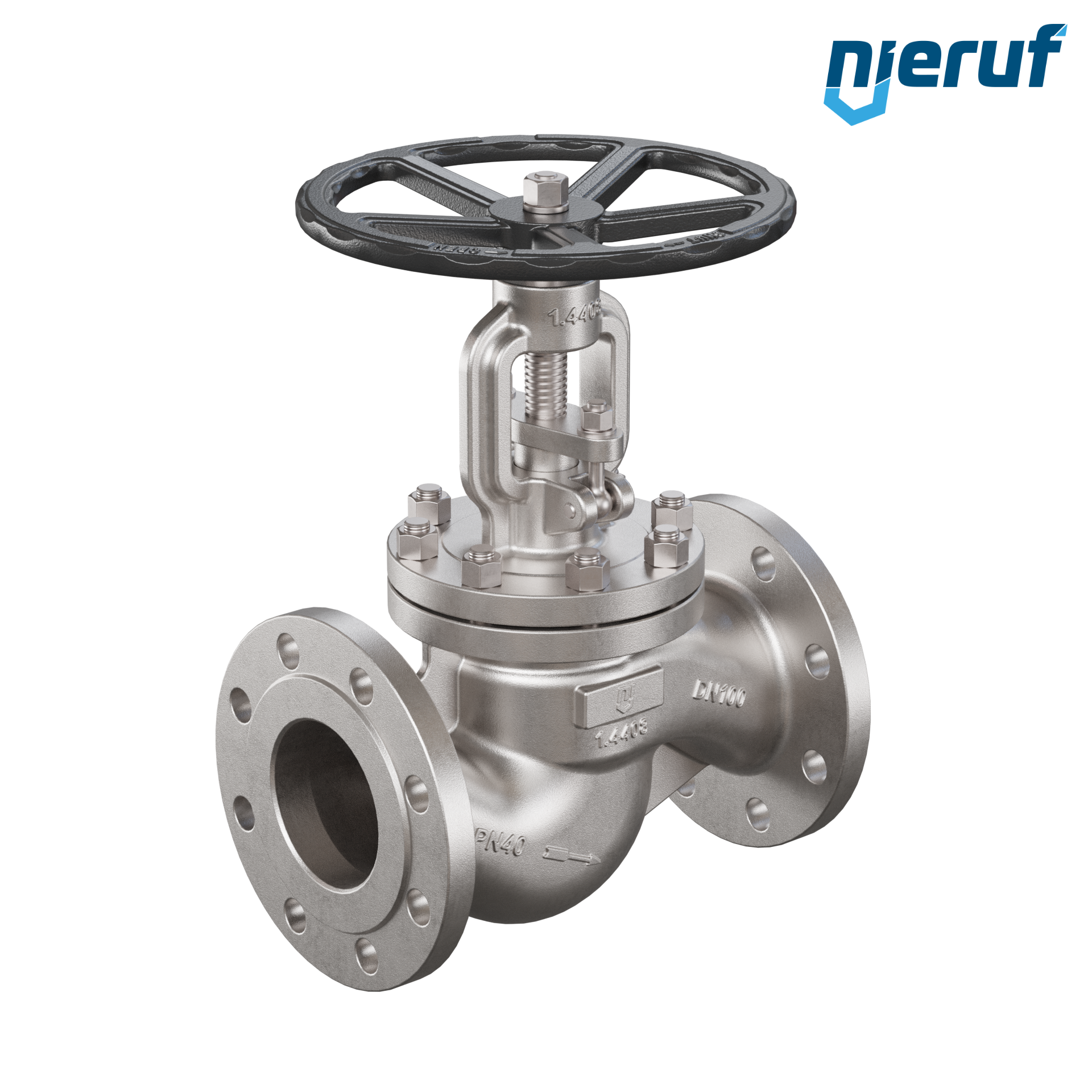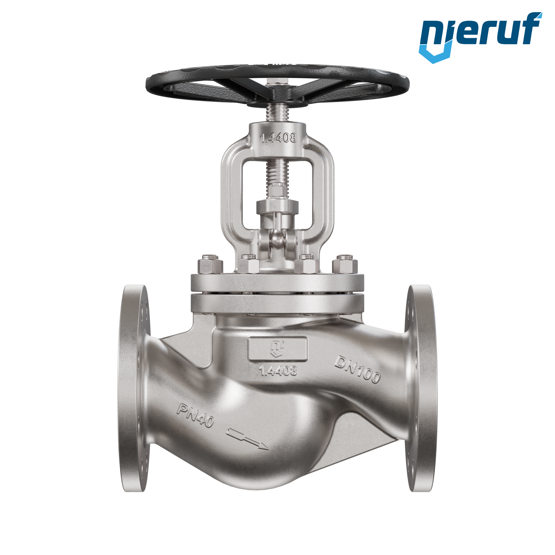 Absperrventil AV08 DN15 PN40 in Durchgangsform Flansch nach DIN EN 1092 Material Edelstahl 1.4408