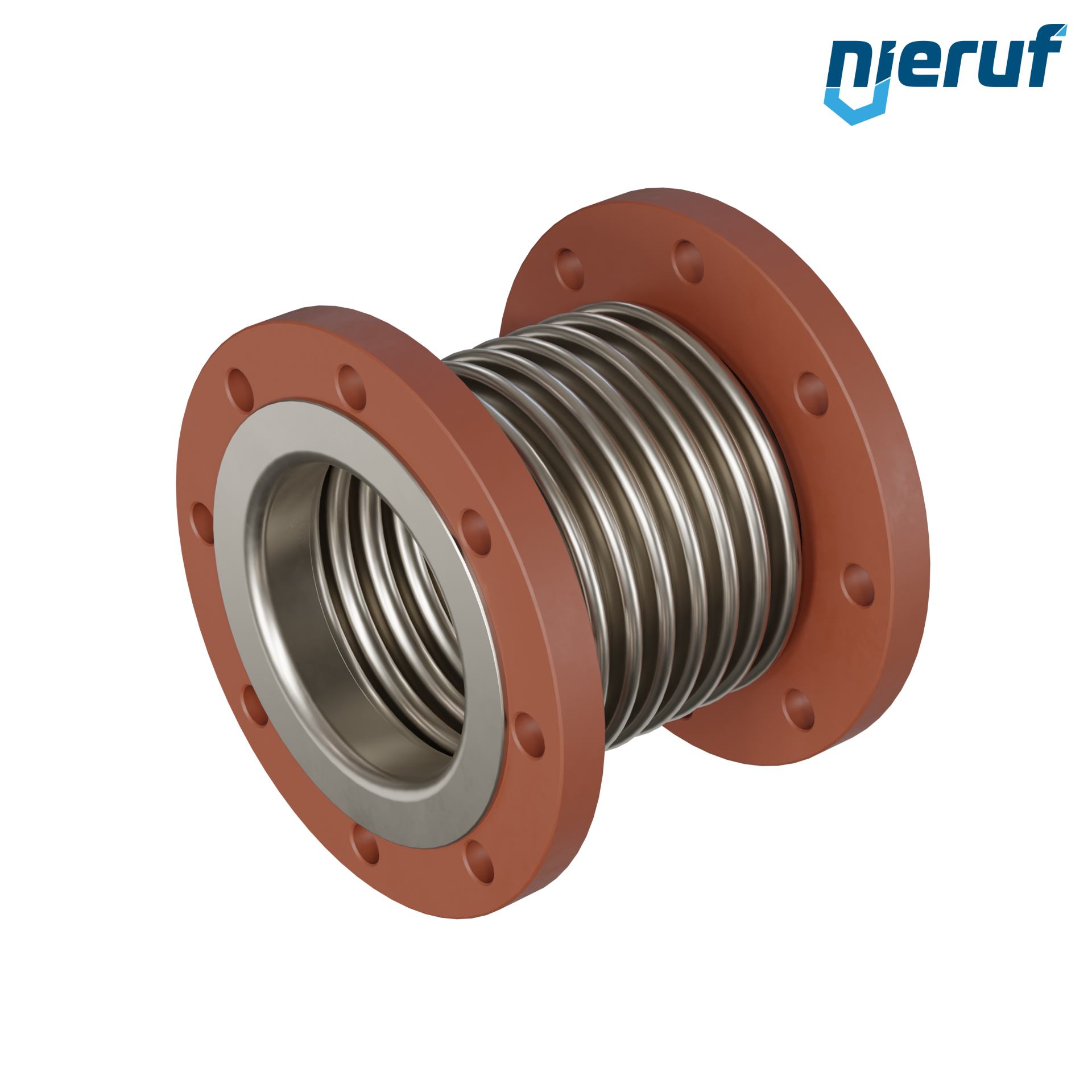Dieser hochwertige Axialkompensator mit Edelstahlfaltenbalg und Bördelflanschen aus Stahl ist für den Einsatz bei hohen Temperaturen und rauhen Bedingungen geeignet. Der Typ kann auch in anderen Nennweiten, Druckstufen und Baulängen, so wie mit Sonderbeschichtung angeboten werden und um ein Leit- oder Schutzrohr erweitert werden.