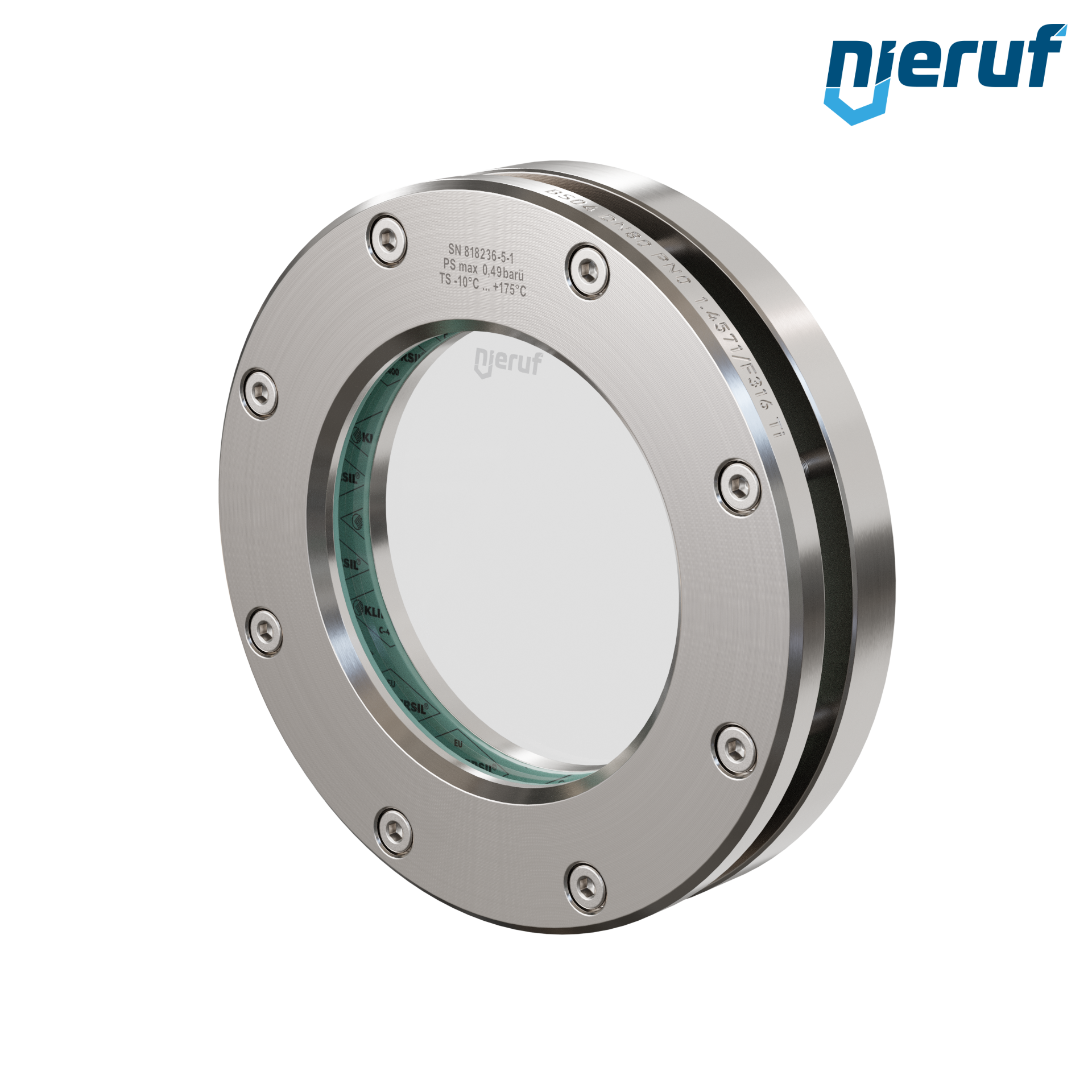 Behälter-Schauglas DN80 - 3" Zoll BS04 Edelstahl 1.4571 Borosilikatglas 0,0 bar