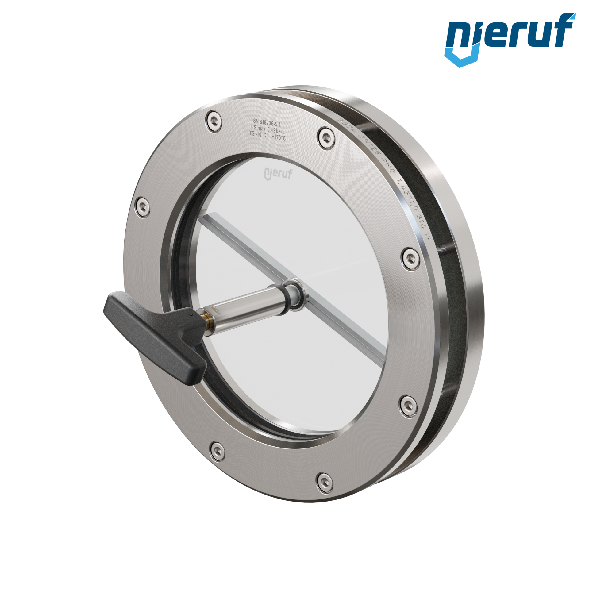 Behälter-Schauglas mit PTFE-Scheibenwischer DN125 BS04 Edelstahl 1.4571 Graphit Borosilikatglas 0,0 bar