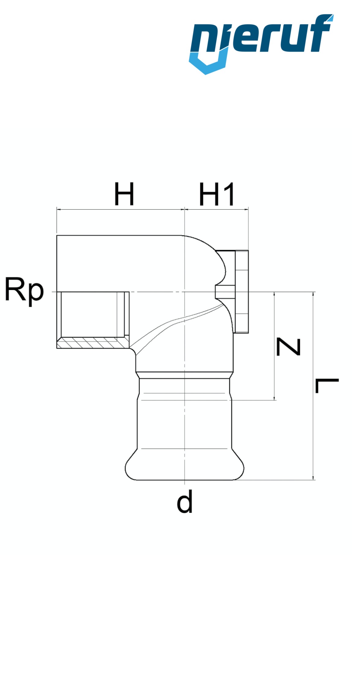 Deckenwinkel 90° PF01-09 mit Pressanschluss I DN20 - 22,0 mm, Innengewinde 3/4" Zoll aus Edelstahl für flüssige & gasförmige Medien