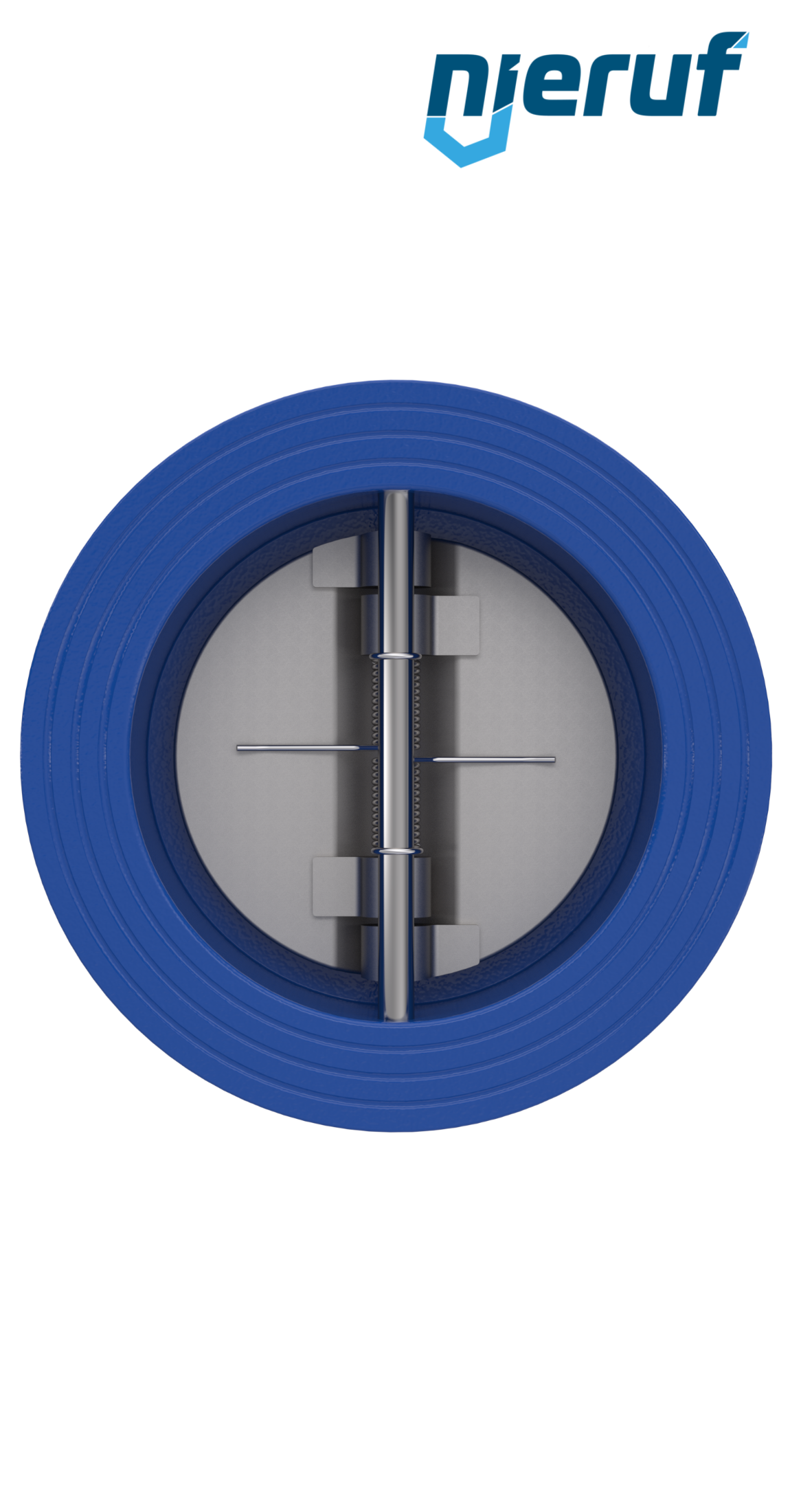 Doppelflügel-Rückschlagklappe DN100 Dichtung NBR PN 10/16 DIN EN 1092-1 Form B, Gehäuse aus GGG40 epoxid-beschichtet blau 180µm
