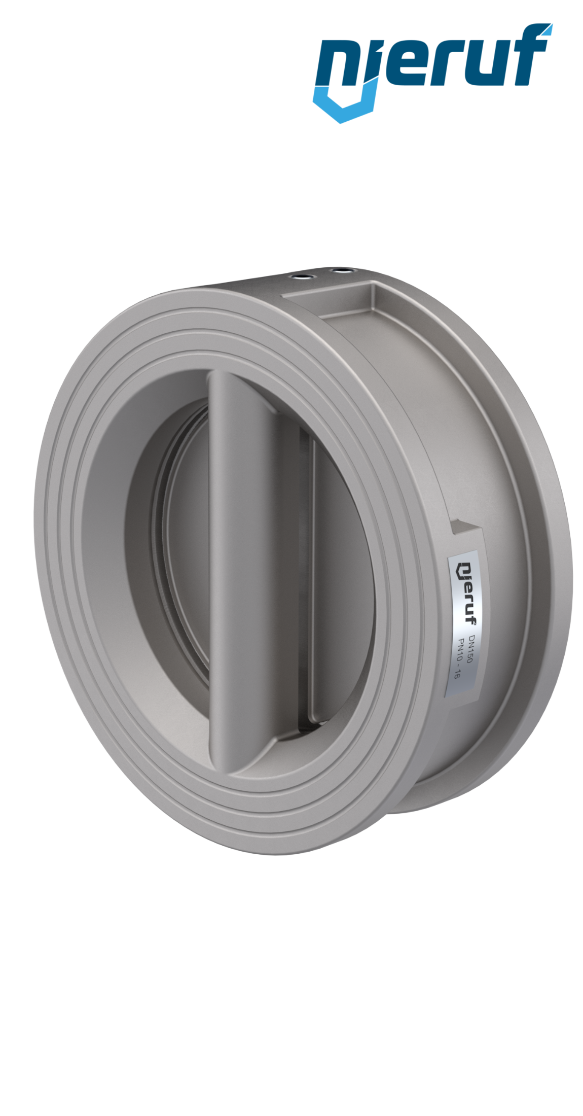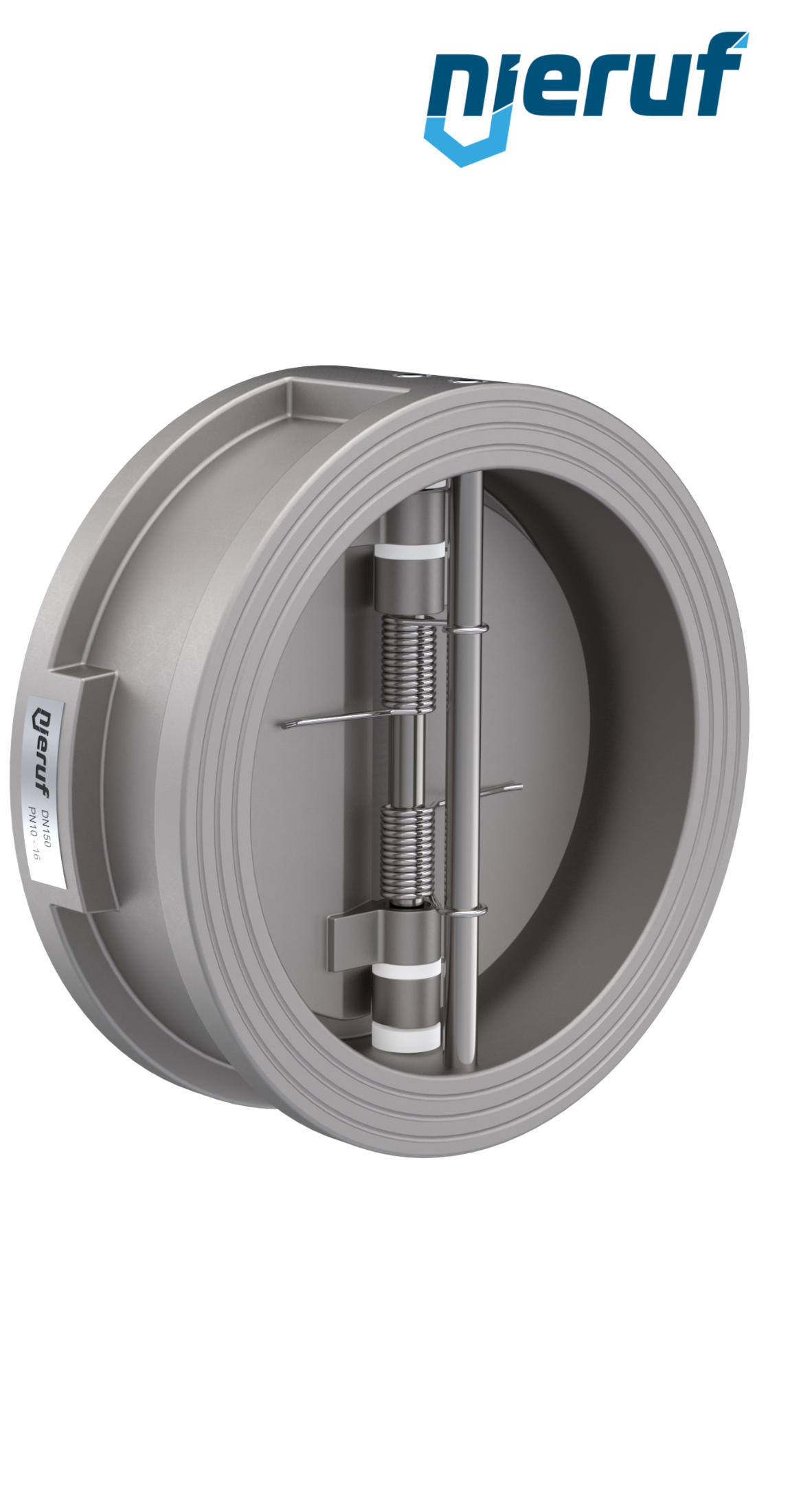 Doppelflügel-Rückschlagklappe DN150 Dichtung FKM (Viton) PN 10/16 DIN EN 1092-1 Form B, Gehäuse aus Edelstahl 1.4408, Flügel aus Edelstahl 1.4408