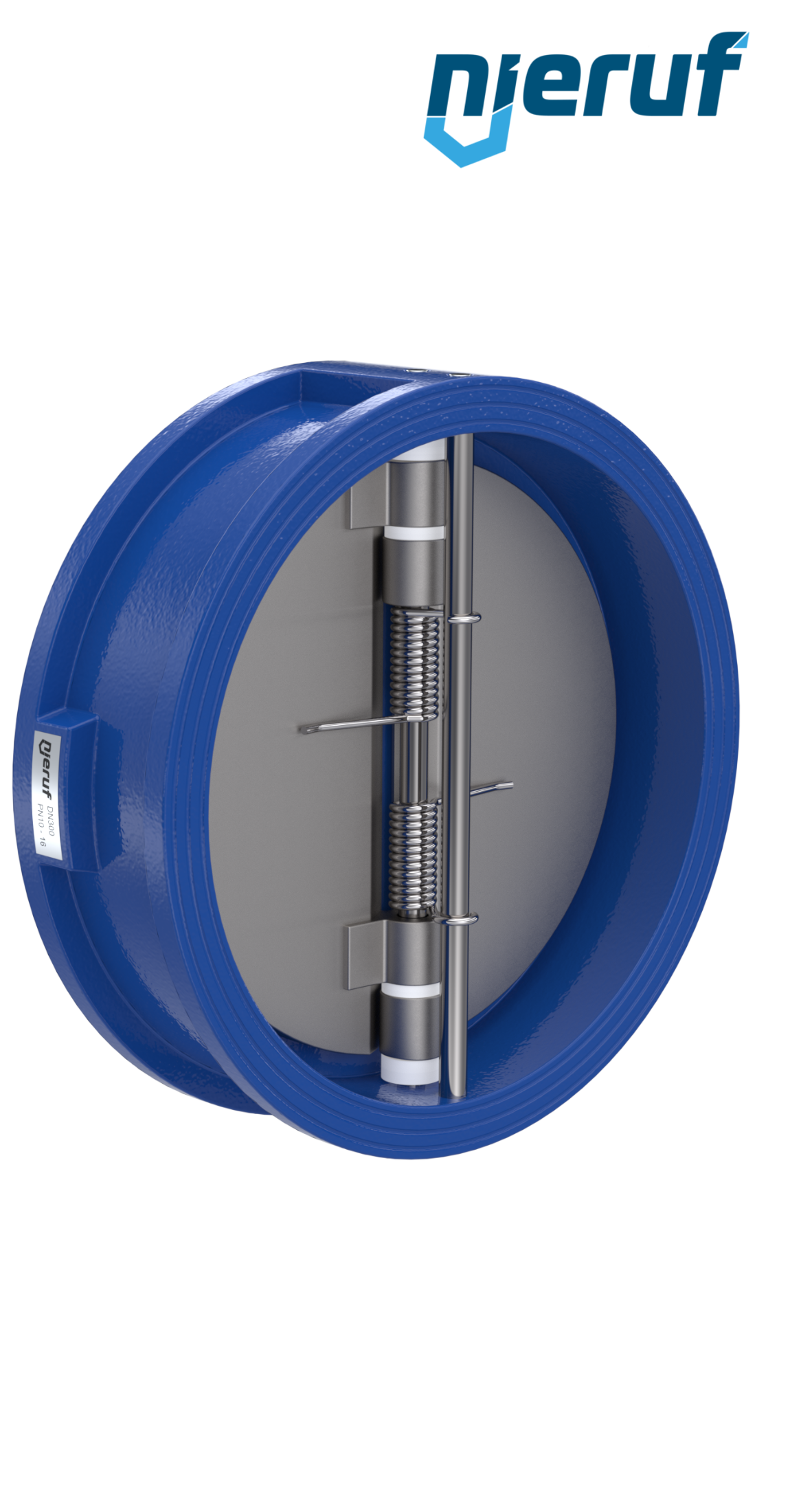 Doppelflügel-Rückschlagklappe DN300 Dichtung FKM (Viton) PN 10 DIN EN 1092-1 Form B, Gehäuse aus GGG40 epoxid-beschichtet blau 180µm