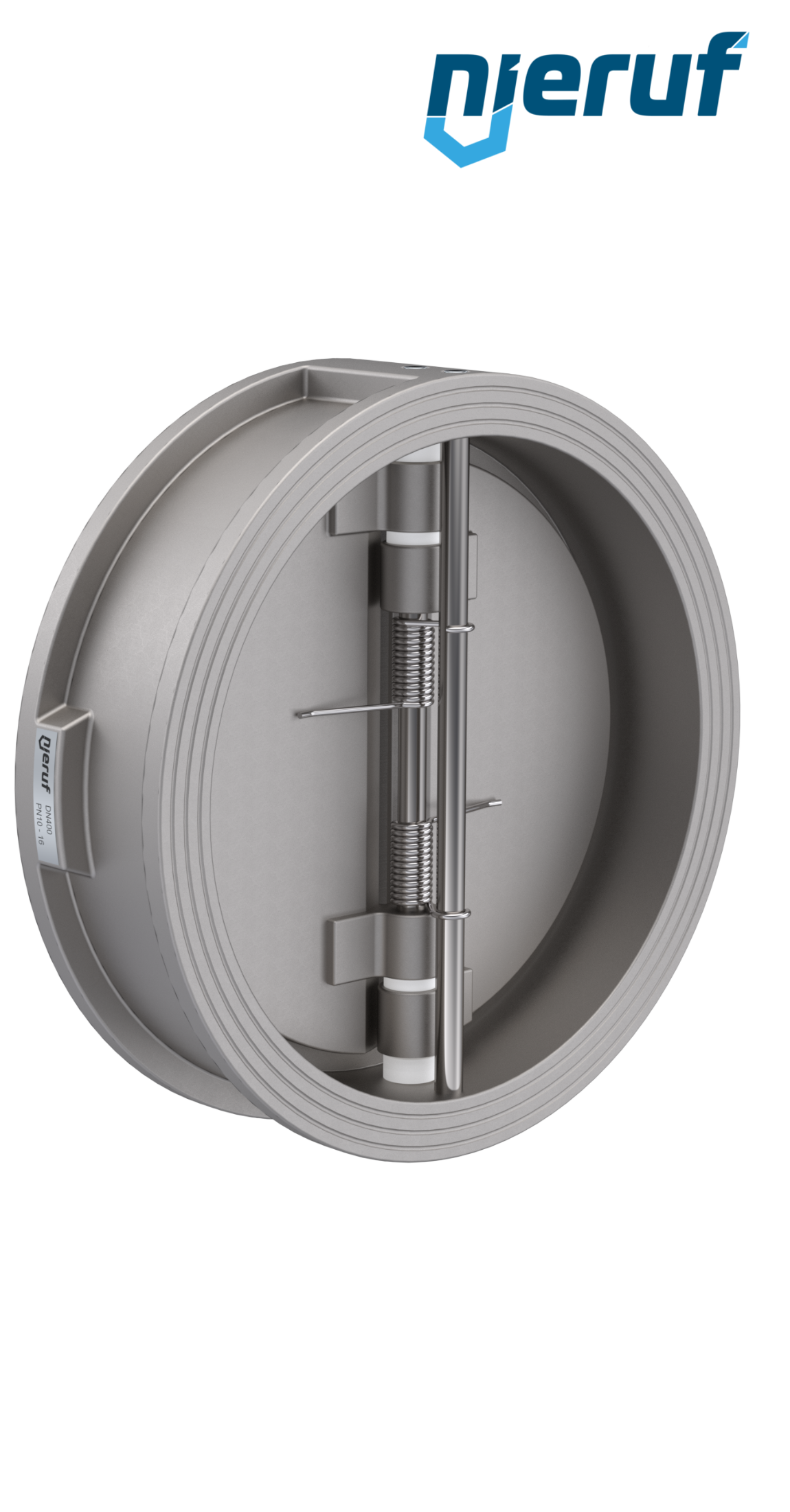 Doppelflügel-Rückschlagklappe DN400 Dichtung FKM (Viton) PN 10 DIN EN 1092-1 Form B, Gehäuse aus Edelstahl 1.4408, Flügel aus Edelstahl 1.4408