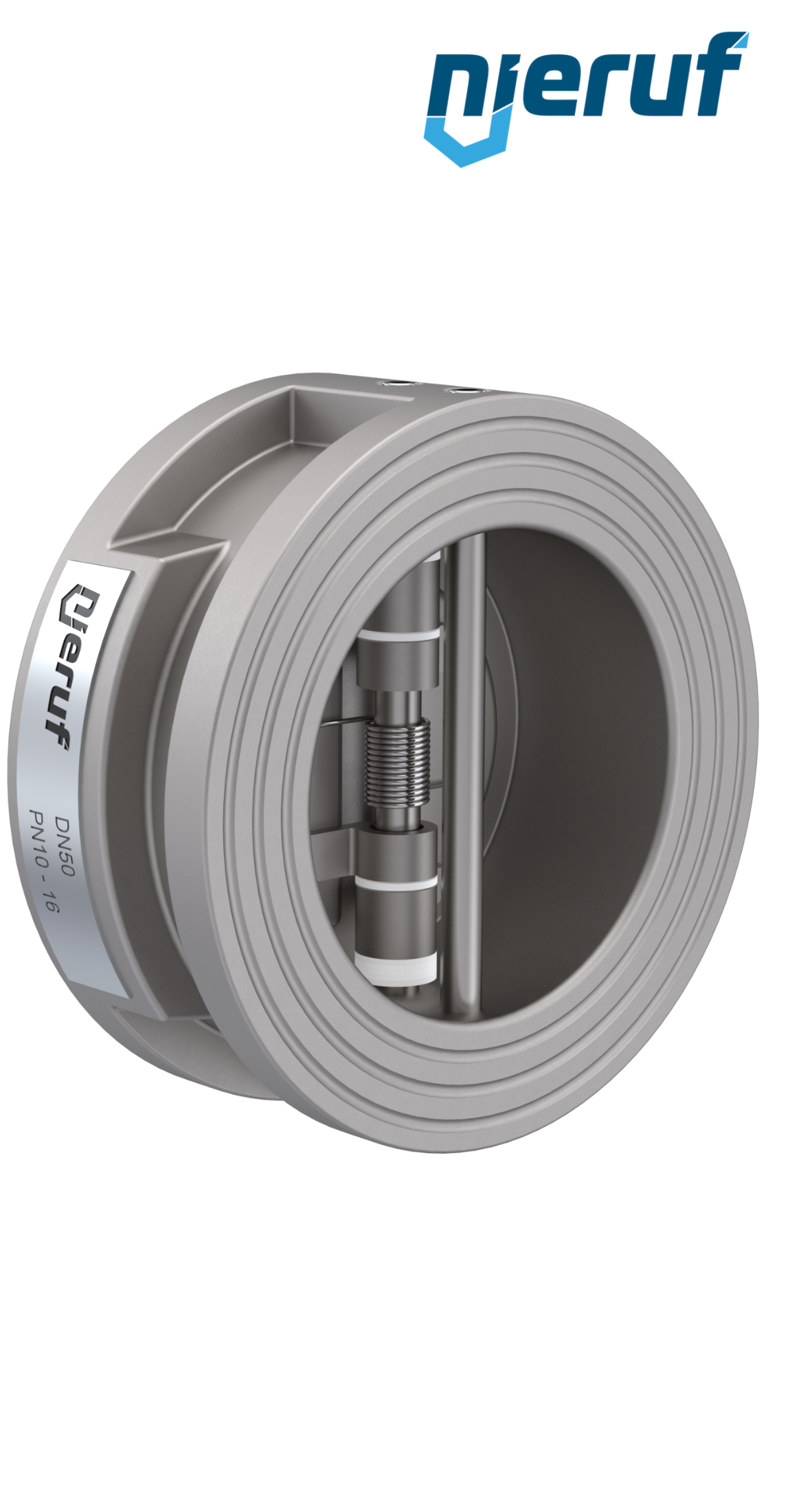Doppelflügel-Rückschlagklappe DN50 Dichtung EPDM PN 10/16/25/40 DIN EN 1092-1 Form B, Gehäuse aus Edelstahl 1.4408, Flügel aus Edelstahl 1.4408