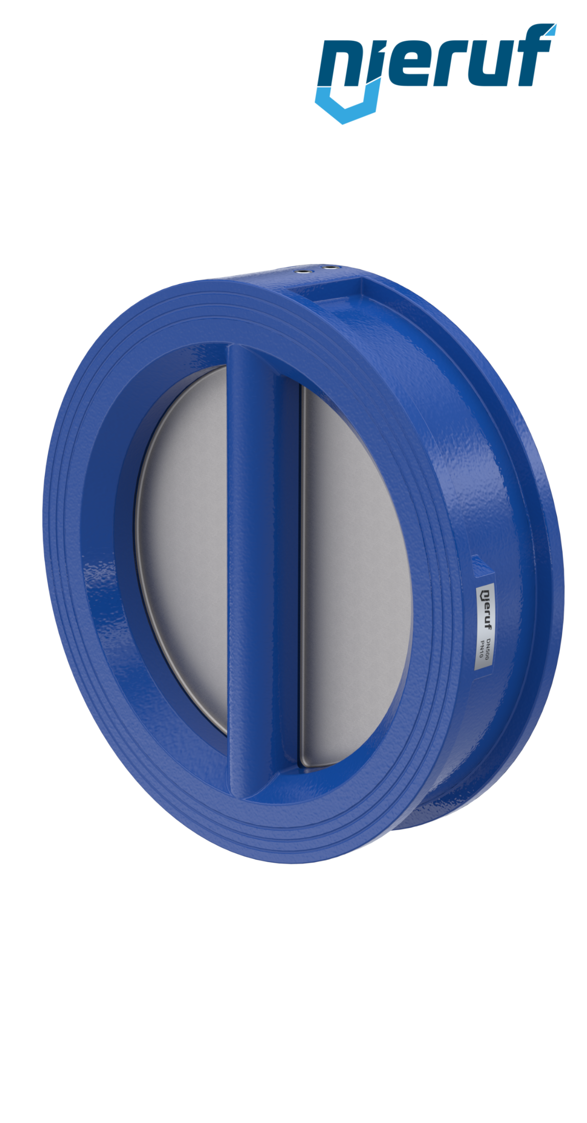 Doppelflügel-Rückschlagklappe DN500 Dichtung FKM (Viton) PN 10 DIN EN 1092-1 Form B, Gehäuse aus Grauguss mit Edelstahl-Flügel